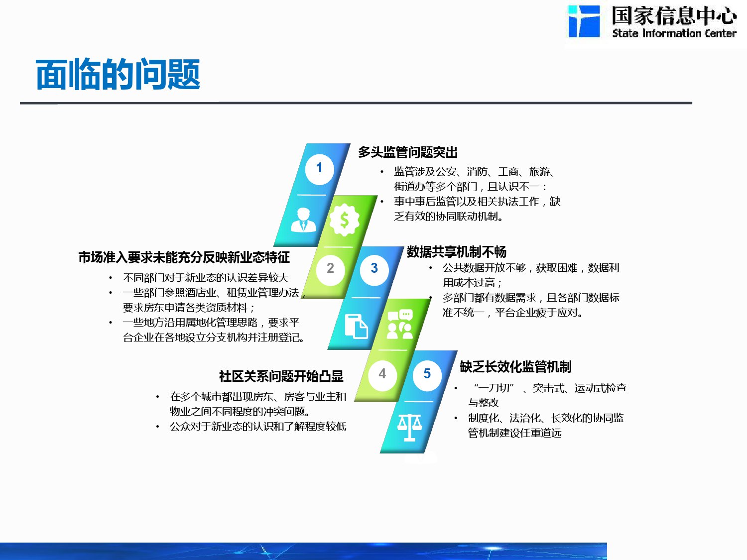 从共享住宿监管的实践来看,用老办法管理新业态的情况仍然存在,共享住宿监管尚未建立长效化机制,仍然面临多头监管、市场准入要求未能充分反映新业态特征、数据共享机制不畅等问题。