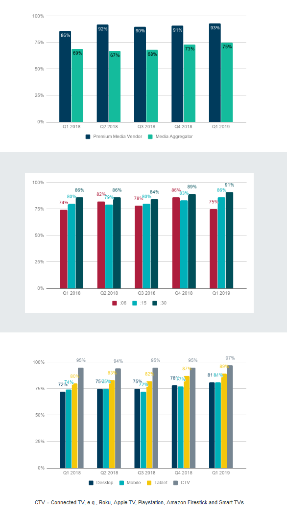 在第一季度,Extreme Reach提供的视频展现量中有82%是在高端发布商网站上运行的,这些发布商的视频完成率达到93%的创纪录高位,比2018年第一季度同比增长8%。