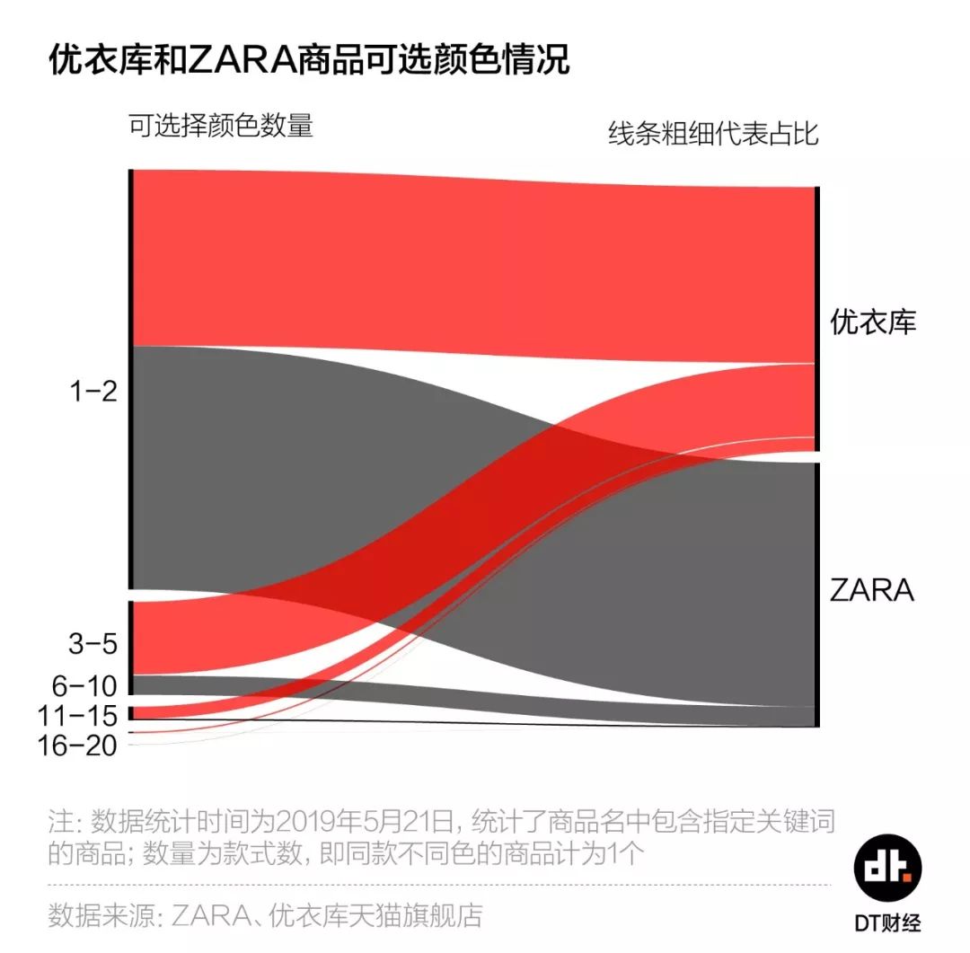 尤其是再把真·快时尚ZARA的数据拉出来对比——9成以上商品都仅提供1-2个颜色选项,基本上买了几件衣服,就是买了几种款式。