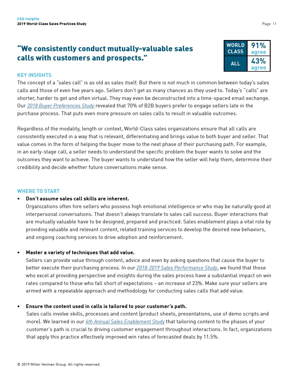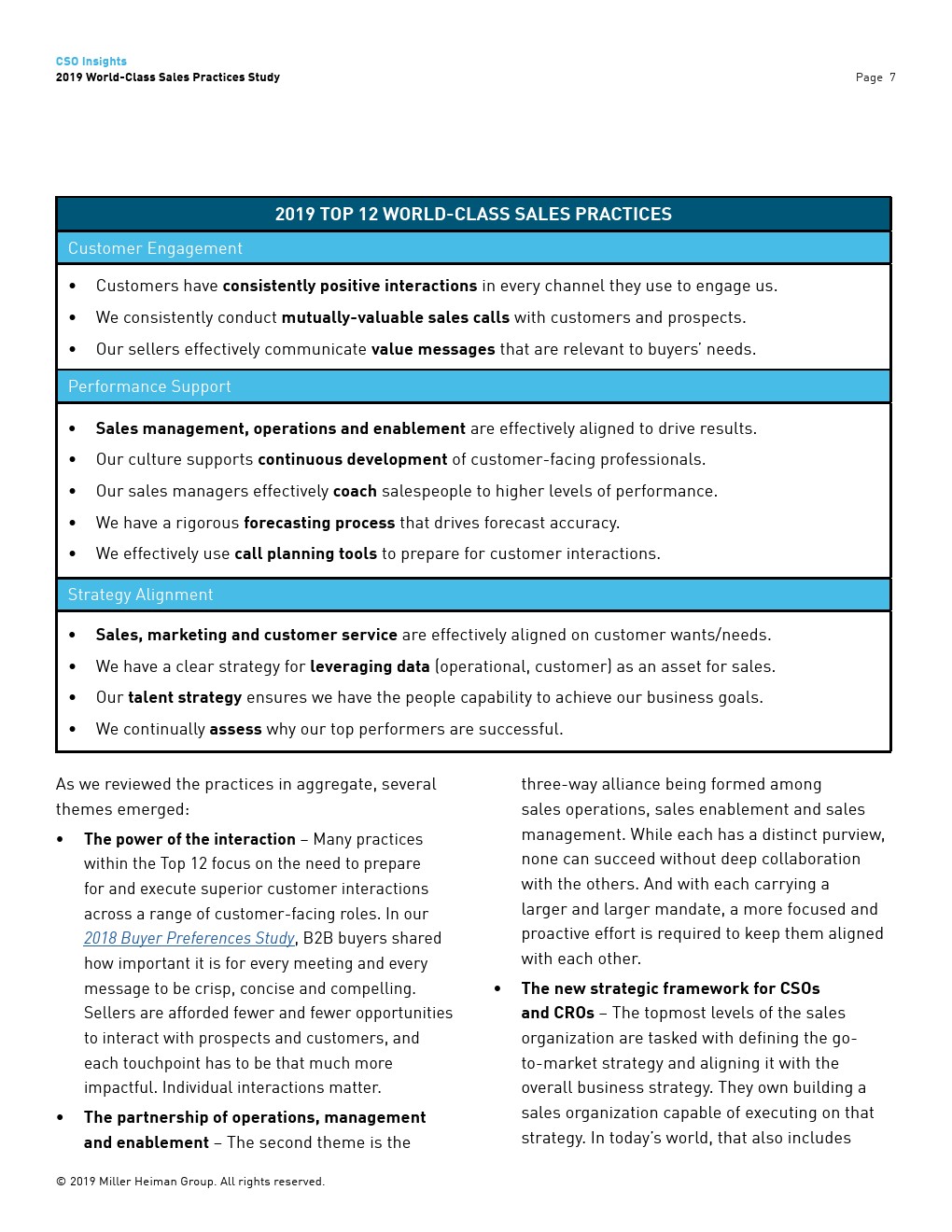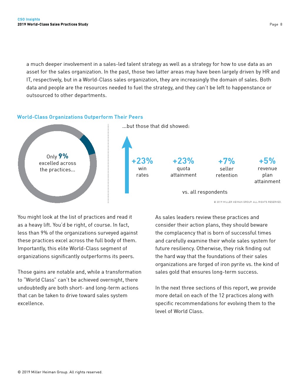 CSO Insights发布了新报告“2019年世界级销售实践调查”。