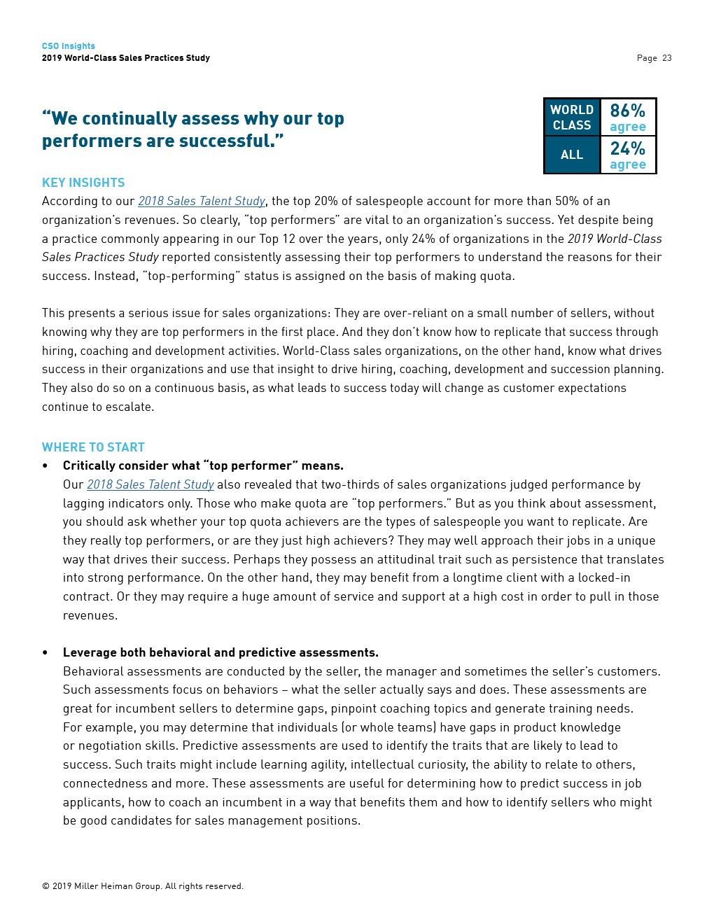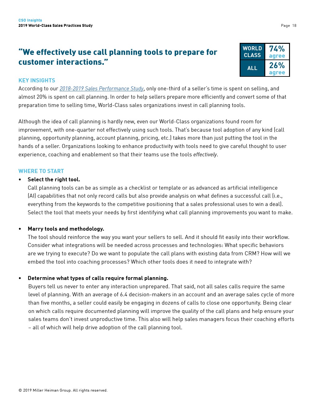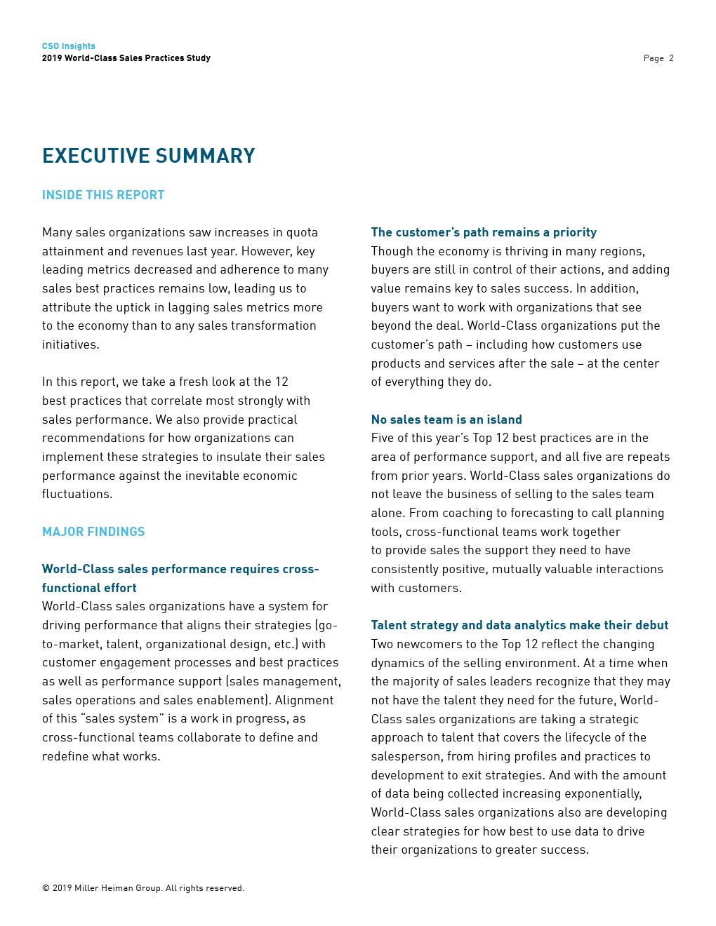 CSO Insights发布了新报告“2019年世界级销售实践调查”。