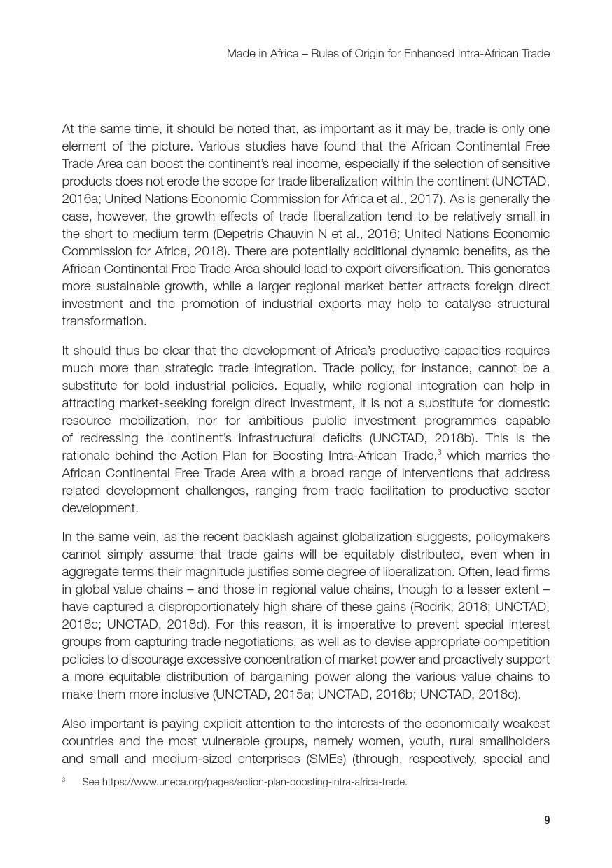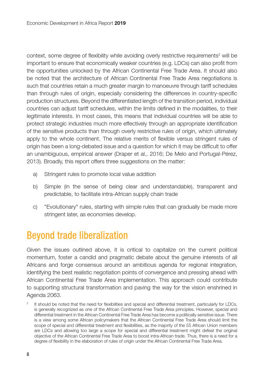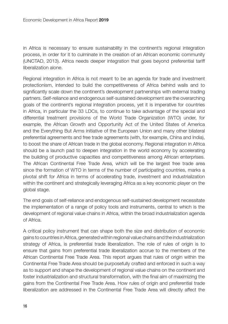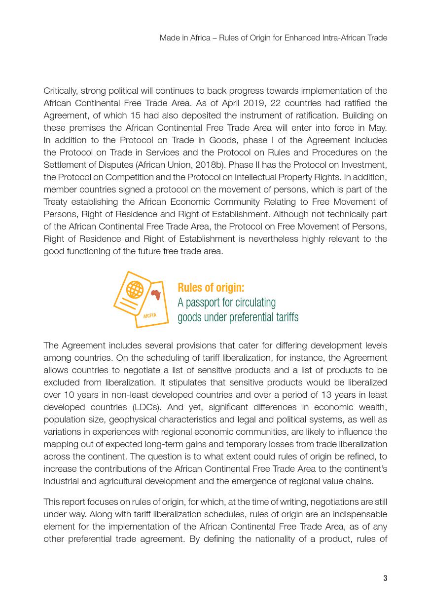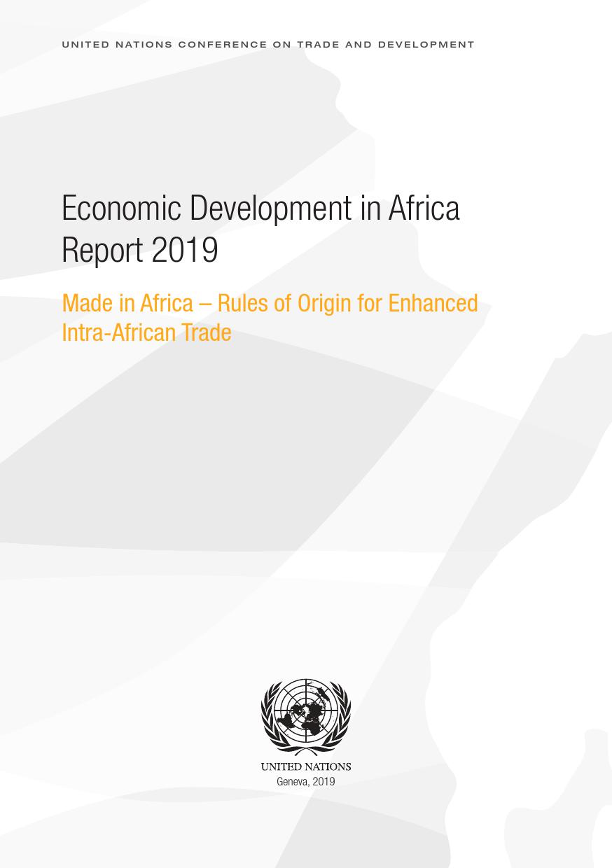 联合国:2019年非洲经济发展报告 联合国贸发会议在卡萨布兰卡发布《2019年非洲经济发展报告》,主题是:“非洲制造:原产地规则是非洲内部贸易的跳板”。报告指出,非洲大陆自贸区的实现,将有助于各成员国使用原产地规则促进非洲内部货物的自由流通和贸易的极大繁荣,进而带动制造业发展、工业化提升、就业增加和经济增长。同时报告指出,原产地规则管理难度较高,对生产企业、海关监管和非洲大陆自贸区相关法规制度的建设都将提出较大挑战。 PDF版本将分享到199IT交流群,支持我们发展可加入! 更多阅读:联合国:2019年世界投资报告联合国:2020年世界经济形势与展望报告联合国贸发会:2019年数字经济报告(194页)联合国:2020年世界经济形势与展望年中报告联合国环境规划署:2019年碳排放差距报告联合国:2024年世界社会报告联合国:2018年电子政务报告联合国:世界统计袖珍手册2022版联合国:2021年食物浪费指数报告联合国:中东和北非2030一代(110页)亚非银行:2018年非洲财富报告非洲的工作年龄人口到2100年将超过中国世界银行:2019年营商环境报告2019年全球经济展望:前景趋暗联合国:2019全球粮食危机报告