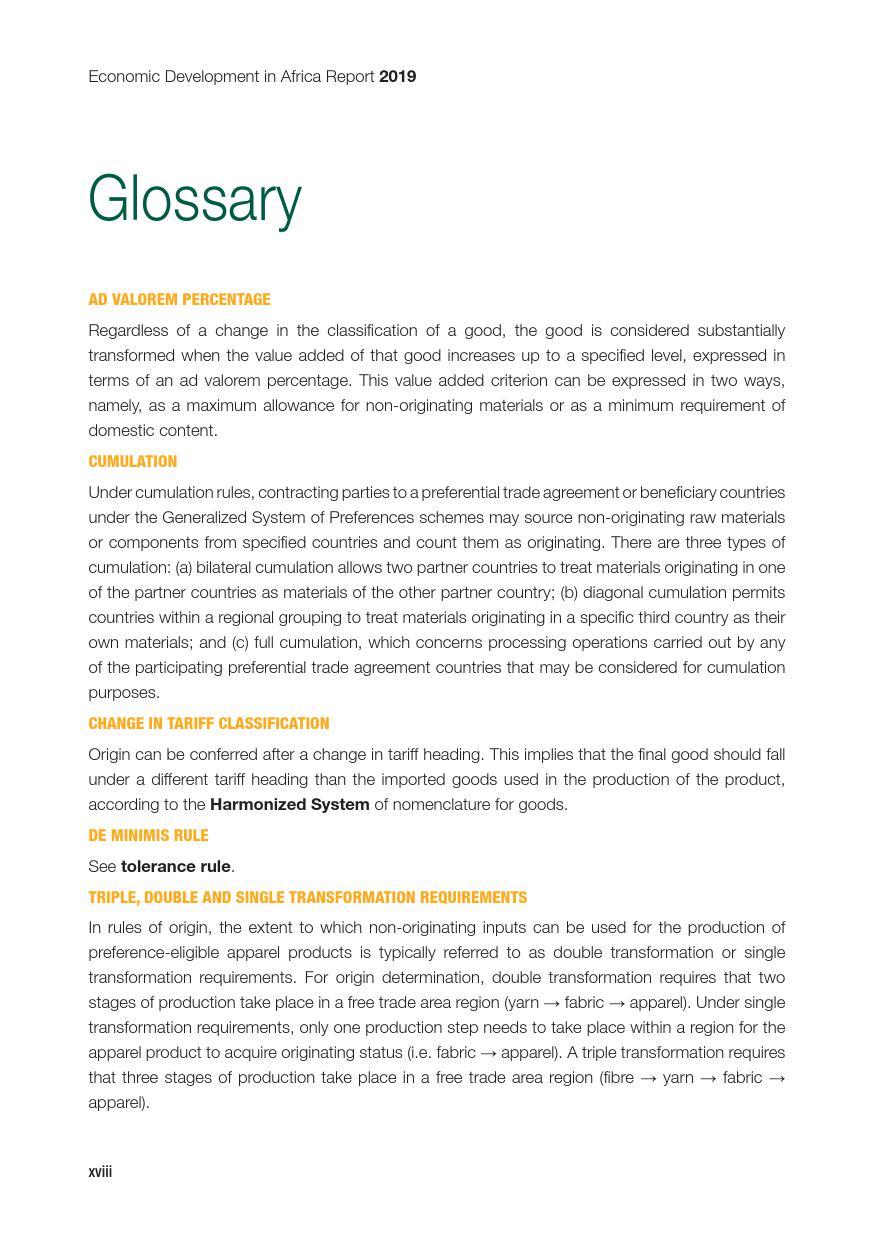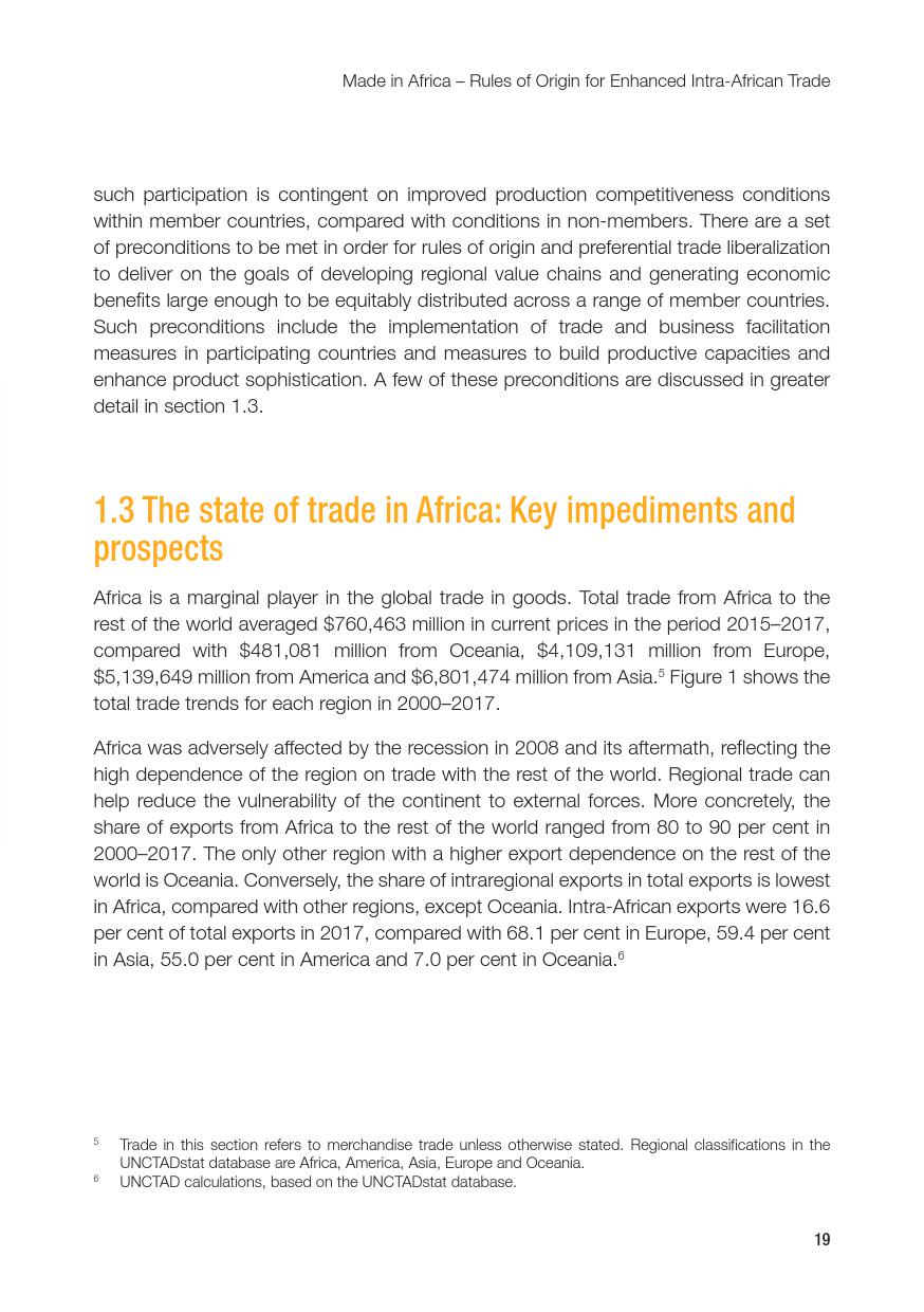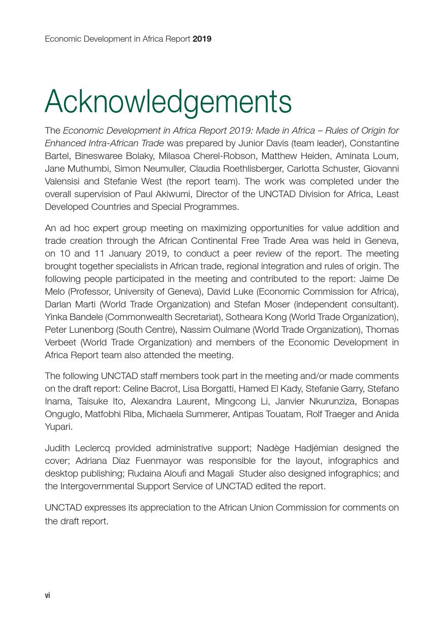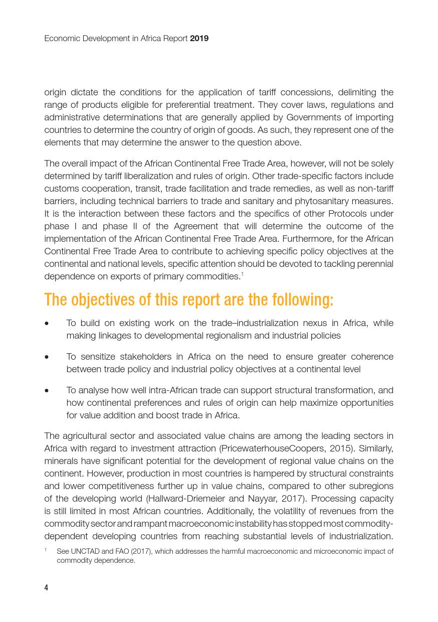联合国:2019年非洲经济发展报告 联合国贸发会议在卡萨布兰卡发布《2019年非洲经济发展报告》,主题是:“非洲制造:原产地规则是非洲内部贸易的跳板”。报告指出,非洲大陆自贸区的实现,将有助于各成员国使用原产地规则促进非洲内部货物的自由流通和贸易的极大繁荣,进而带动制造业发展、工业化提升、就业增加和经济增长。同时报告指出,原产地规则管理难度较高,对生产企业、海关监管和非洲大陆自贸区相关法规制度的建设都将提出较大挑战。 PDF版本将分享到199IT交流群,支持我们发展可加入! 更多阅读:联合国:2019年世界投资报告联合国:2020年世界经济形势与展望报告联合国贸发会:2019年数字经济报告(194页)联合国:2020年世界经济形势与展望年中报告联合国环境规划署:2019年碳排放差距报告联合国:2024年世界社会报告联合国:2018年电子政务报告联合国:世界统计袖珍手册2022版联合国:2021年食物浪费指数报告联合国:中东和北非2030一代(110页)亚非银行:2018年非洲财富报告非洲的工作年龄人口到2100年将超过中国世界银行:2019年营商环境报告2019年全球经济展望:前景趋暗联合国:2019全球粮食危机报告