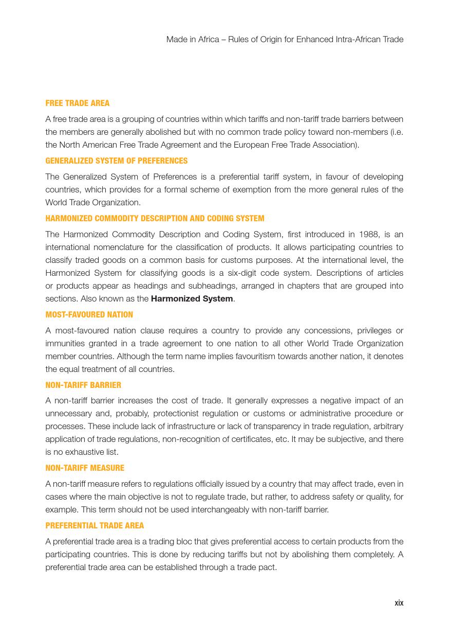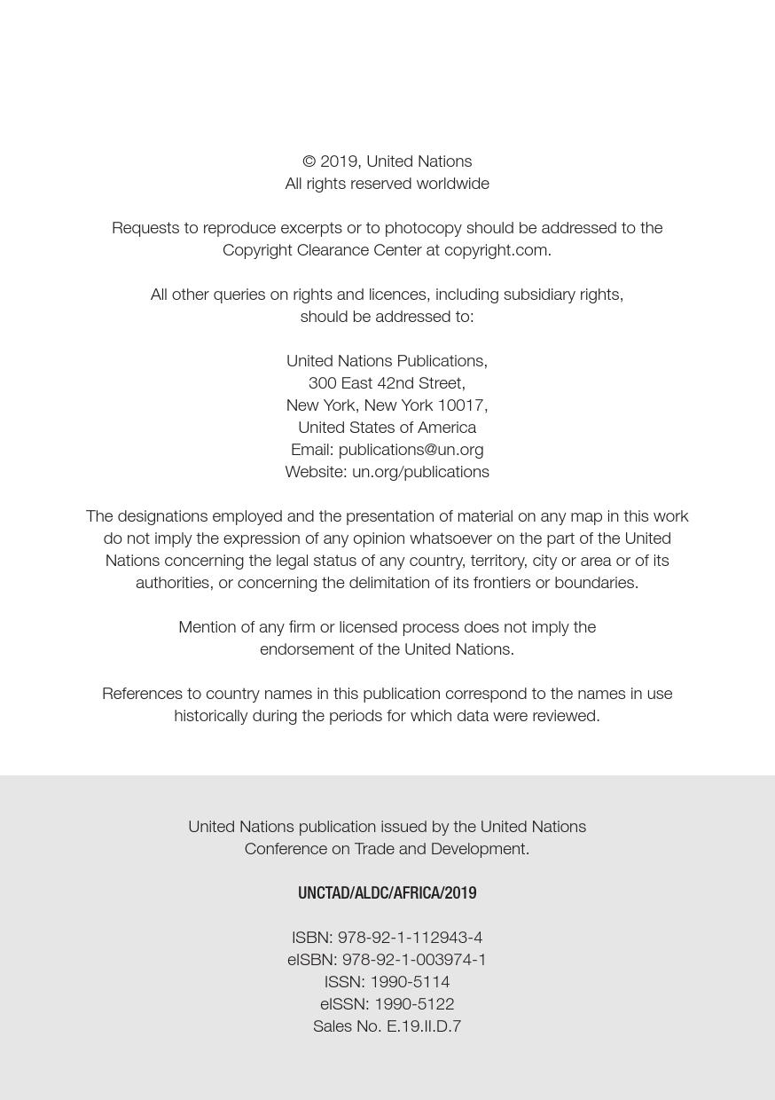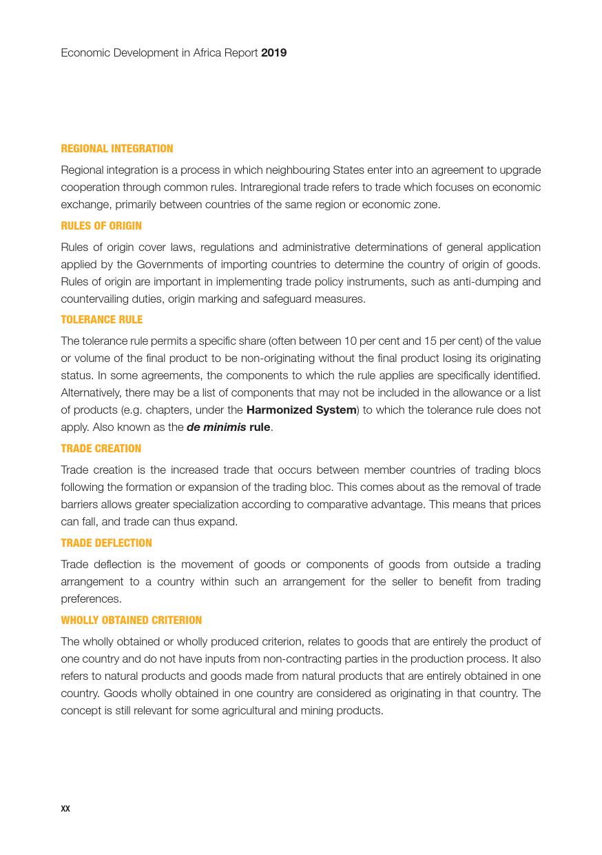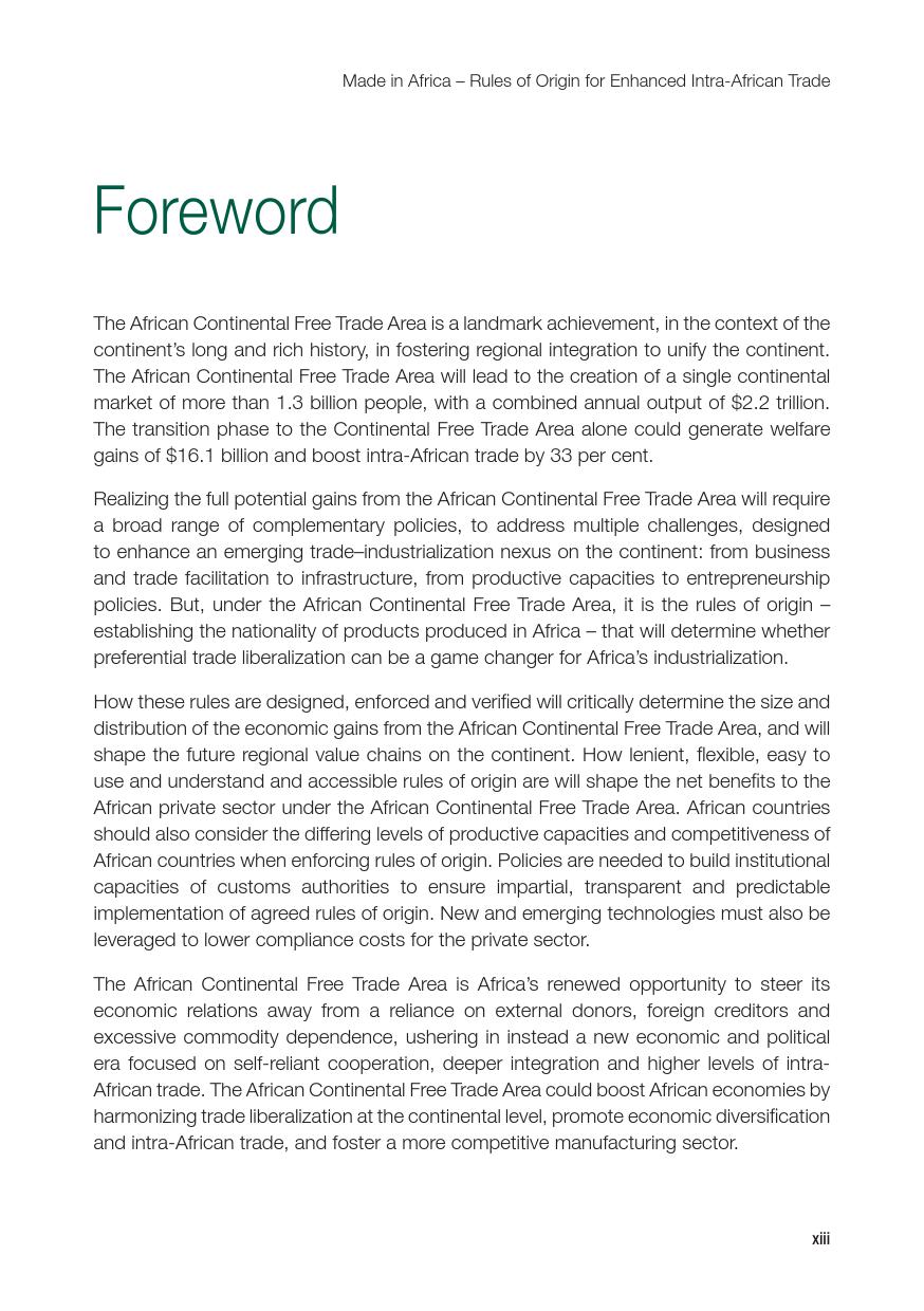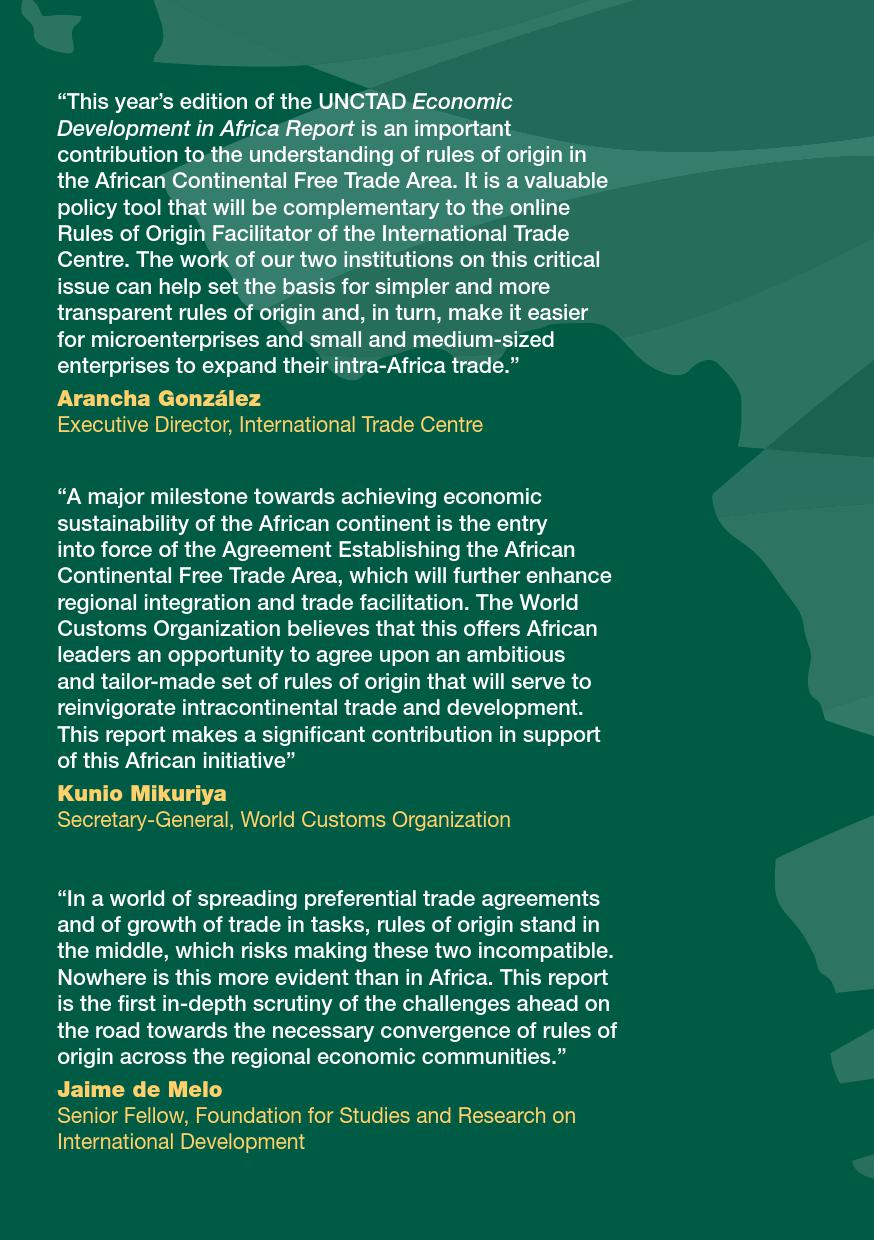 联合国:2019年非洲经济发展报告 联合国贸发会议在卡萨布兰卡发布《2019年非洲经济发展报告》,主题是:“非洲制造:原产地规则是非洲内部贸易的跳板”。报告指出,非洲大陆自贸区的实现,将有助于各成员国使用原产地规则促进非洲内部货物的自由流通和贸易的极大繁荣,进而带动制造业发展、工业化提升、就业增加和经济增长。同时报告指出,原产地规则管理难度较高,对生产企业、海关监管和非洲大陆自贸区相关法规制度的建设都将提出较大挑战。 PDF版本将分享到199IT交流群,支持我们发展可加入! 更多阅读:联合国:2019年世界投资报告联合国:2020年世界经济形势与展望报告联合国贸发会:2019年数字经济报告(194页)联合国:2020年世界经济形势与展望年中报告联合国环境规划署:2019年碳排放差距报告联合国:2024年世界社会报告联合国:2018年电子政务报告联合国:世界统计袖珍手册2022版联合国:2021年食物浪费指数报告联合国:中东和北非2030一代(110页)亚非银行:2018年非洲财富报告非洲的工作年龄人口到2100年将超过中国世界银行:2019年营商环境报告2019年全球经济展望:前景趋暗联合国:2019全球粮食危机报告