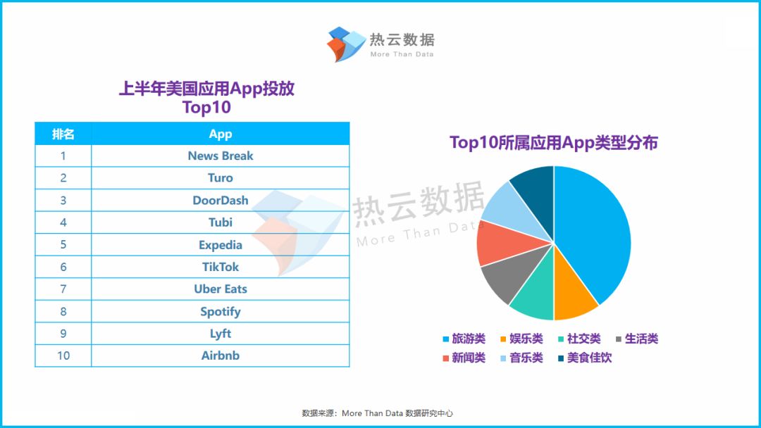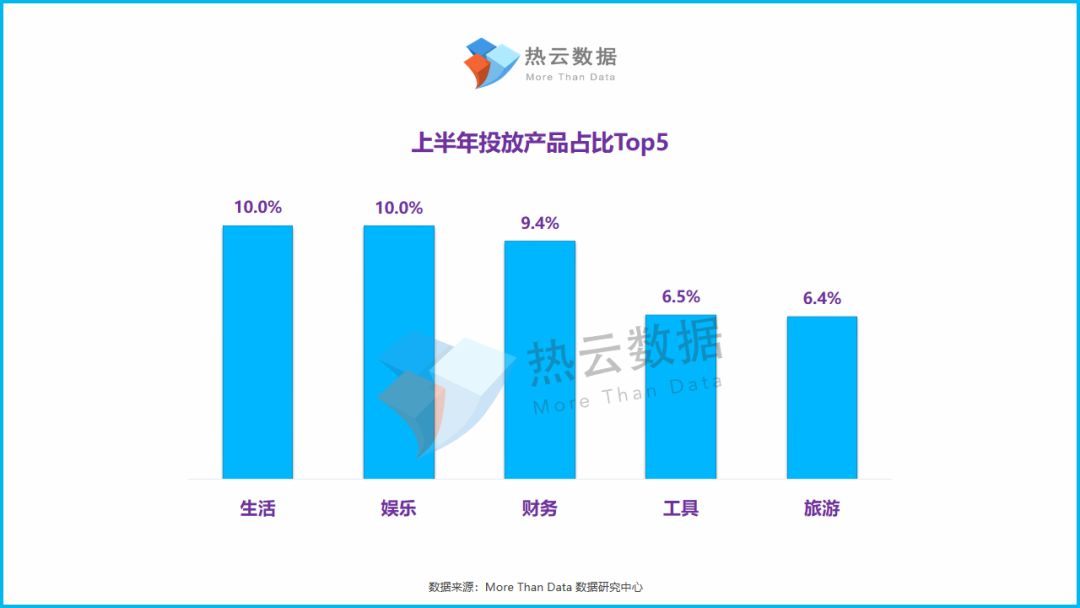 美国作为北美地区第一大互联网市场,根据公开数据表明:2018年互联网网民渗透率达77%;而中国网民的渗透率为59%。相比较于国内,美国的互联网App的市场更为成熟。此外,根据热云数据监测,2019上半年美国应用App投放市场产品投放数量最多的两个类型是生活类与娱乐类App。财务类、工具类与旅游类相继排名3-5位。