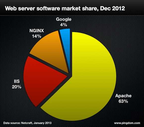 - -6.7% – Apache服务器的网站数量下降了6.7%(Decline in the number of Apache websites in 2012.)