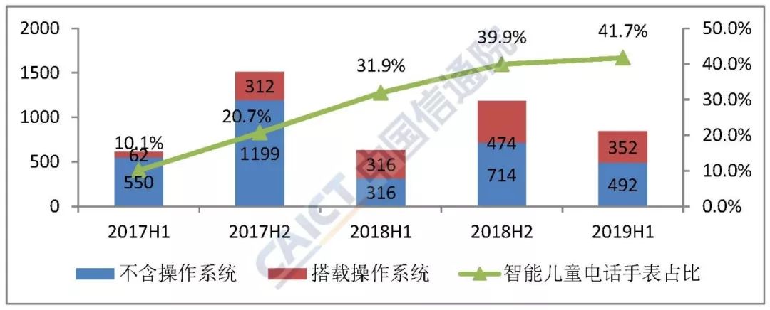 电话手表向4G方向发展。随着移动网络的发展,电话手表也进入了4G时代,4G网络能够实现电话手表的高速网络通信,为语音交互、视频对话、在线音乐等提供了数据传输基础。2019年上半年,国内市场4G电话手表上市新产品50款,占同期国内电话手表新上市机型数量的68.5%,较上年同期提高7.3个百分点,4G电话手表市场总体出货量480万部,在同期国内电话手表总体出货量中占比52.2%,较上年同期提高10.7个百分点。
