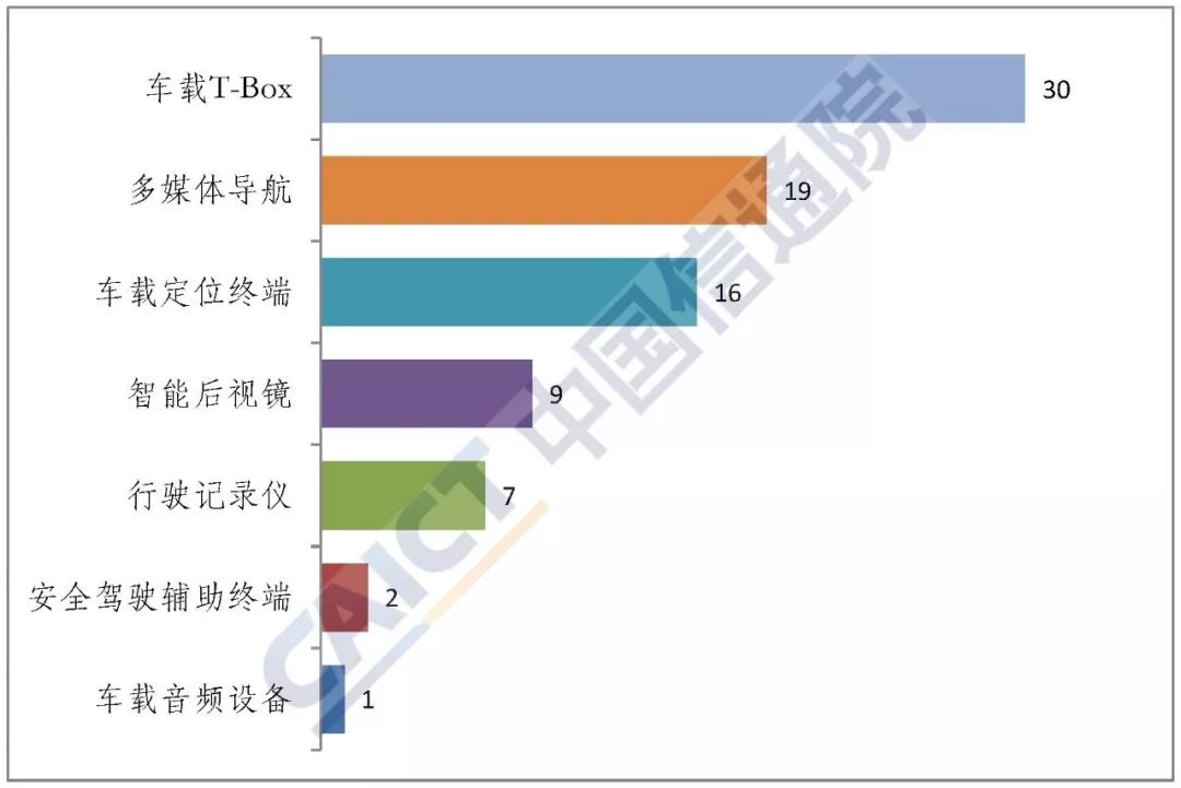 图4 2019年上半年国内各类车载终端新产品型号数量(单位:款)