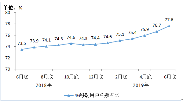 图2 2018年6月底-2019年6月底4G用户总数占比情况