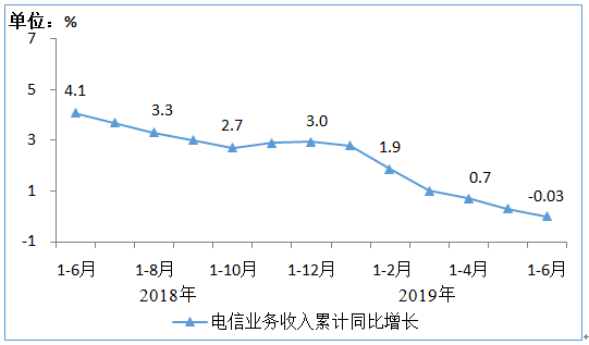 图1 2018年6月-2019年6月电信业务收入累计增速