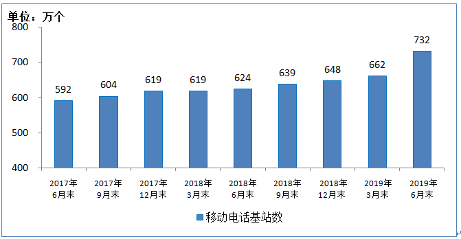 受物联网业务高速增长、基站需求增大影响,移动通信基站总数达732万个,其中4G基站总数为445万个,占60.8%。