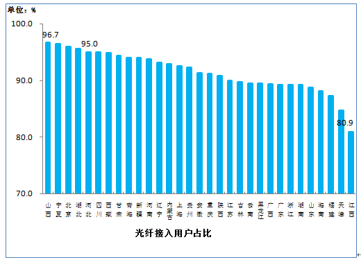 图12 100Mbps及以上固定宽带接入用户占比各省分布情况
