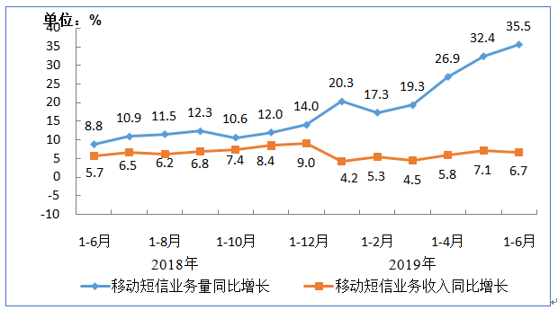 移动短信业务量和收入均保持增长态势。在服务登录和身份认证等服务普及带动下,短信业务的业务量和收入保持同步增长。上半年,全国移动短信业务量同比增长35.5%,移动短信业务收入完成208亿元,同比增长6.7%。