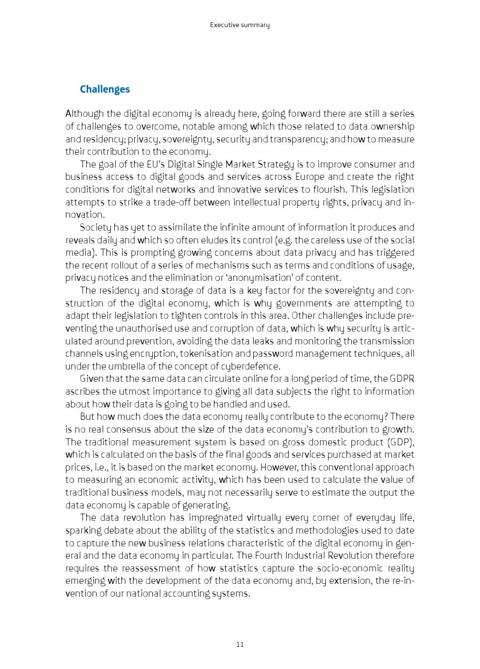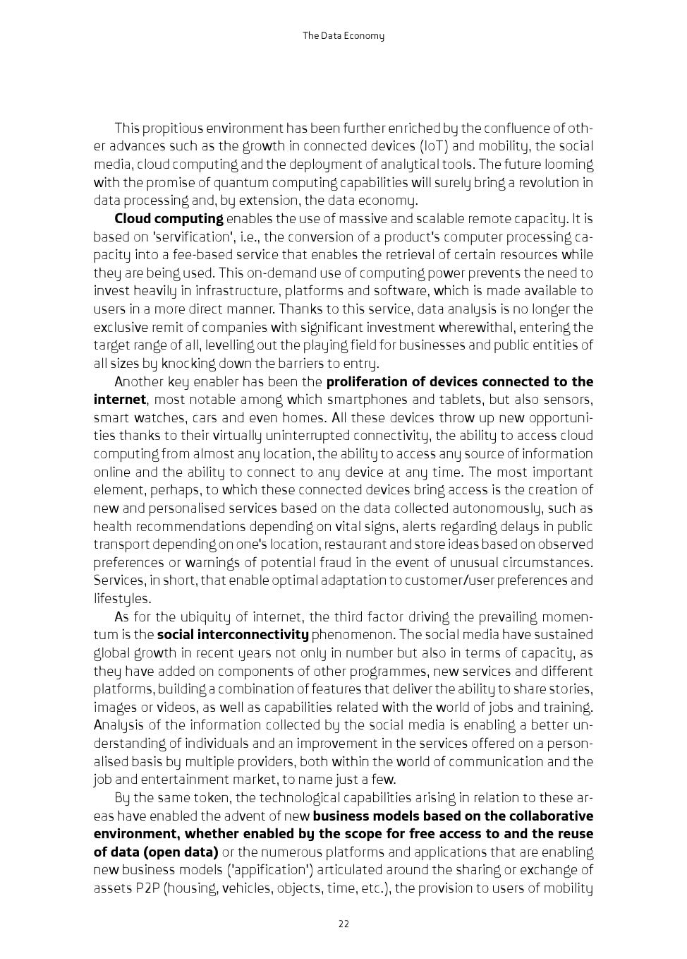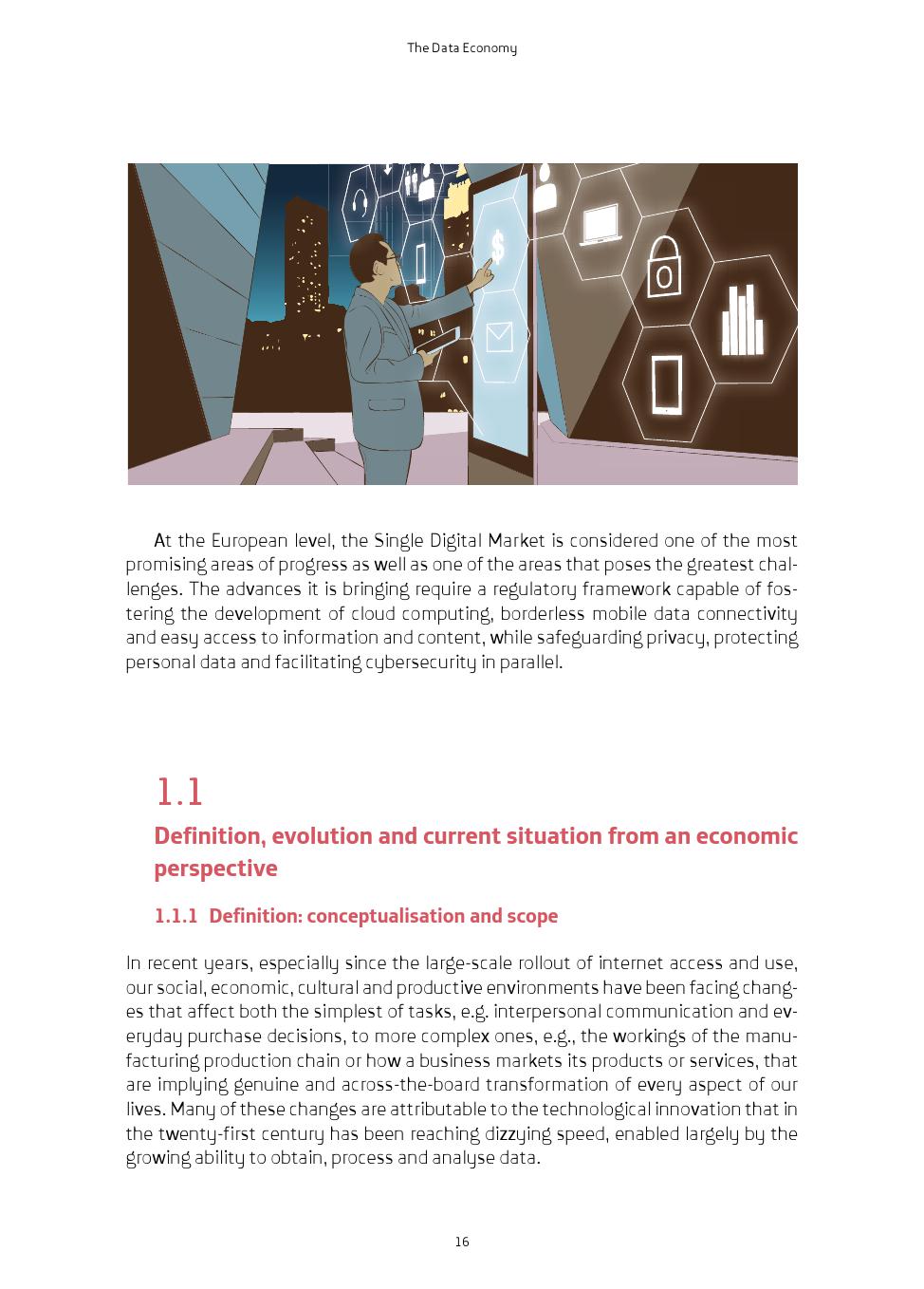 数据是新经济的核心。国际标准ISO / IEC 2382-1提供了“数据”一词的实际定义:“以合适的通信、处理方式重新解释信息”。数据是描述经验事实的定量或定性的符号表示(数字、字母、算法、空间等)。数据可以来自不同的来源并且以不同的形式呈现,例如来自交通摄像机的图像、个人照片、社交媒体消息、对话中的声音、房间中的温度、影响作物的湿度水平、每家商店销售的产品数量或产品交付的确切时间。