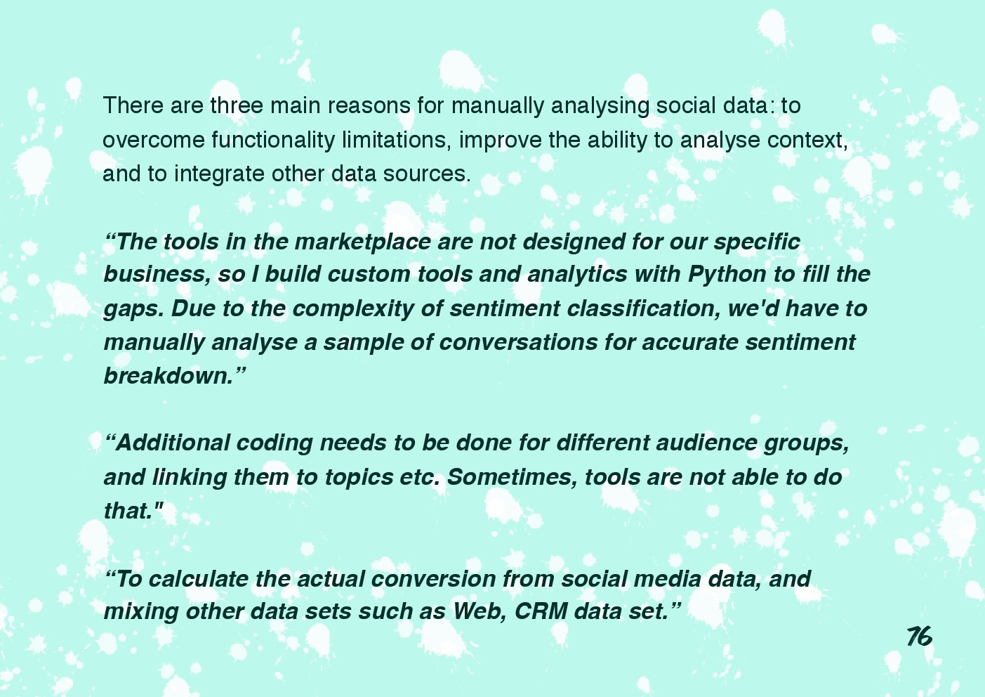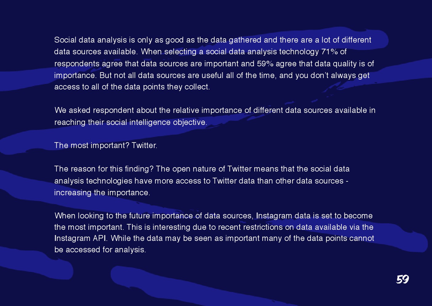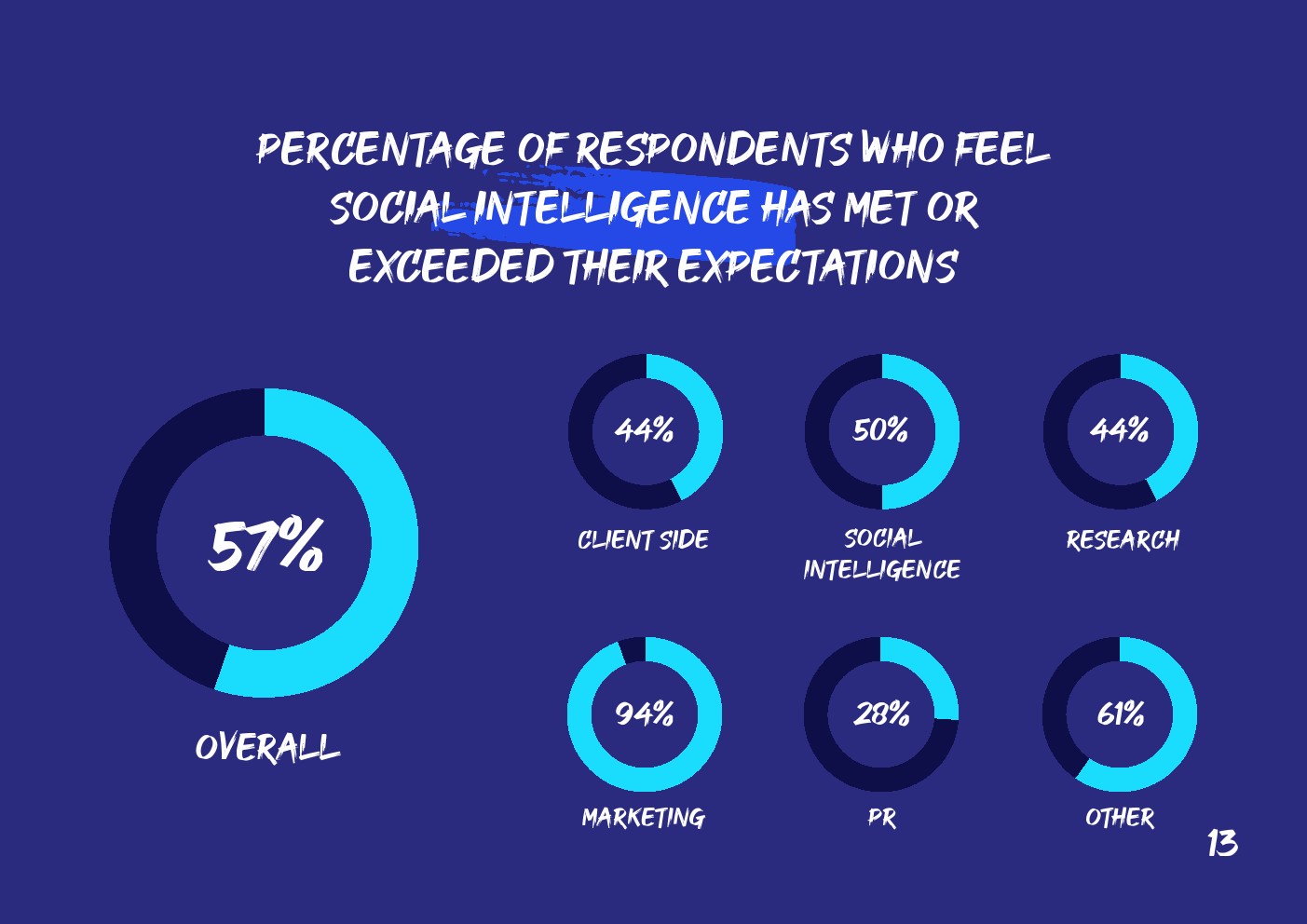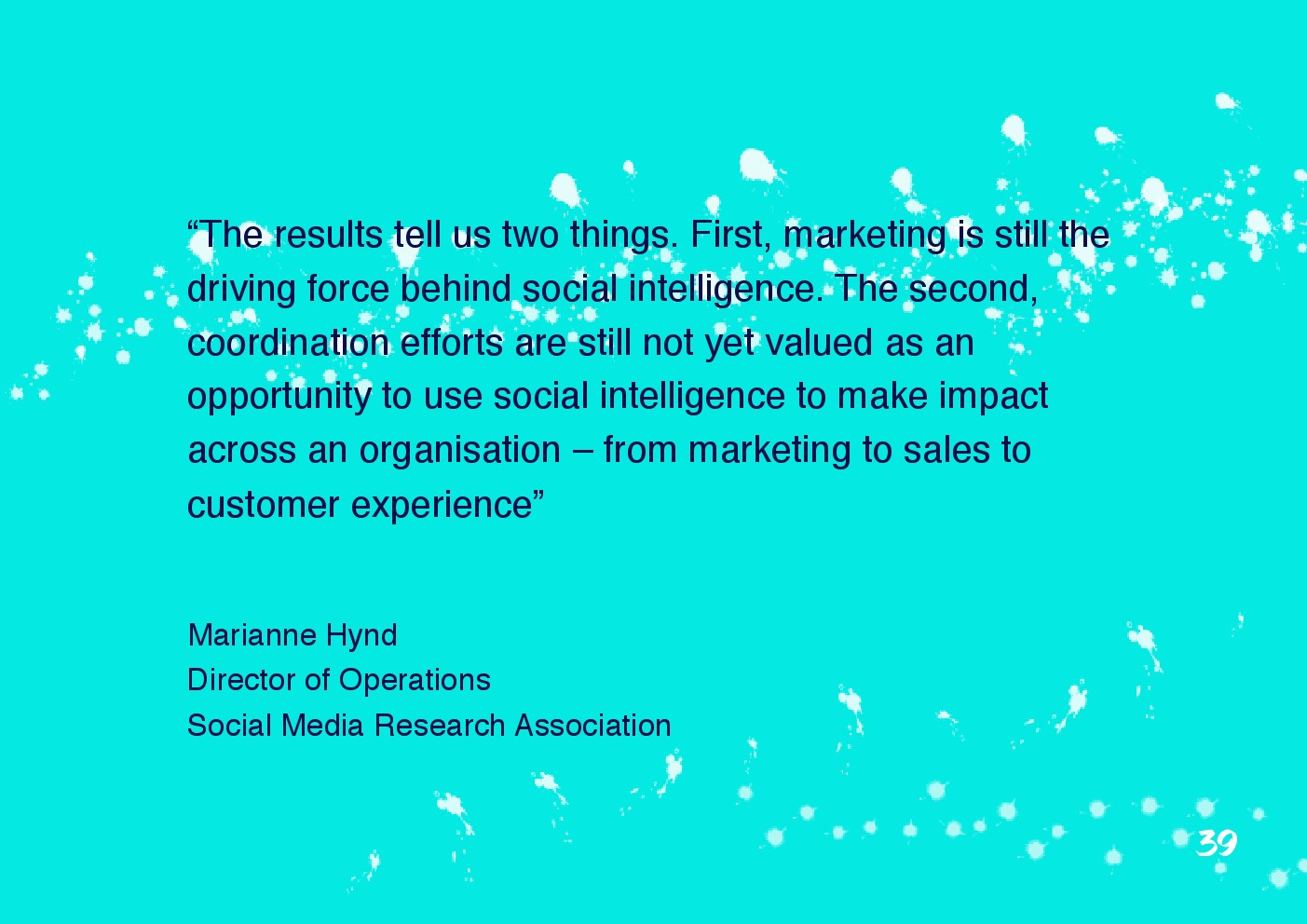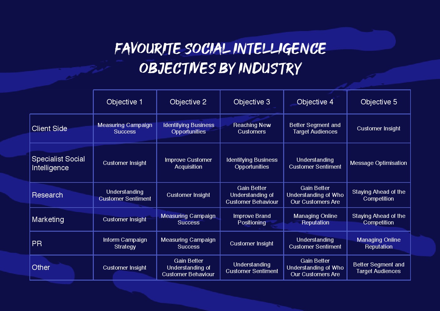 72%的受访者将客户洞察力确定为首要目标之一,其次是衡量活动成功与否(66%)。其他目标还包括更好地理解客户(57%),理解客户情绪(56%)和品牌定位(54%)。