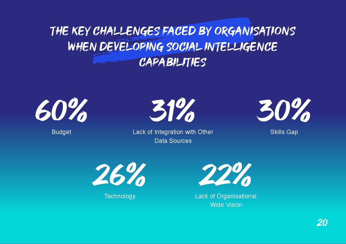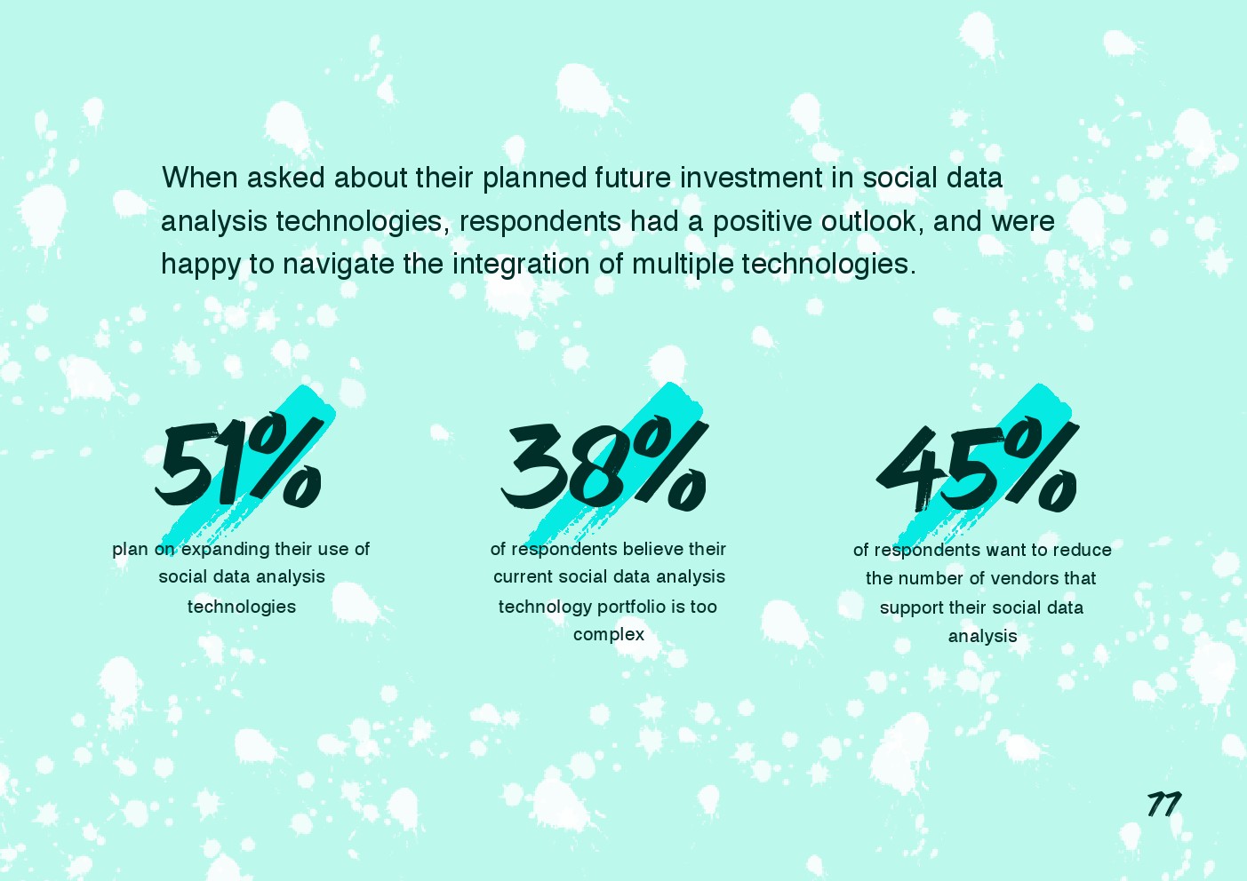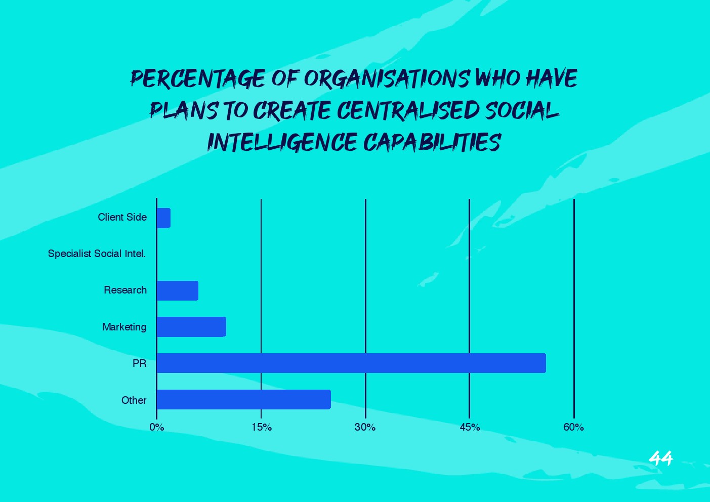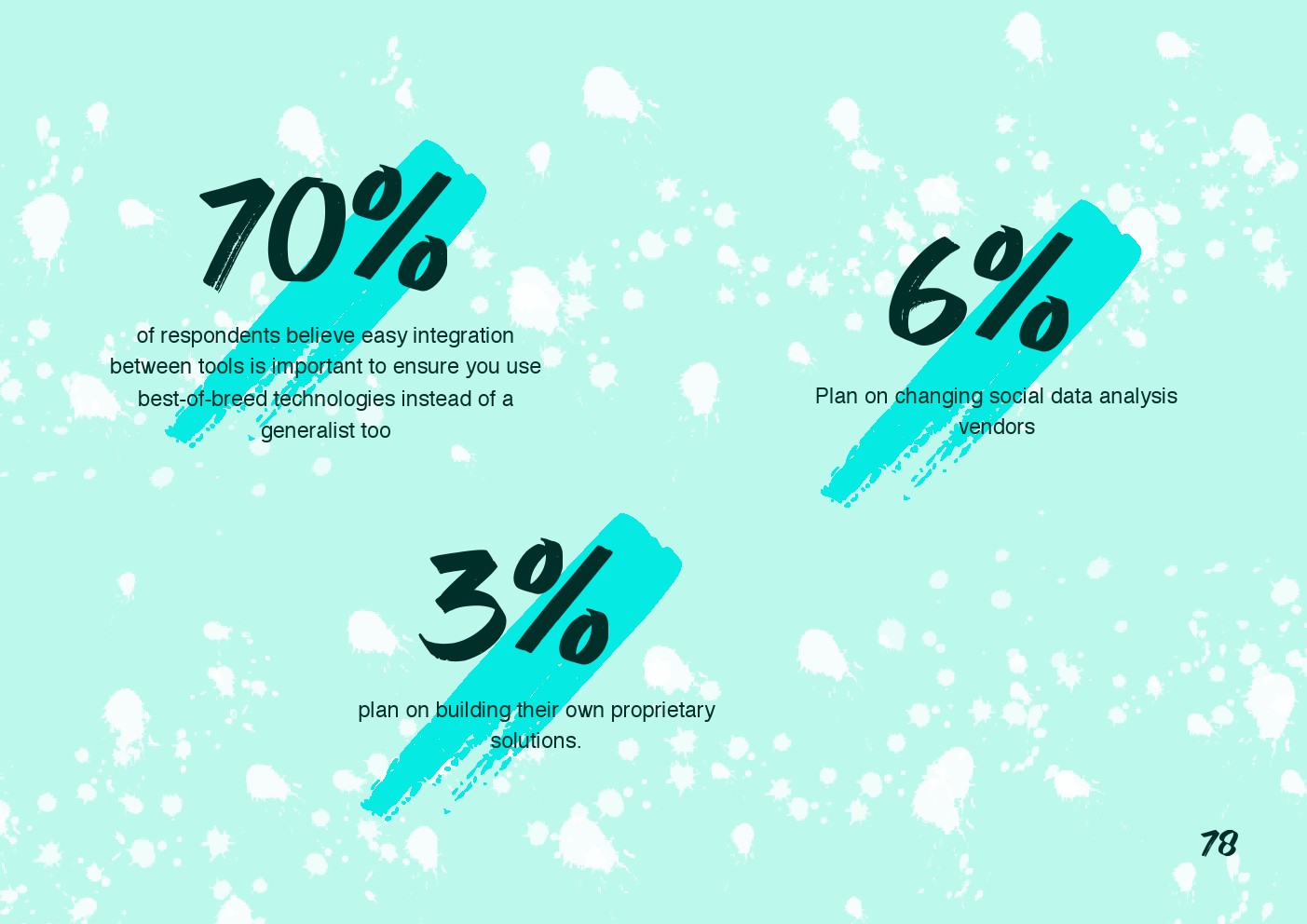 72%的受访者将客户洞察力确定为首要目标之一,其次是衡量活动成功与否(66%)。其他目标还包括更好地理解客户(57%),理解客户情绪(56%)和品牌定位(54%)。