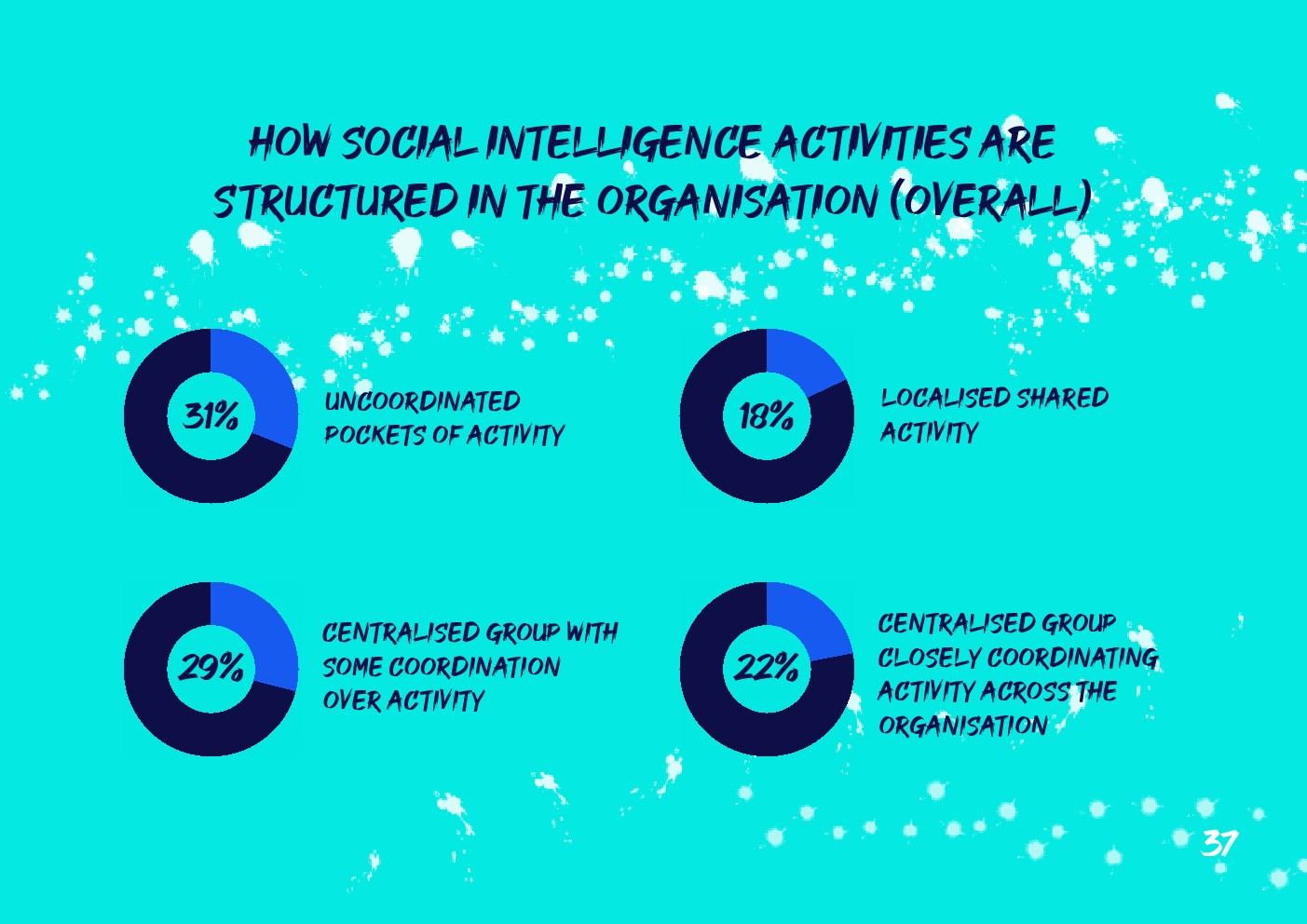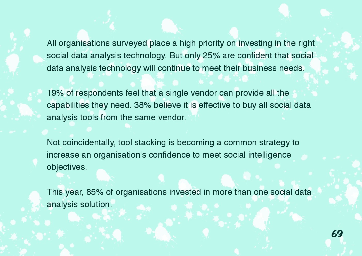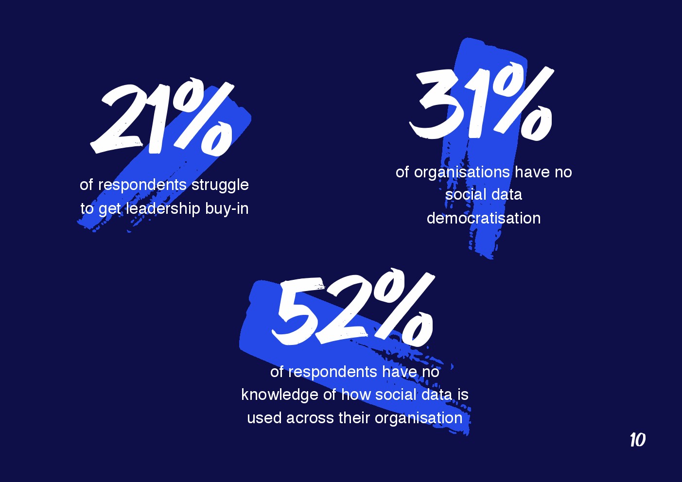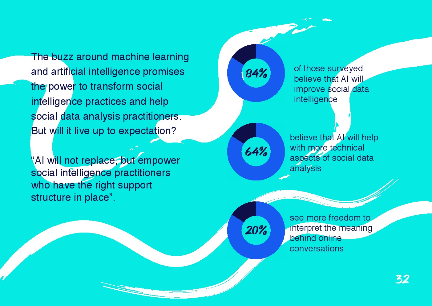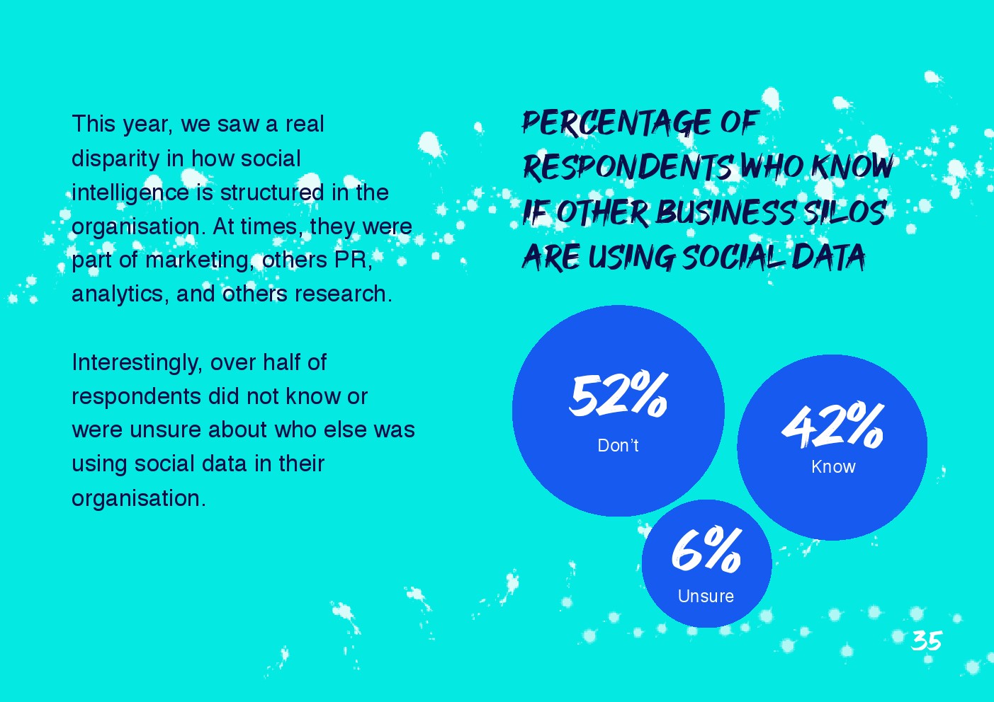 72%的受访者将客户洞察力确定为首要目标之一,其次是衡量活动成功与否(66%)。其他目标还包括更好地理解客户(57%),理解客户情绪(56%)和品牌定位(54%)。