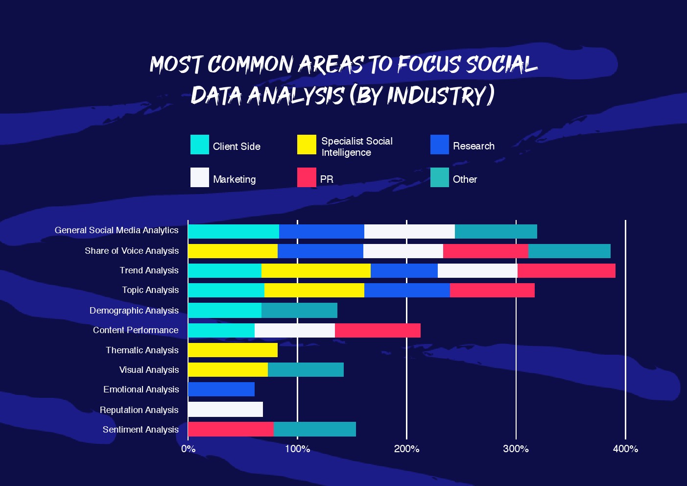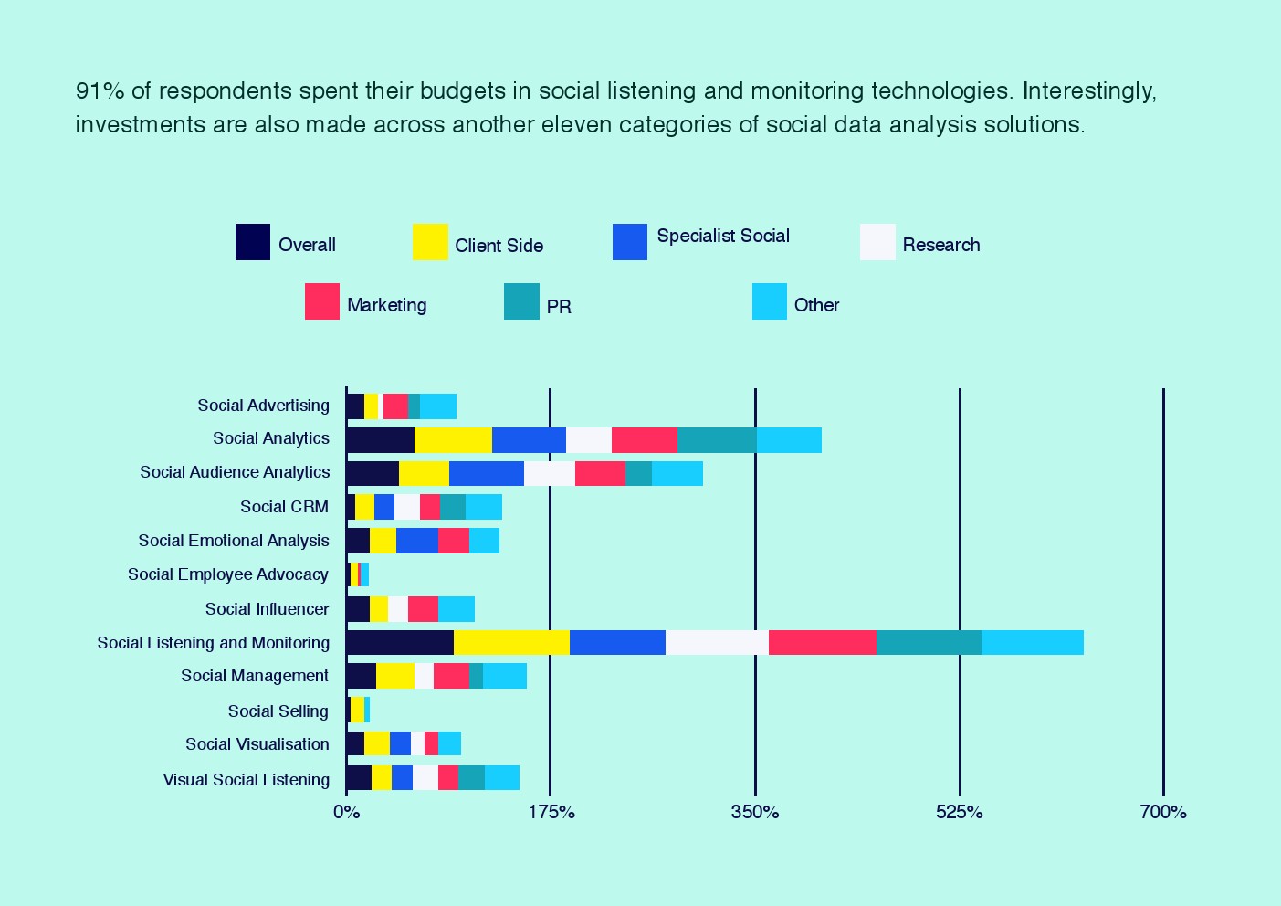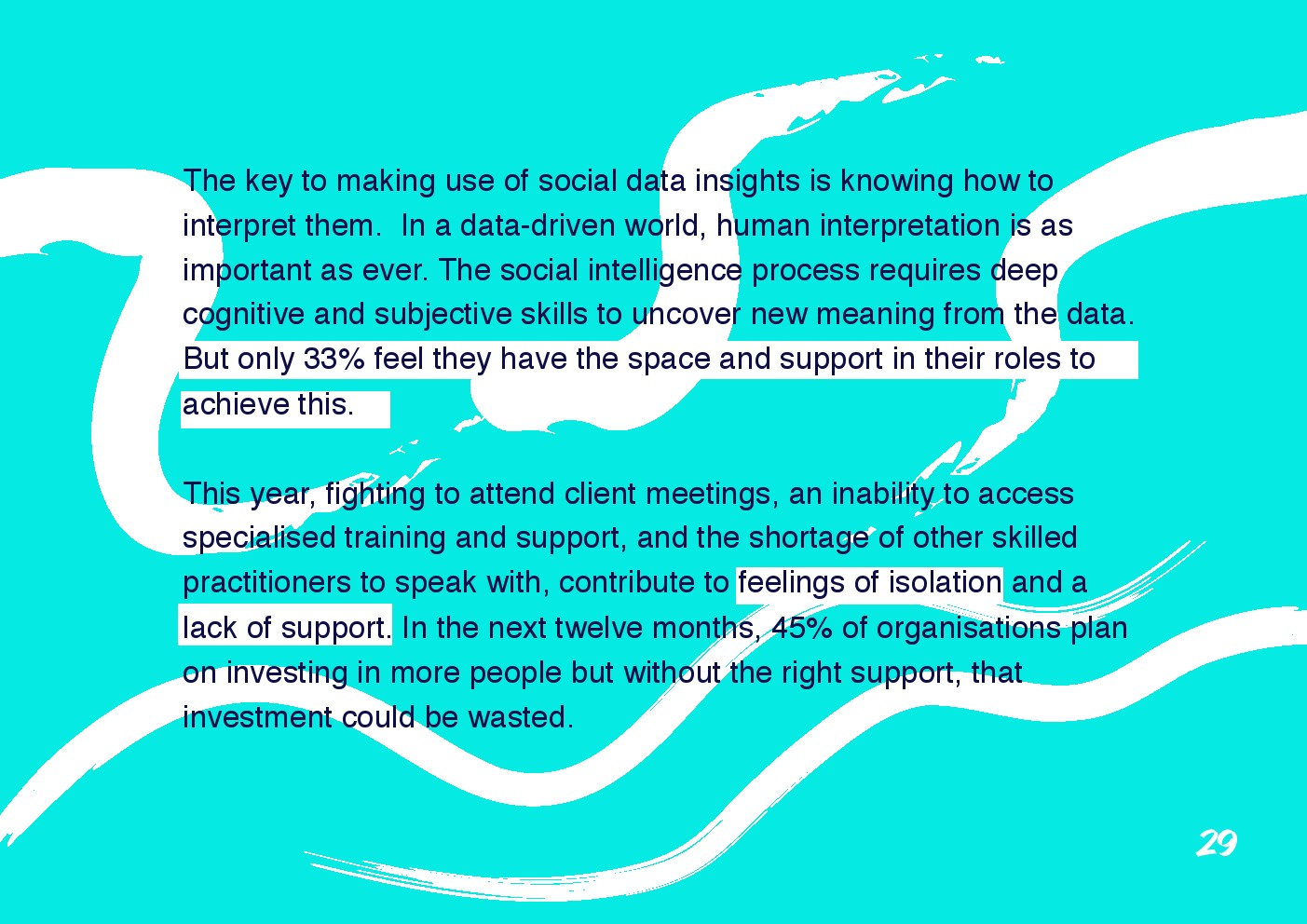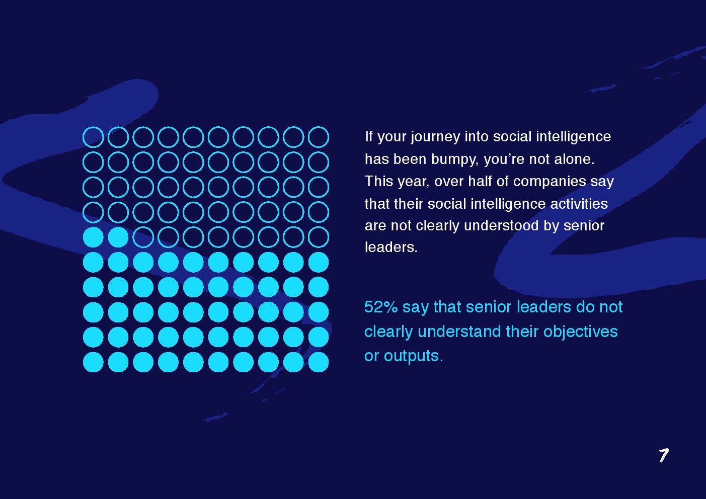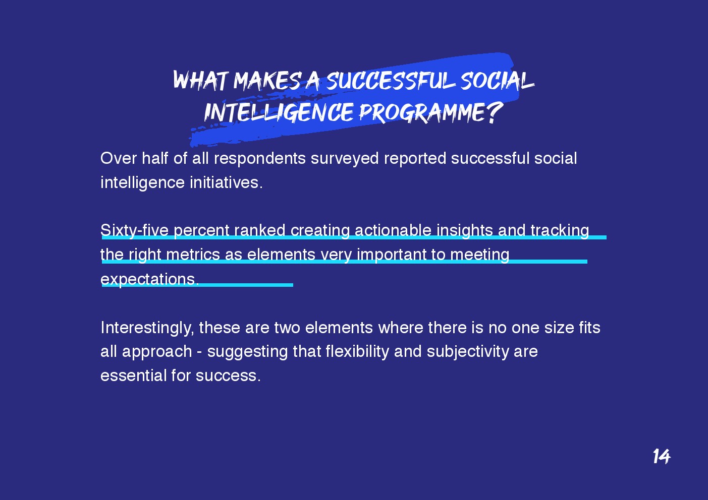 72%的受访者将客户洞察力确定为首要目标之一,其次是衡量活动成功与否(66%)。其他目标还包括更好地理解客户(57%),理解客户情绪(56%)和品牌定位(54%)。