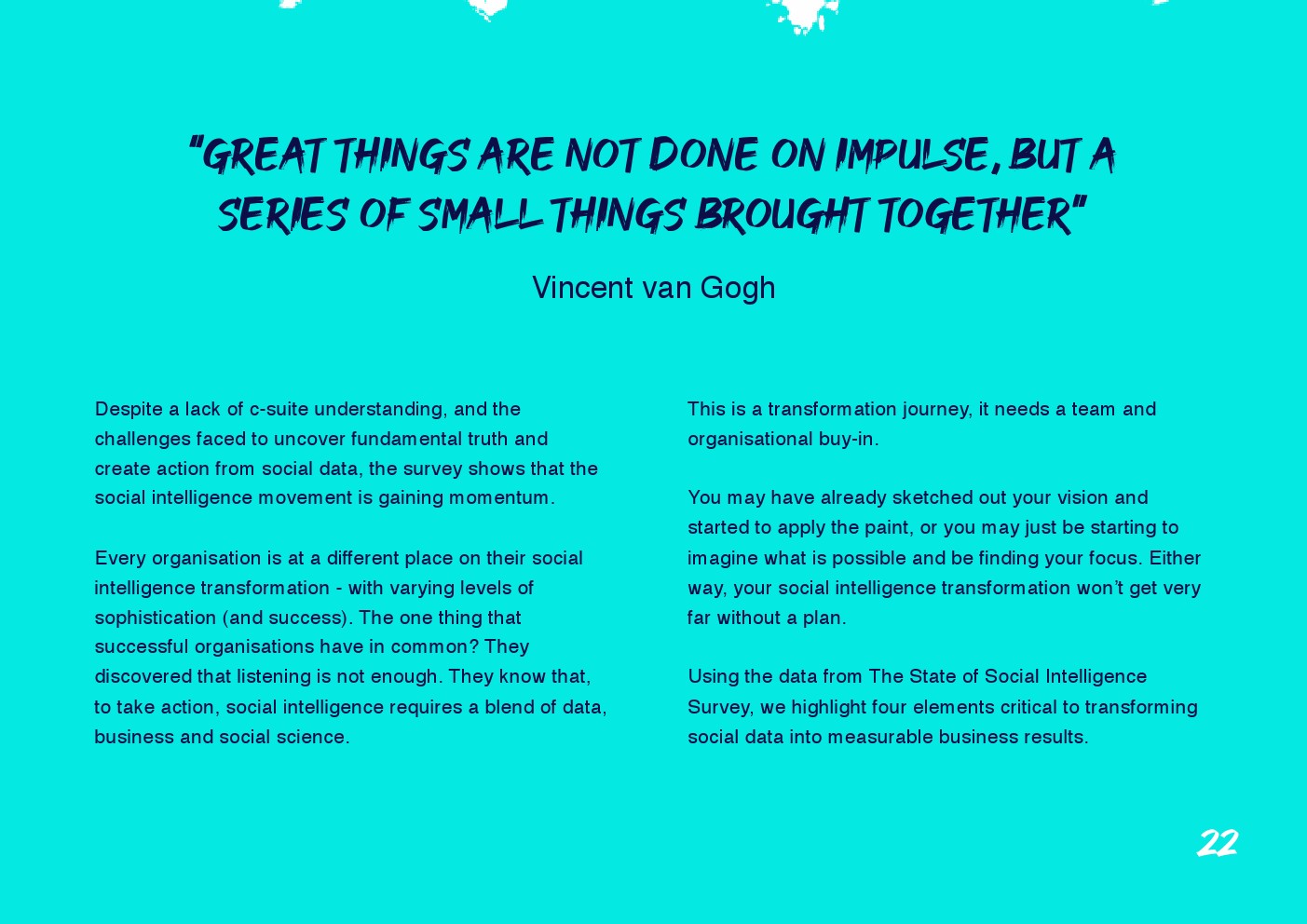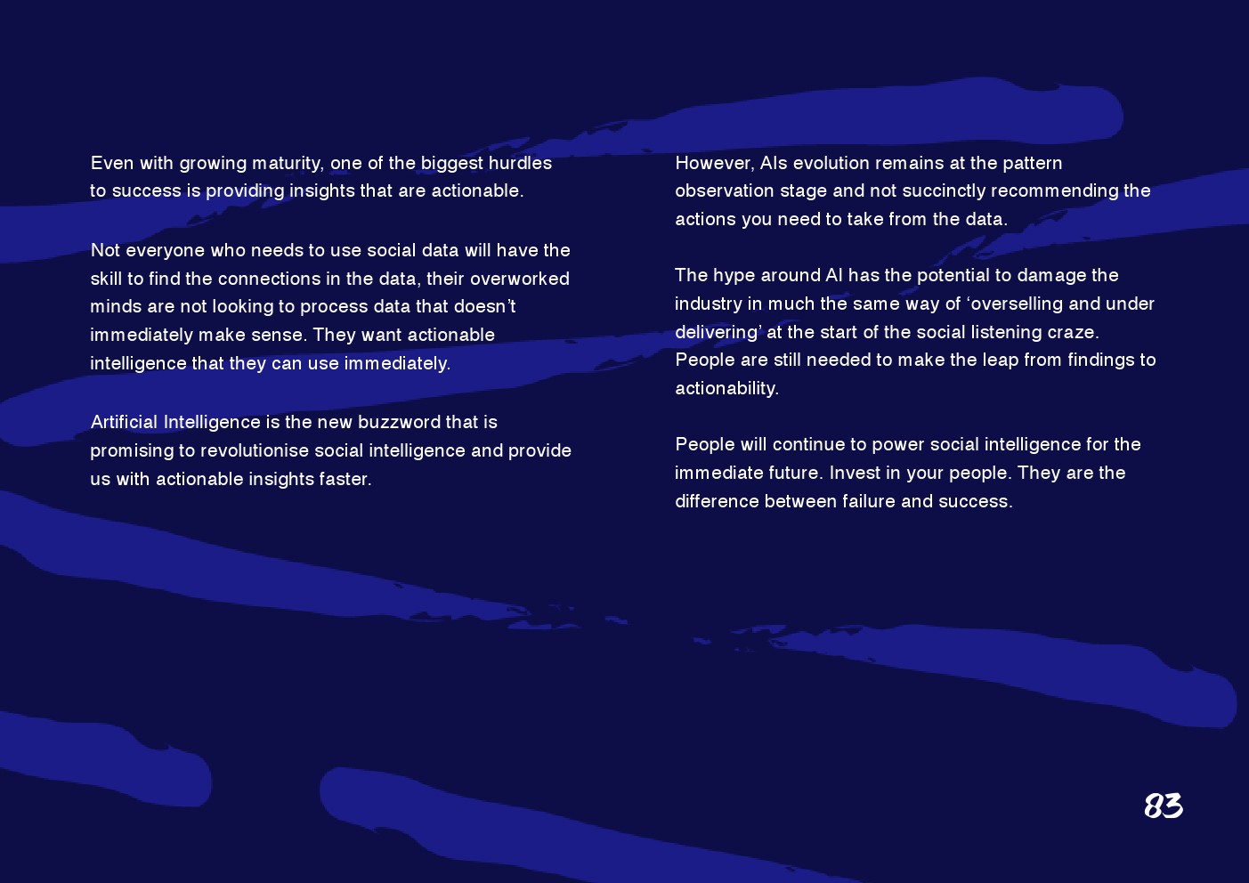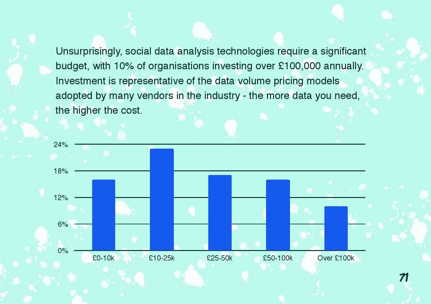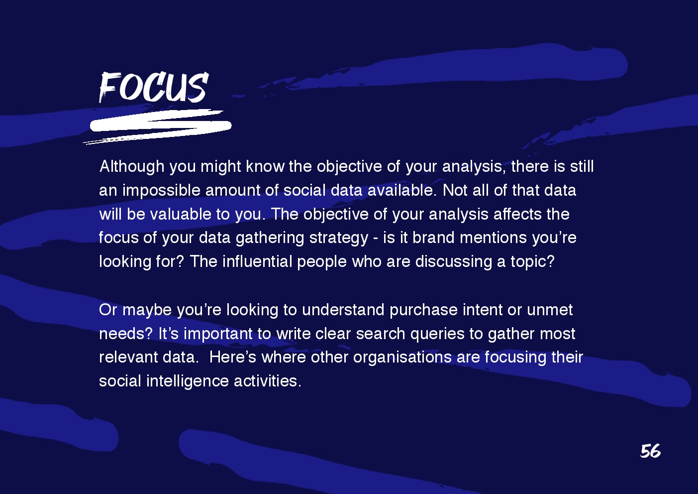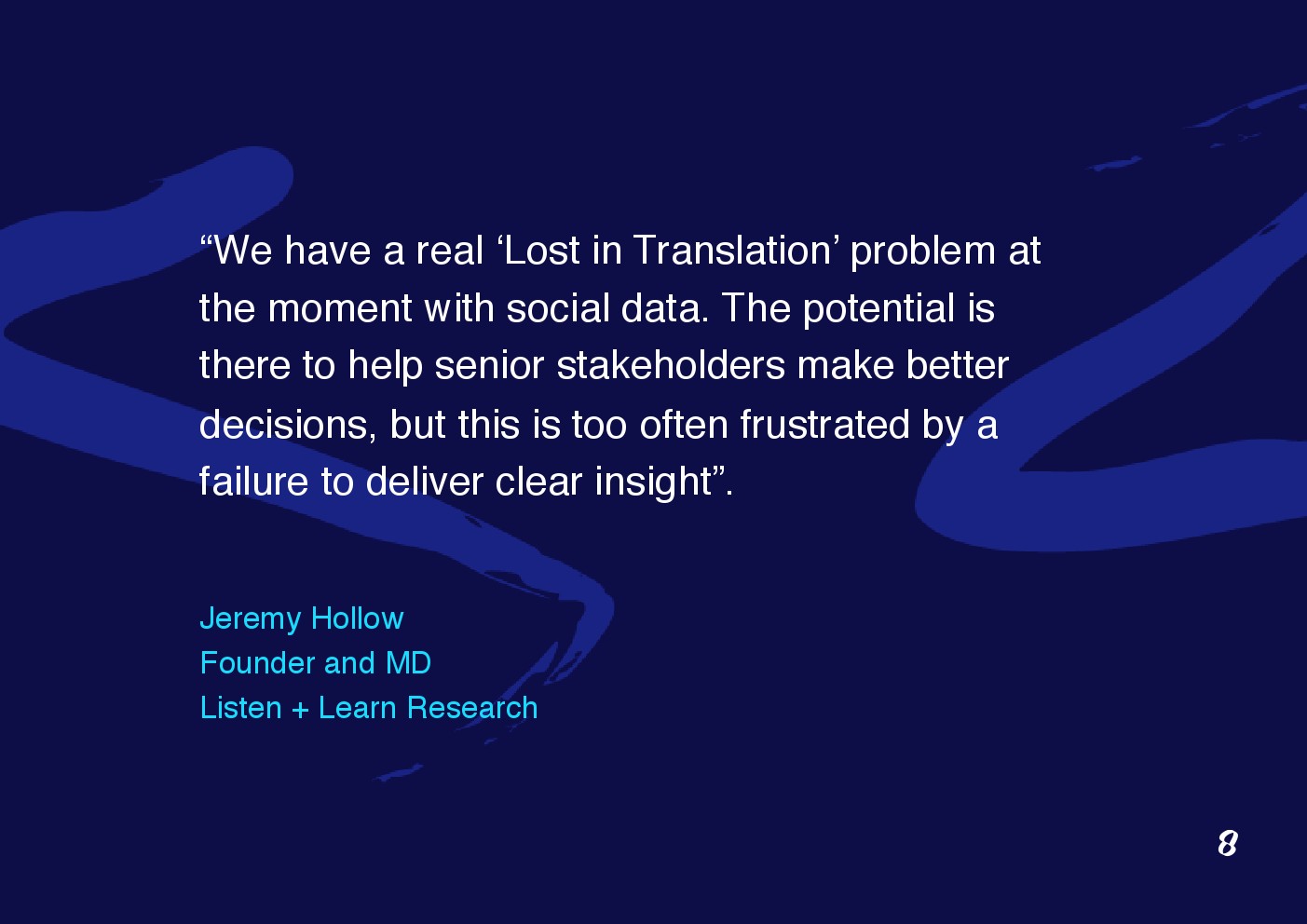 72%的受访者将客户洞察力确定为首要目标之一,其次是衡量活动成功与否(66%)。其他目标还包括更好地理解客户(57%),理解客户情绪(56%)和品牌定位(54%)。