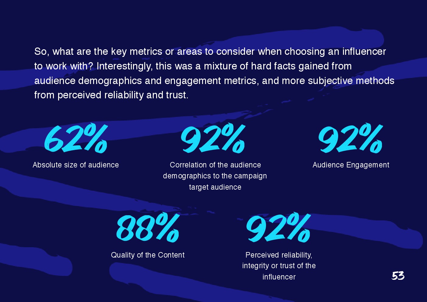 除了信任和正直外,9/10的受访者(92%)表示受众参与度是为活动选择合适的意见领袖时使用的另一个关键指标。
