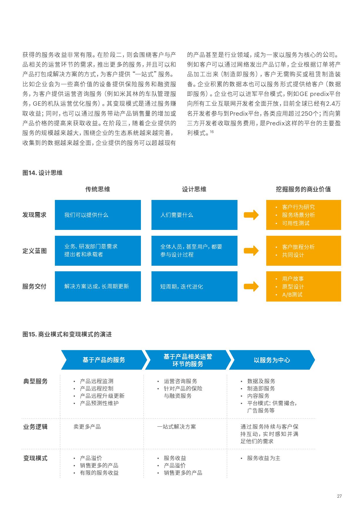 为了应对传统制造业面临的挑战,世界上包括中国在内的主要制造业强国都提出制造业振兴计划。而在这些计划中,都把向服务转型作制造业升级转型的关键方向。虽然不少制造企业已经开始着手为客户提供服务,提升服务在企业收入的比例,但大多数还是基于产品的传统服务,比如产品售后服务,产品租赁服务,为客户购买产品提供融资服务等。单单靠这些传统服务给客户带来的价值有限,也常常跟不上客户需求变化的节奏,是很难让企业实现服务转型的。