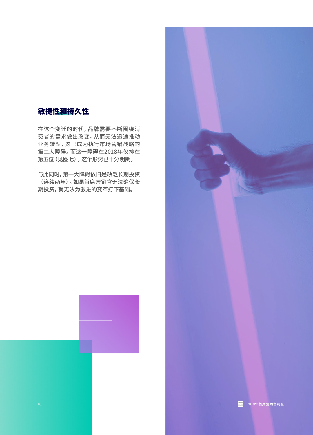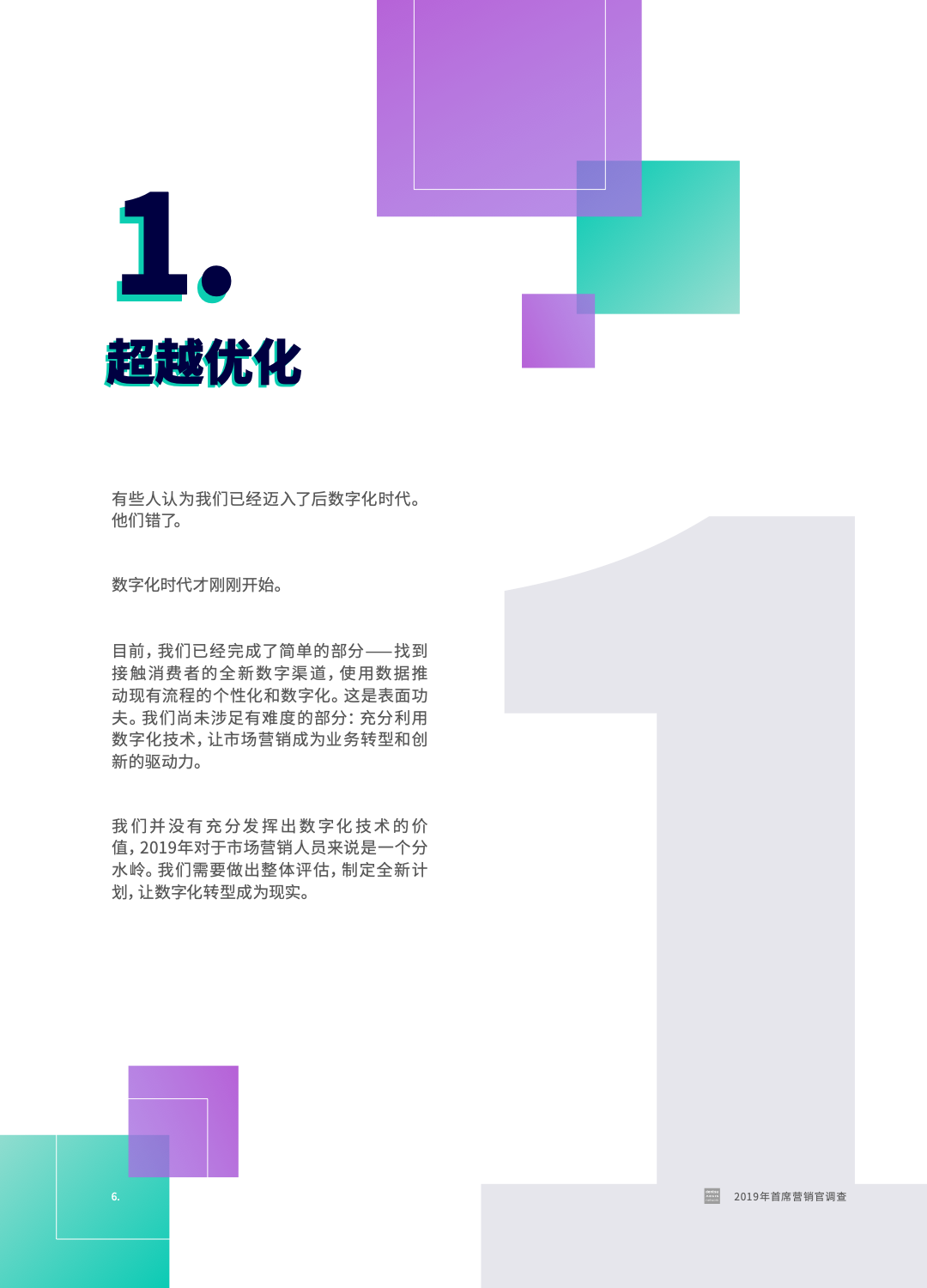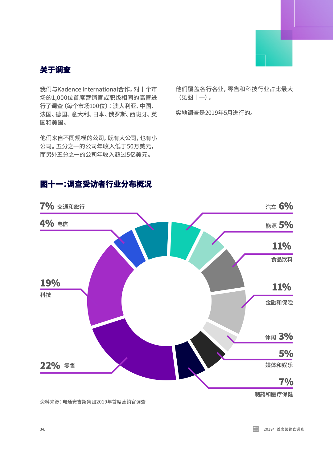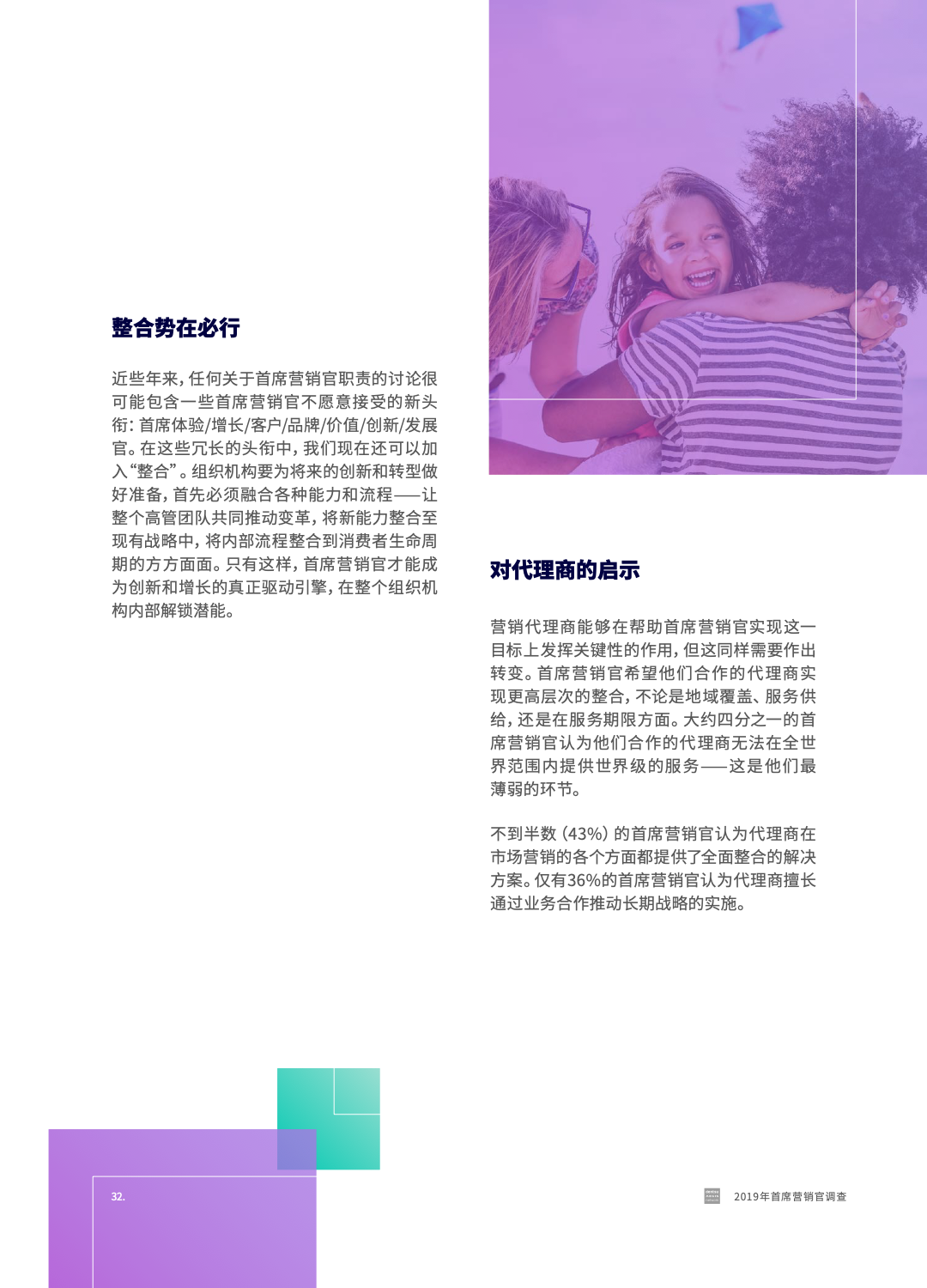 - 营销功能面临着落后于数字化竞争的风险,因为“转型和创新”仍然是当今营销职能中最不重要的角色之一,全球范围内的首席营销官们都在为实现短期指标而奔忙。