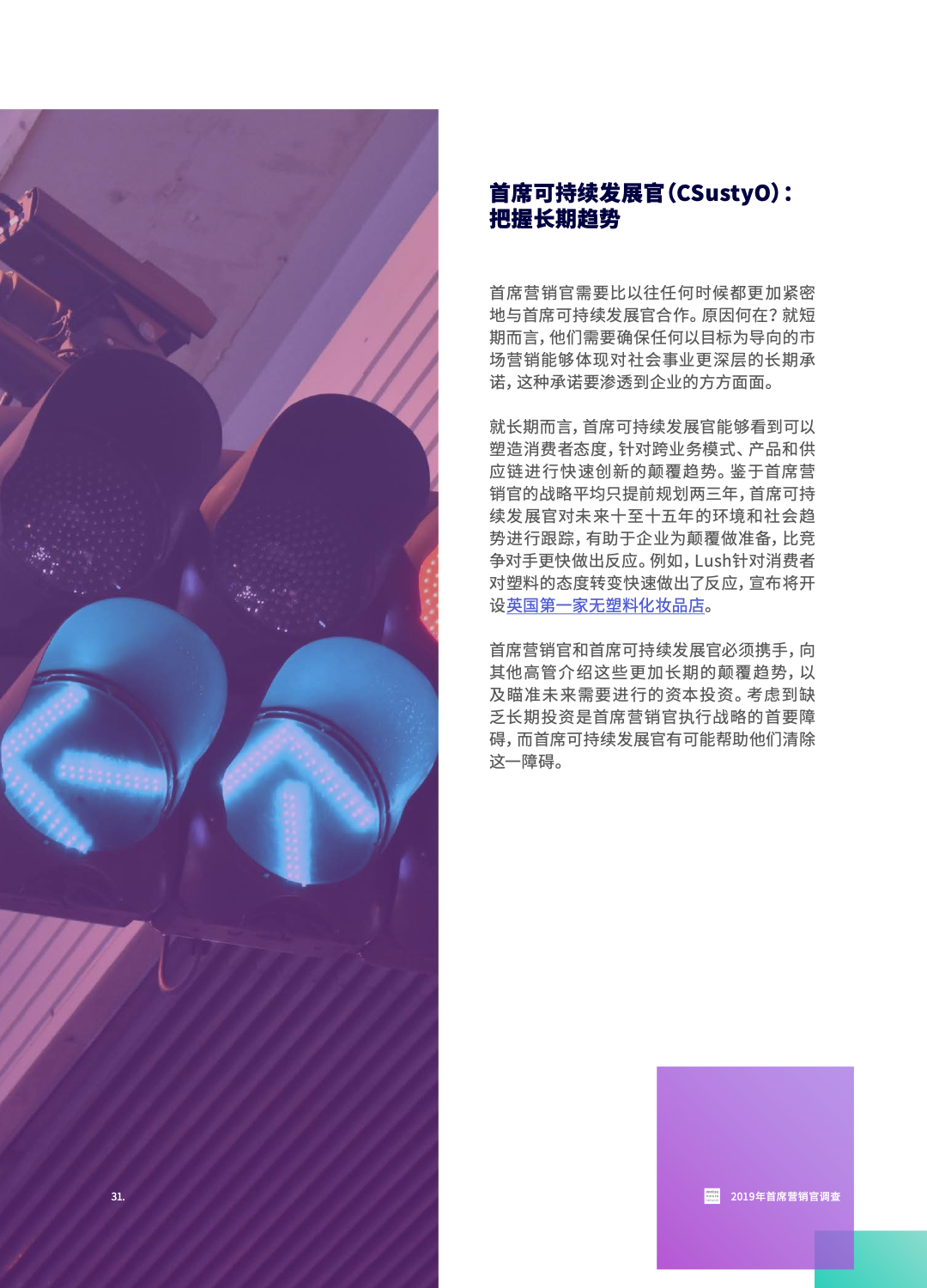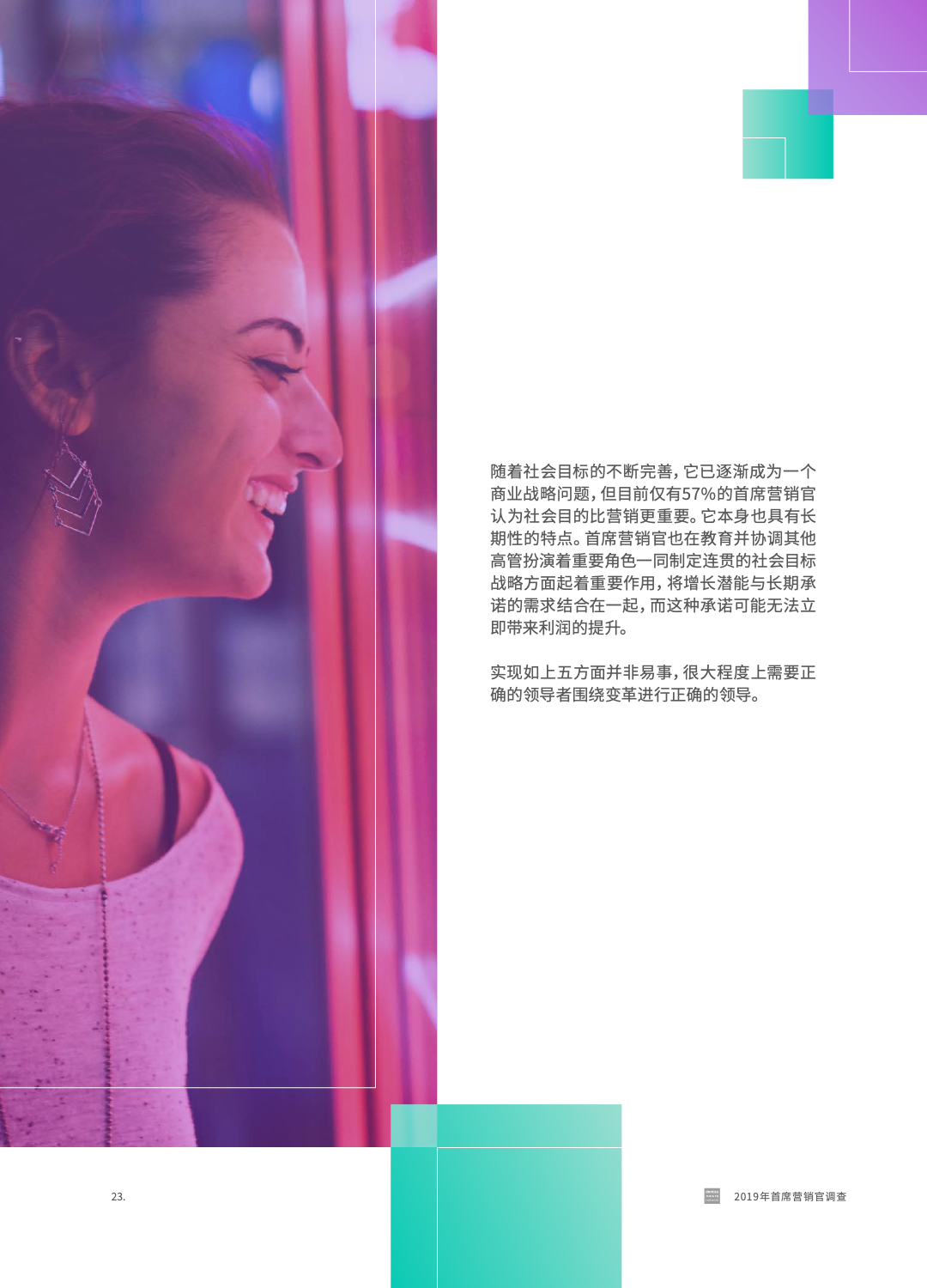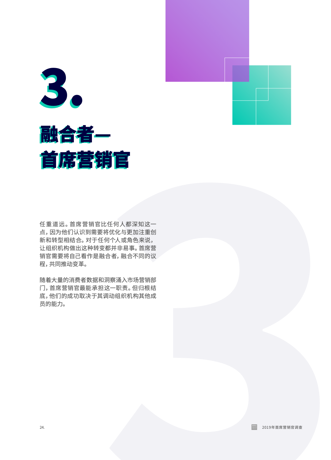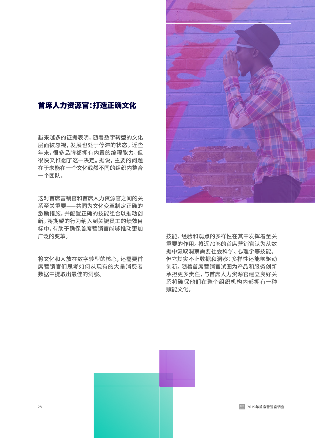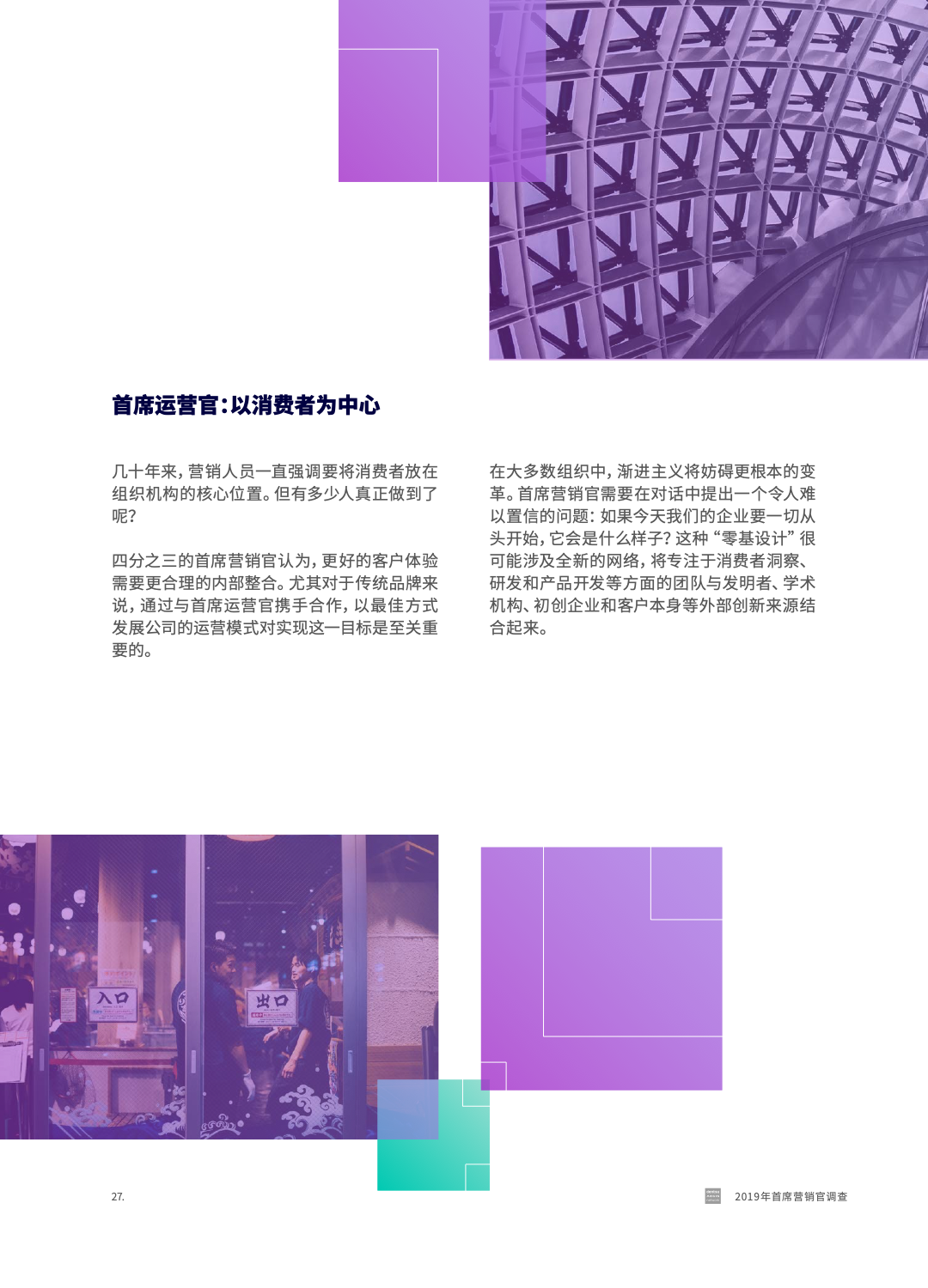 - 营销功能面临着落后于数字化竞争的风险,因为“转型和创新”仍然是当今营销职能中最不重要的角色之一,全球范围内的首席营销官们都在为实现短期指标而奔忙。