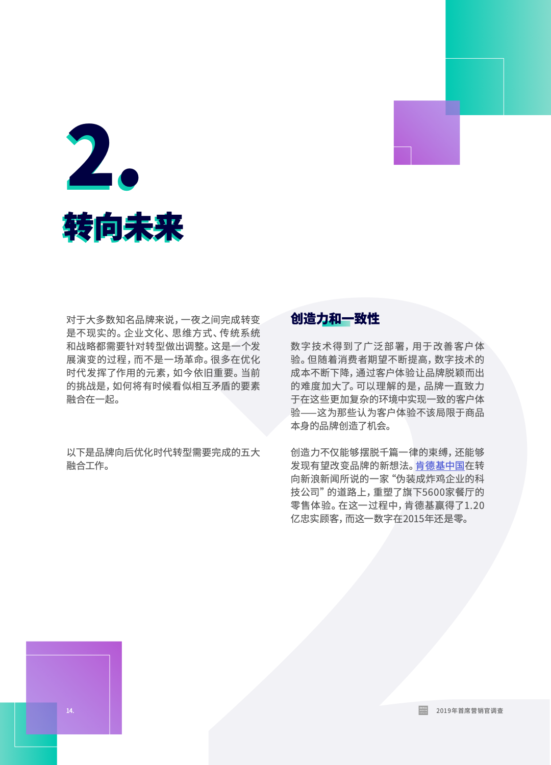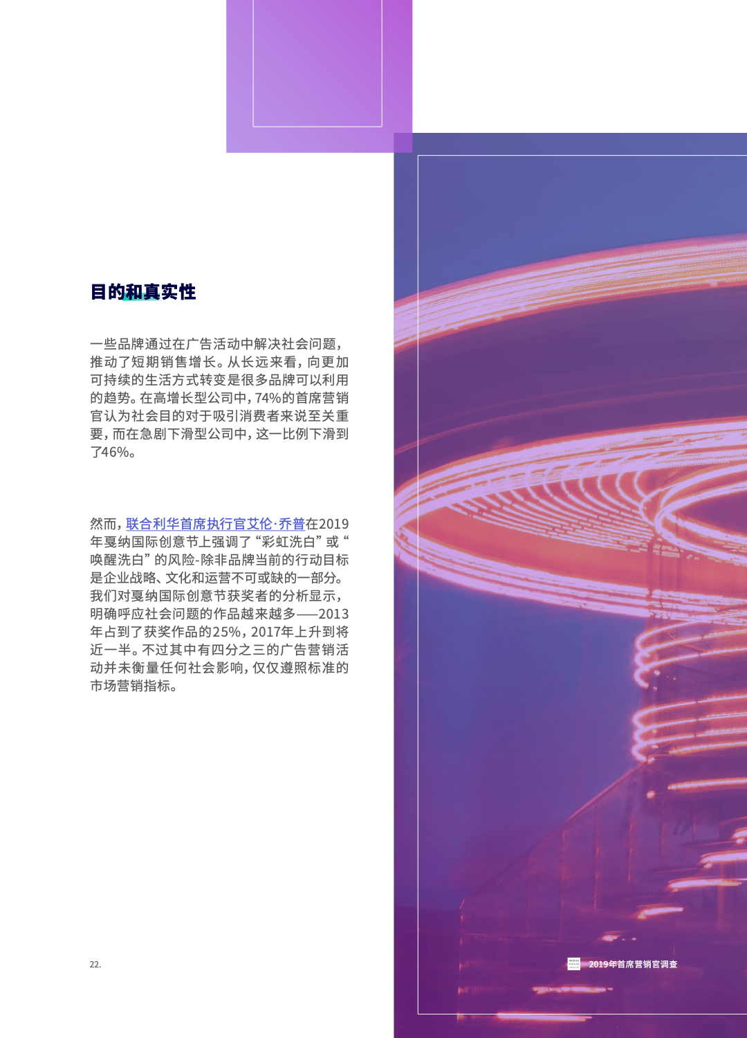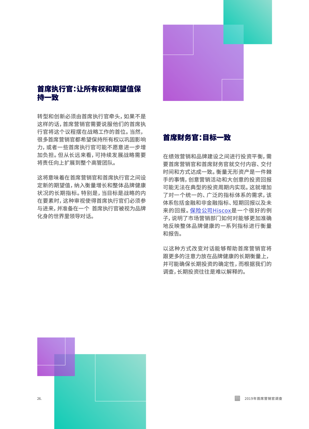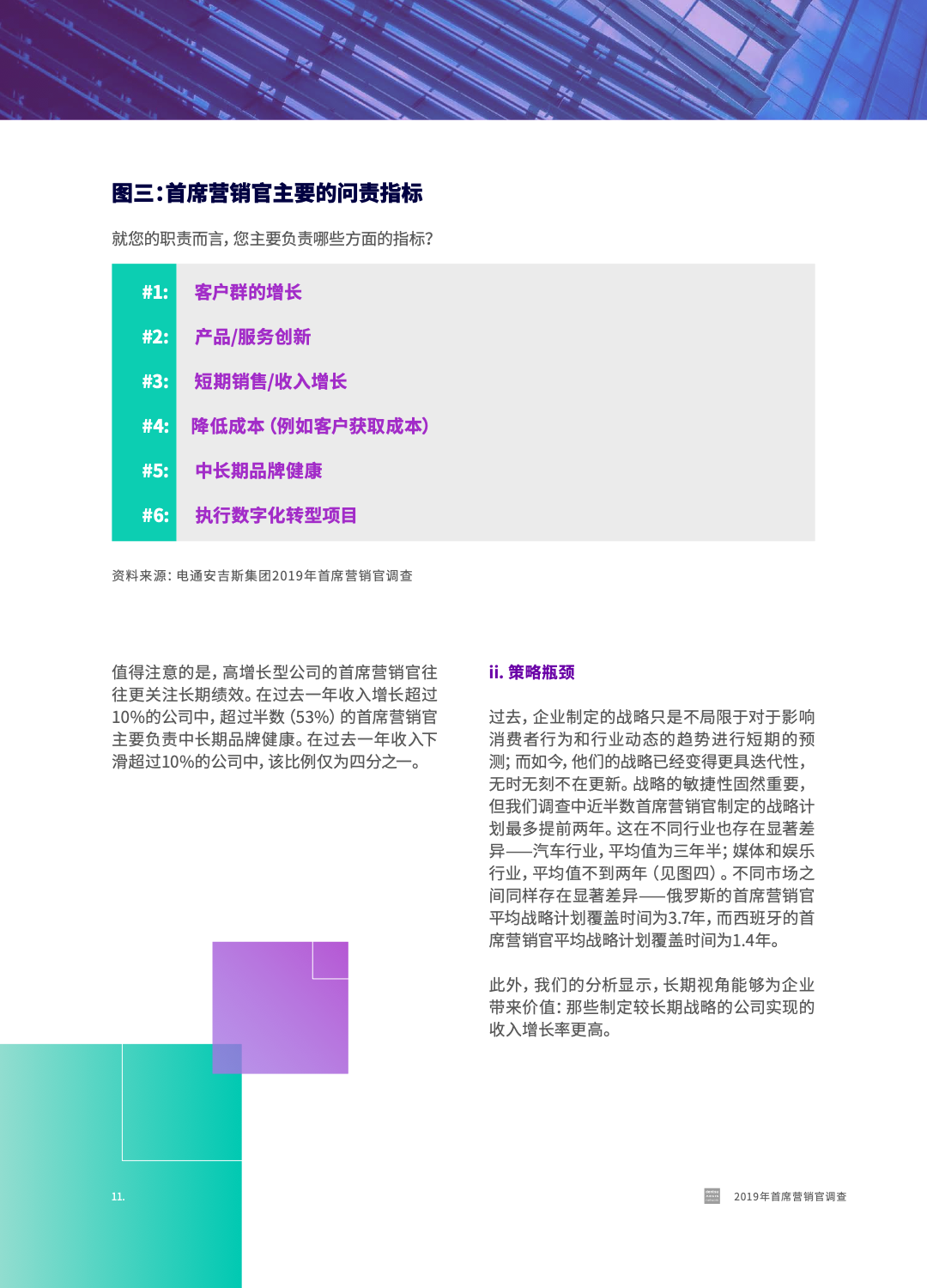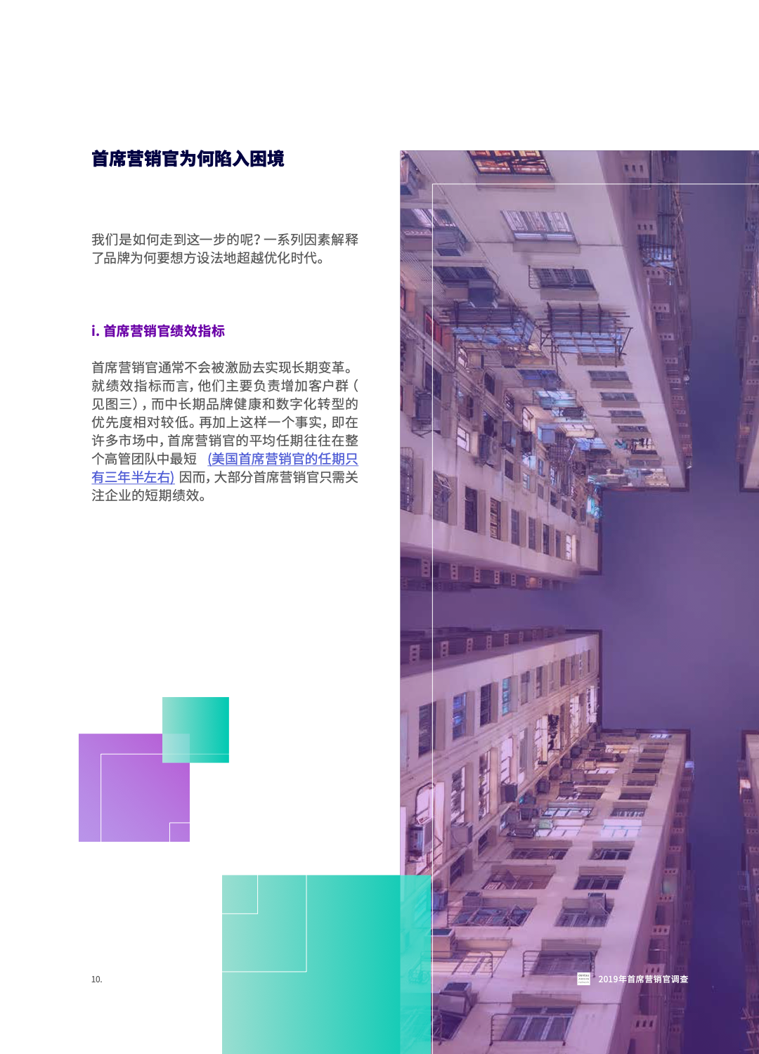 - 营销功能面临着落后于数字化竞争的风险,因为“转型和创新”仍然是当今营销职能中最不重要的角色之一,全球范围内的首席营销官们都在为实现短期指标而奔忙。
