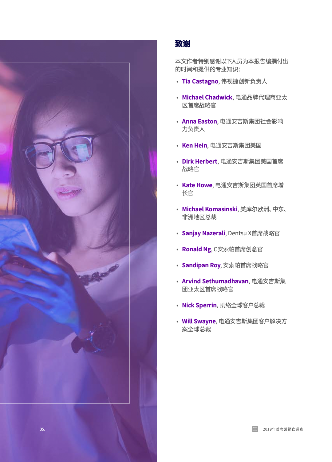 - 中国的首席营销官们已经遥遥领先,98%的首席营销官认为,推动数字化转型必须是营销职能的首要任务。