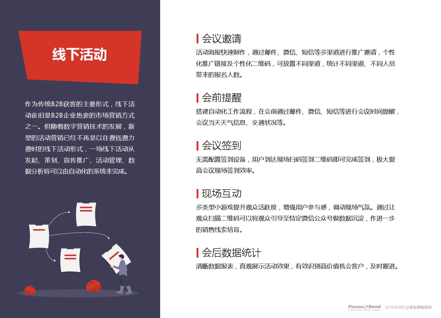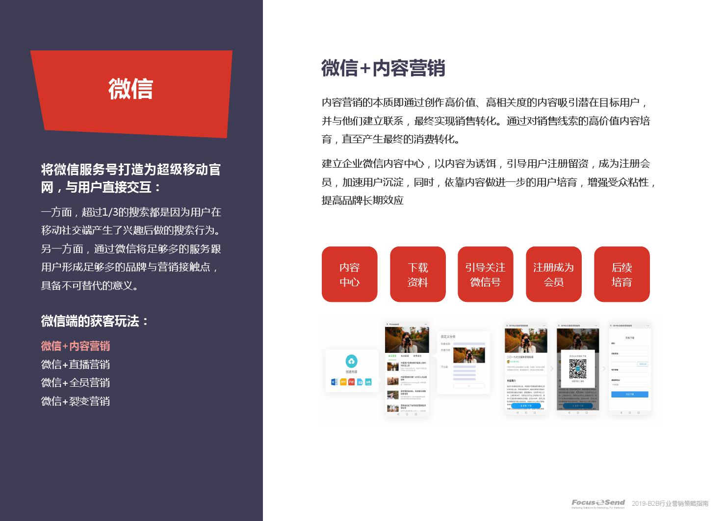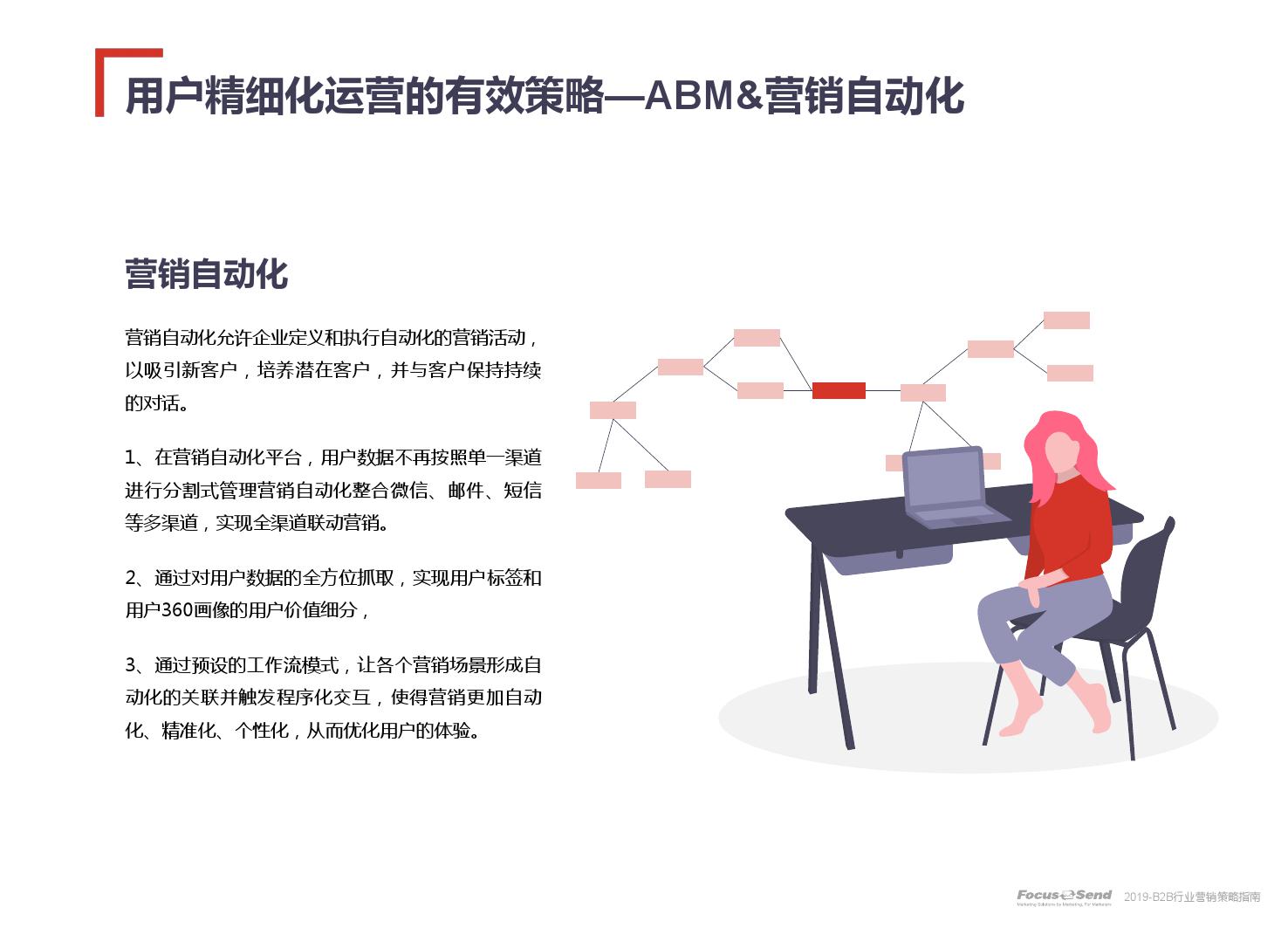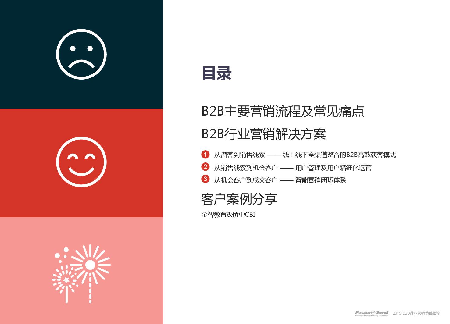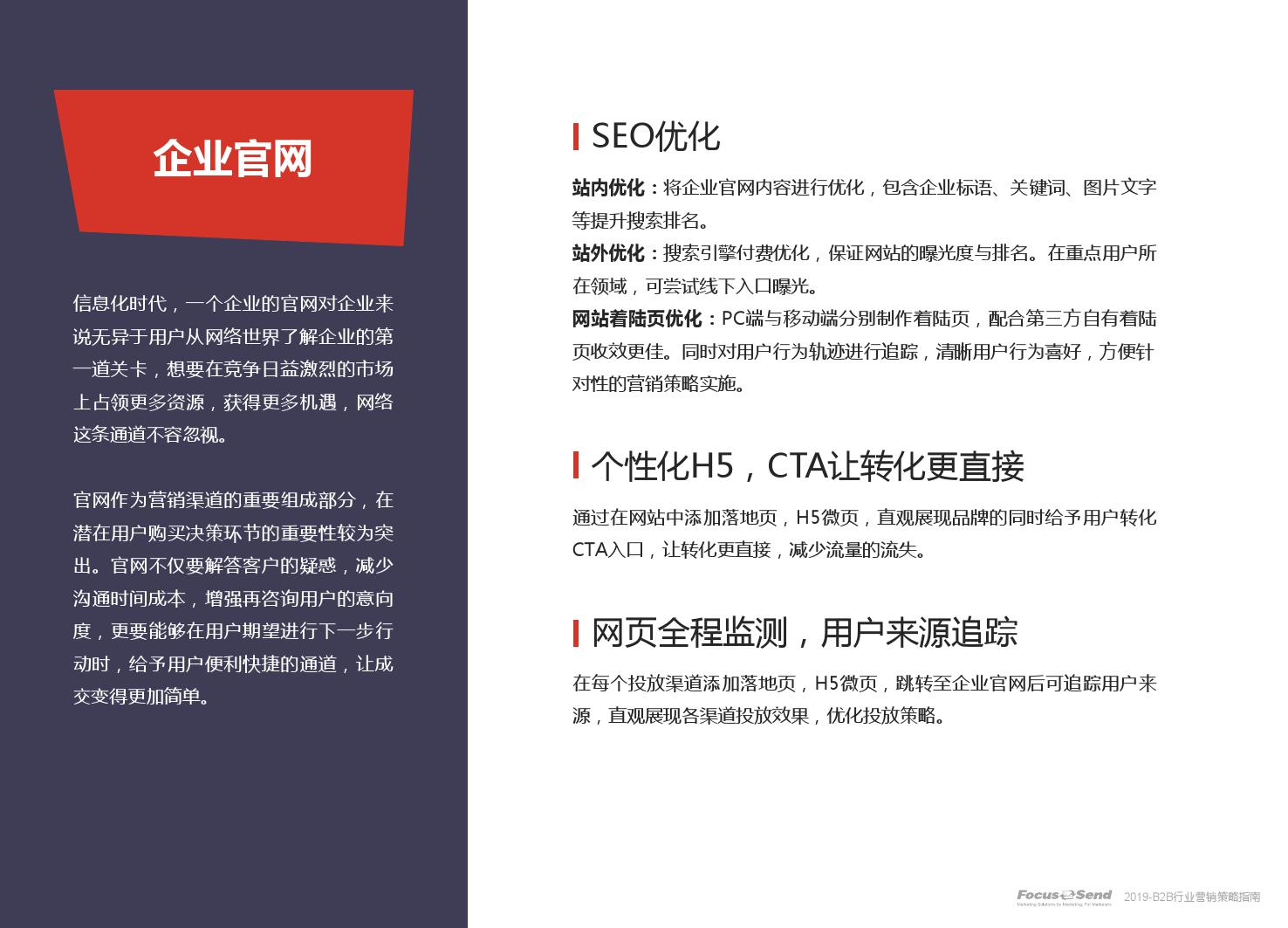 客户的主动信息调研主流化,在这样的营销趋势下,搜索引擎成为其主要 的信息来源,搜索营销的竞争度空前;陌生拜访已经很难规模化,一方面, 随着人力成本的上升,企业建立大规模陌拜团队的成本大幅提高;另一方 面,电话推广的方式极有可能会因为被标记为骚扰电话的原因,而很难找 到客户;营销和销售人员的固定成本直线上升;传统B2C的营销方式很难 应用到B2B营销中,企业的一系列难题纷至沓来。