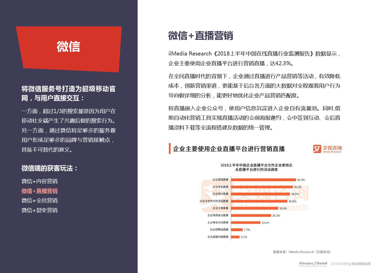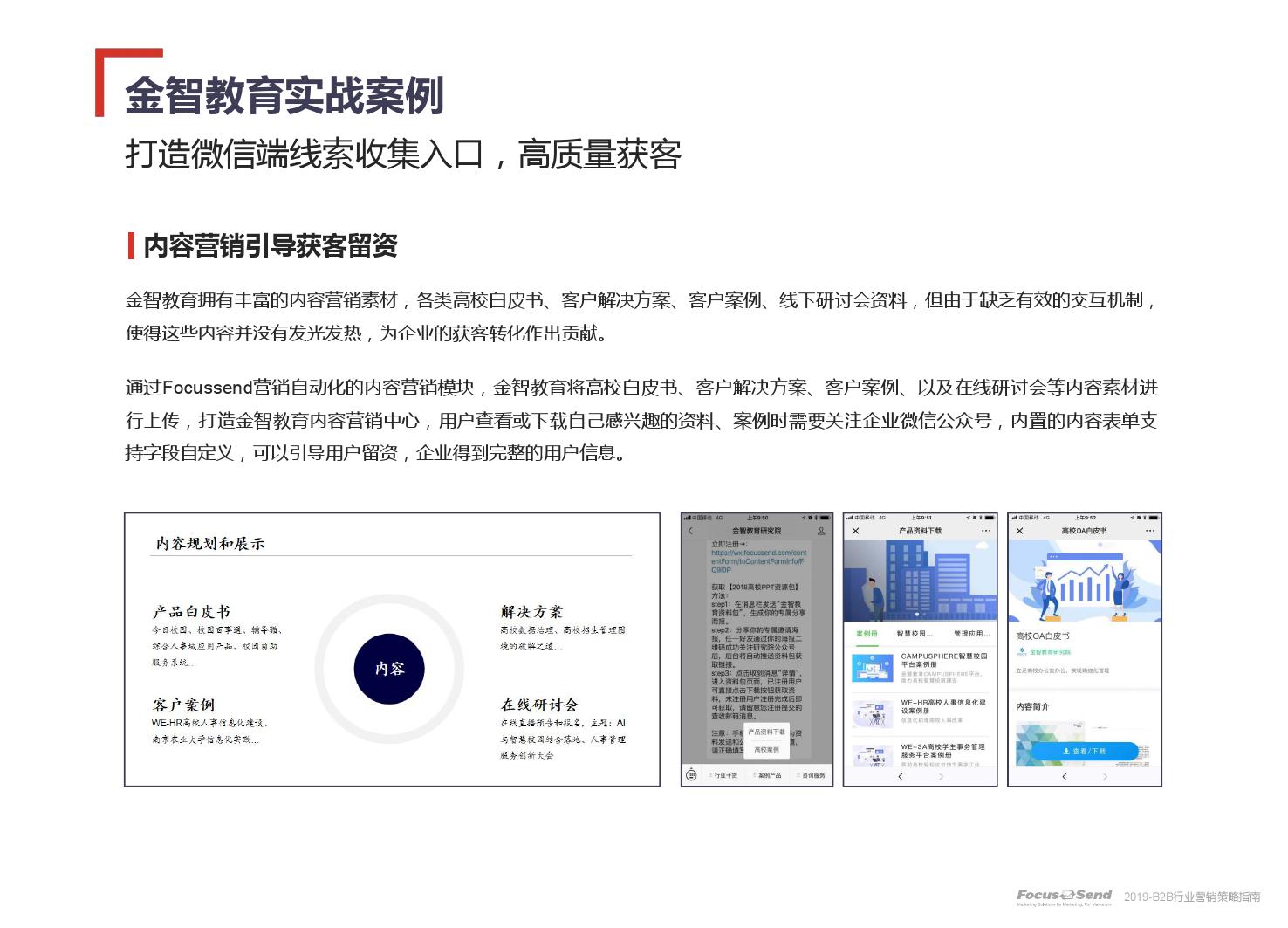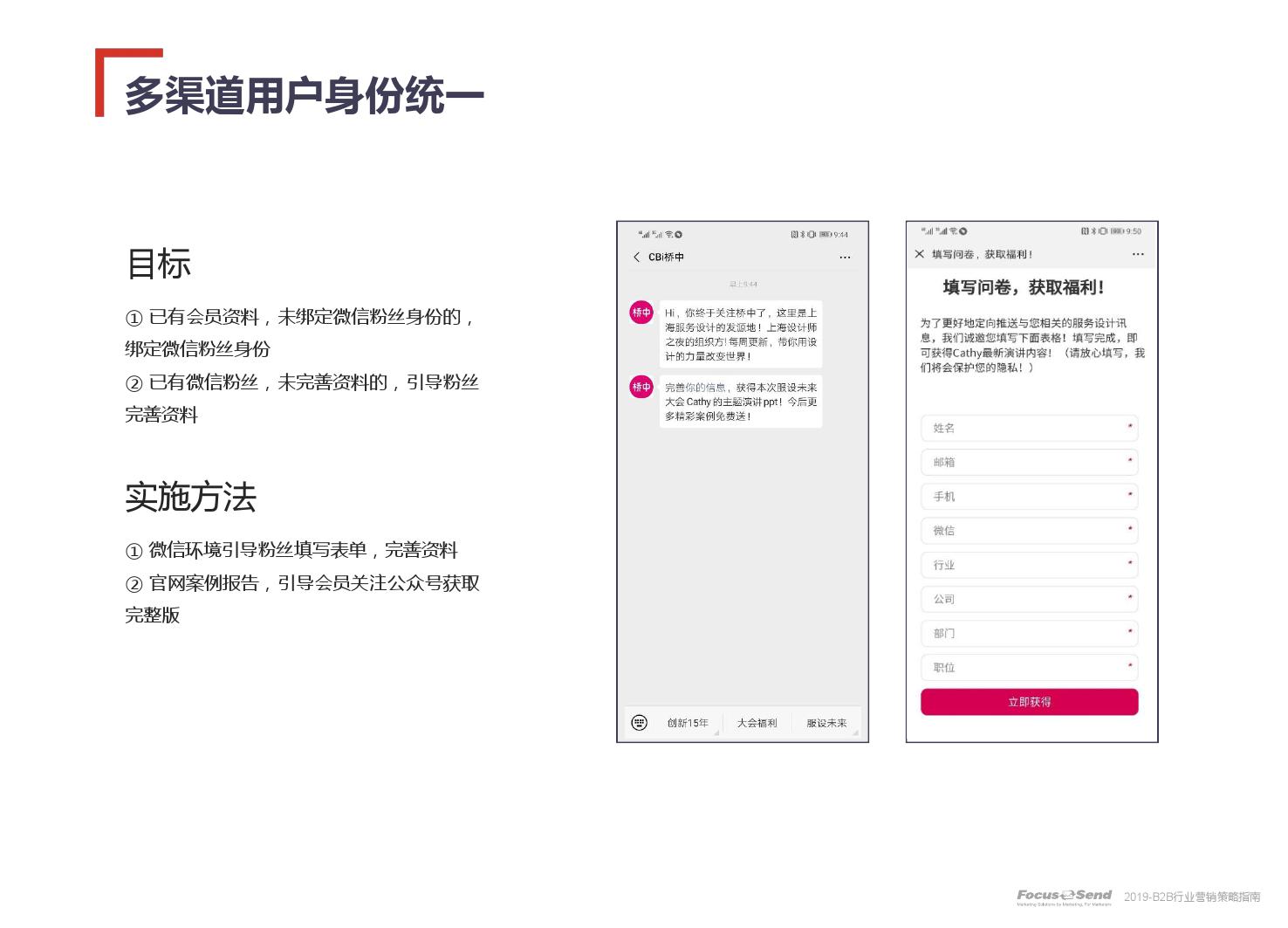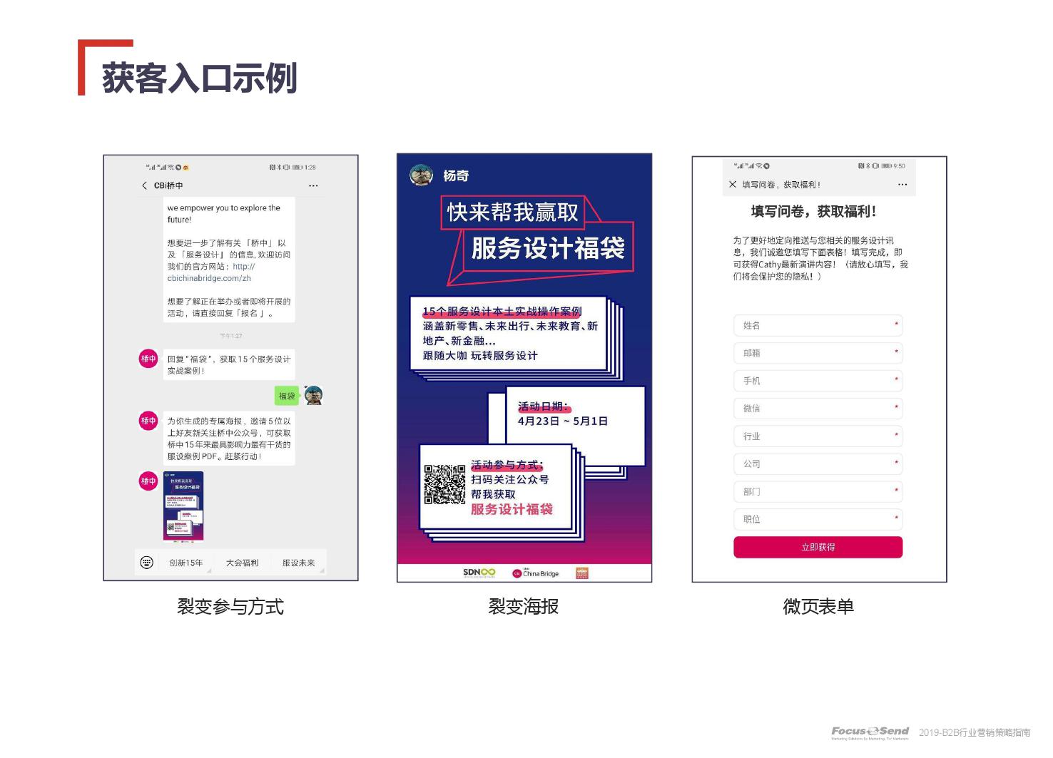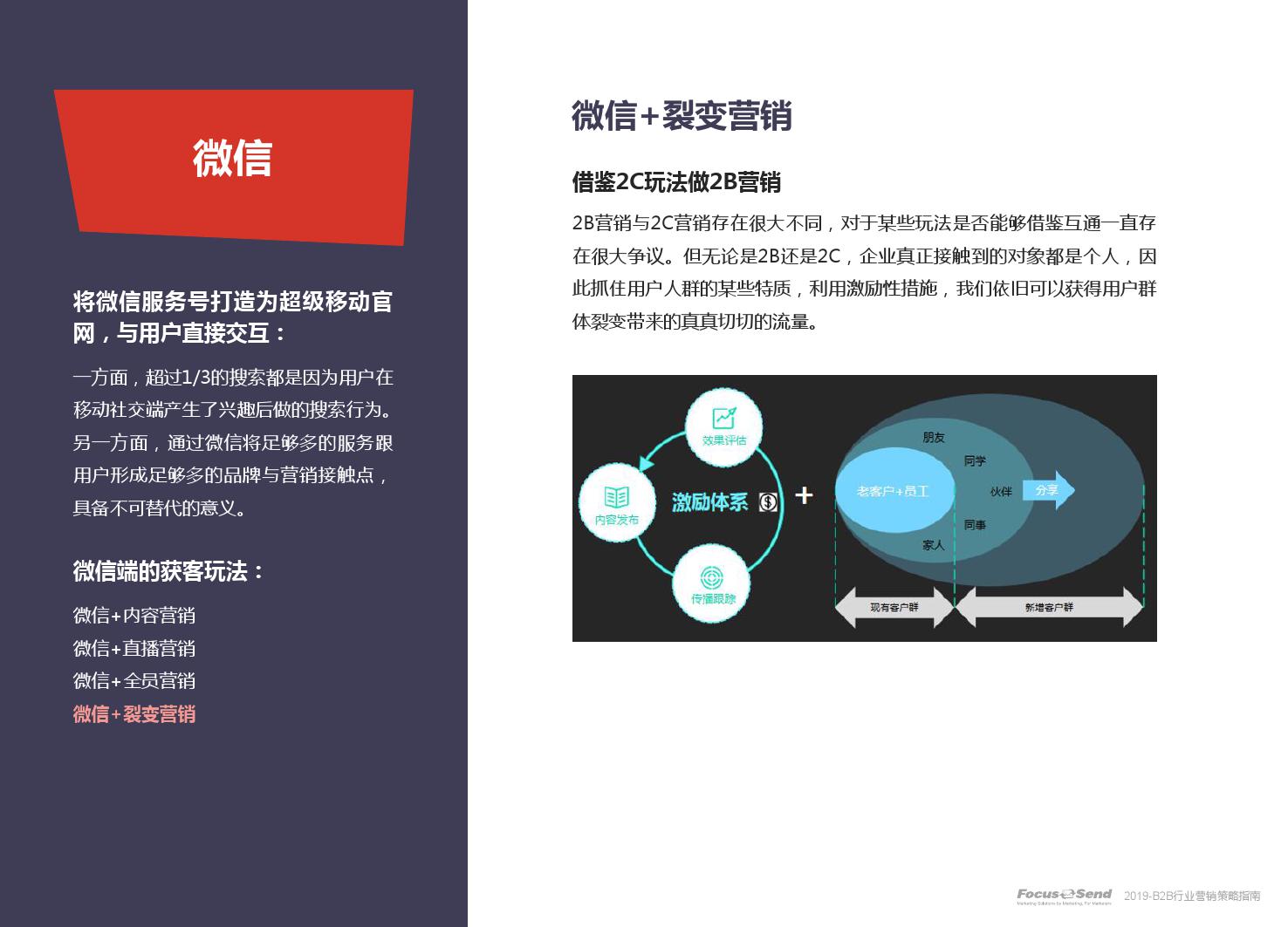 客户的主动信息调研主流化,在这样的营销趋势下,搜索引擎成为其主要 的信息来源,搜索营销的竞争度空前;陌生拜访已经很难规模化,一方面, 随着人力成本的上升,企业建立大规模陌拜团队的成本大幅提高;另一方 面,电话推广的方式极有可能会因为被标记为骚扰电话的原因,而很难找 到客户;营销和销售人员的固定成本直线上升;传统B2C的营销方式很难 应用到B2B营销中,企业的一系列难题纷至沓来。