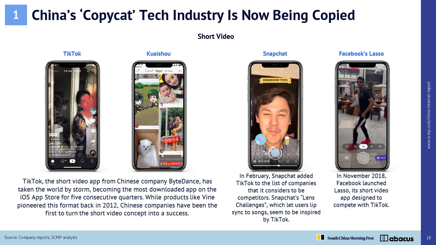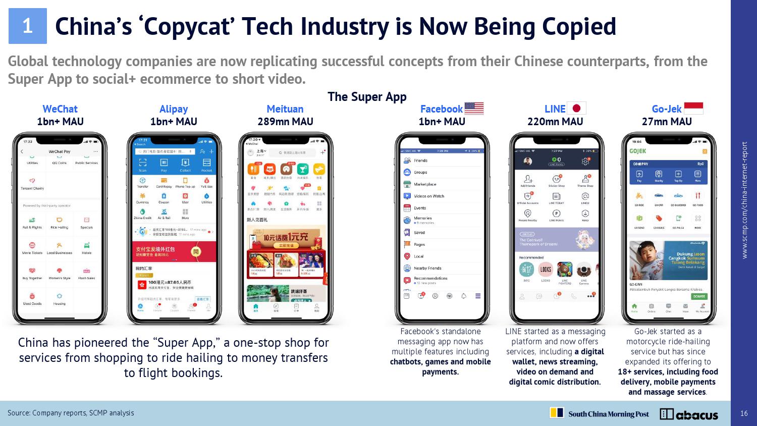 报告表示,中国的互联网巨头们曾经被称为西方社交媒体平台的本土克隆者——但现在这种趋势正在逆转。根据调查结果,今天,从美国到东南亚的全球互联网公司都在复制中国概念。