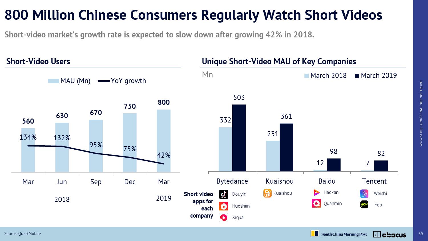 字节跳动和快手则是 2019 年最有可能 IPO 的两家中国公司,引起了许多人的关注。字节跳动旗下的抖音 APP 在全球拥有 5 亿 MAU(月活用户),另外今日头条也归其所有,最新估值约为 760 亿美元。短视频 App 快手月活跃用户约为 3 亿,是抖音的正面竞争对手,最新市场估值约为 250 亿美元。
