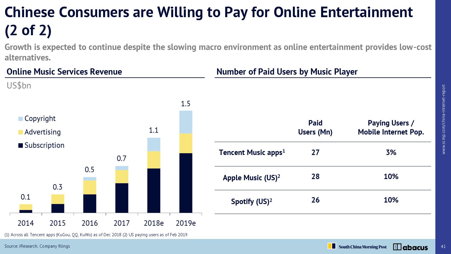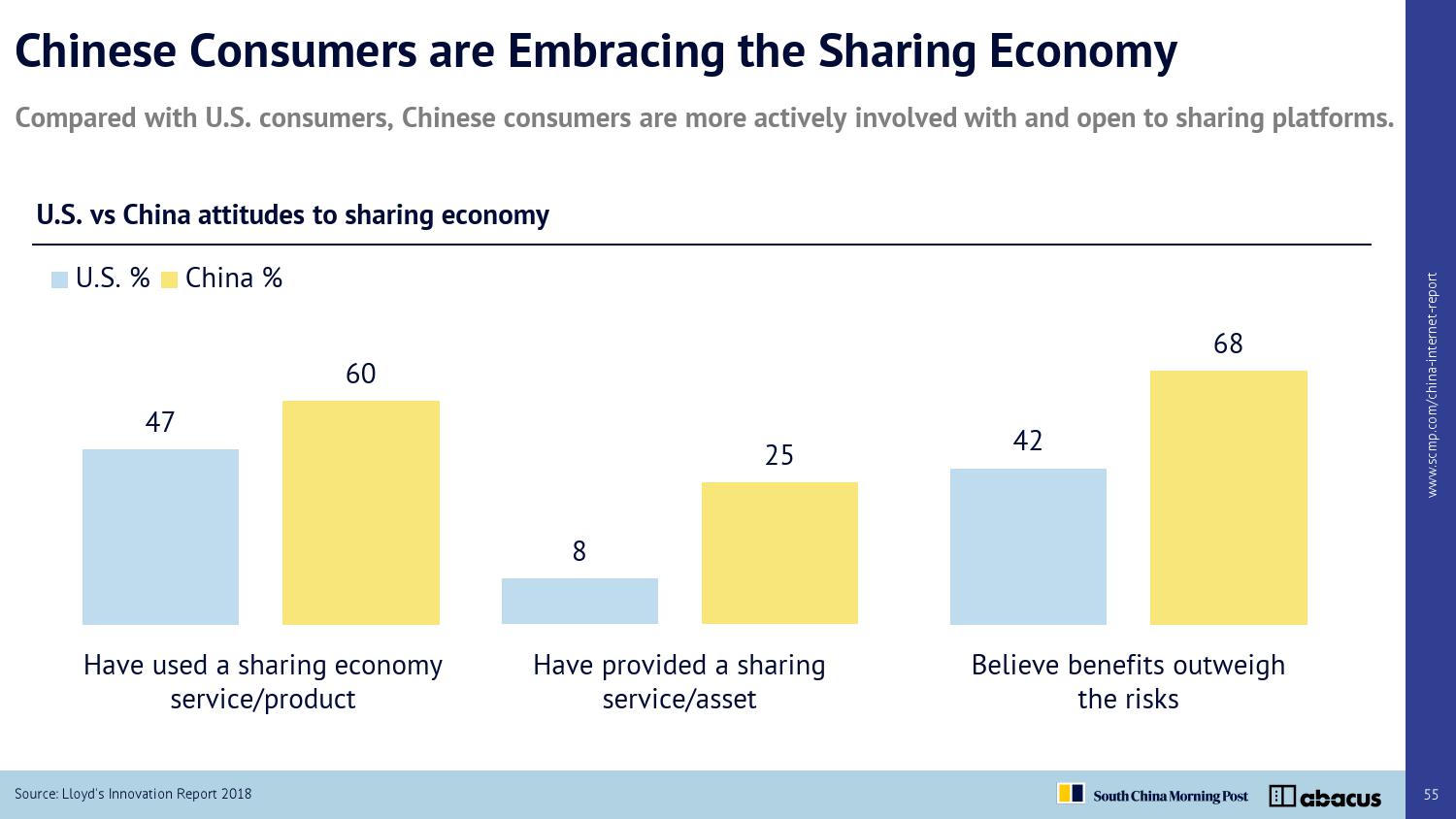 目前美国的互联网普及率高达 89%,而中国的普及率仅为 60%,但是得益于庞大的人口基数,该规模几乎是美国互联网用户数量的三倍。在移动支付领域,这一差距则更大:使用手机支付服务的中国用户(5.83 亿)比美国整个国家的人口都要多。