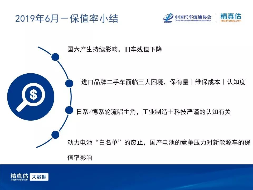 2019年7月1日,中国汽车流通月度形势分析会在京举办。会上,中国汽车流通协会发布了2019年6月中国汽车保值率报告,精真估数据中心提供技术支持。