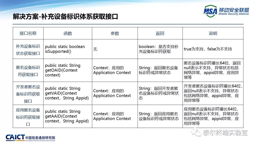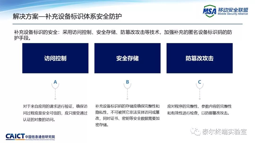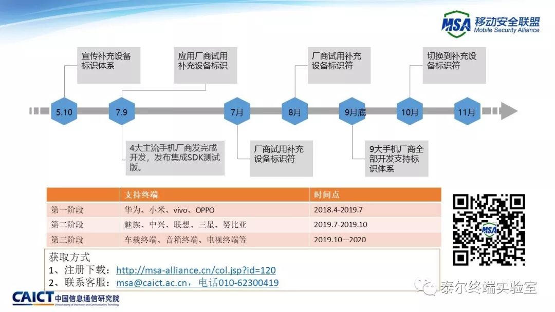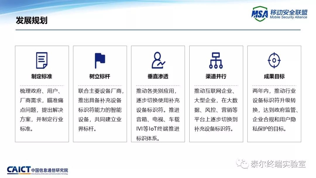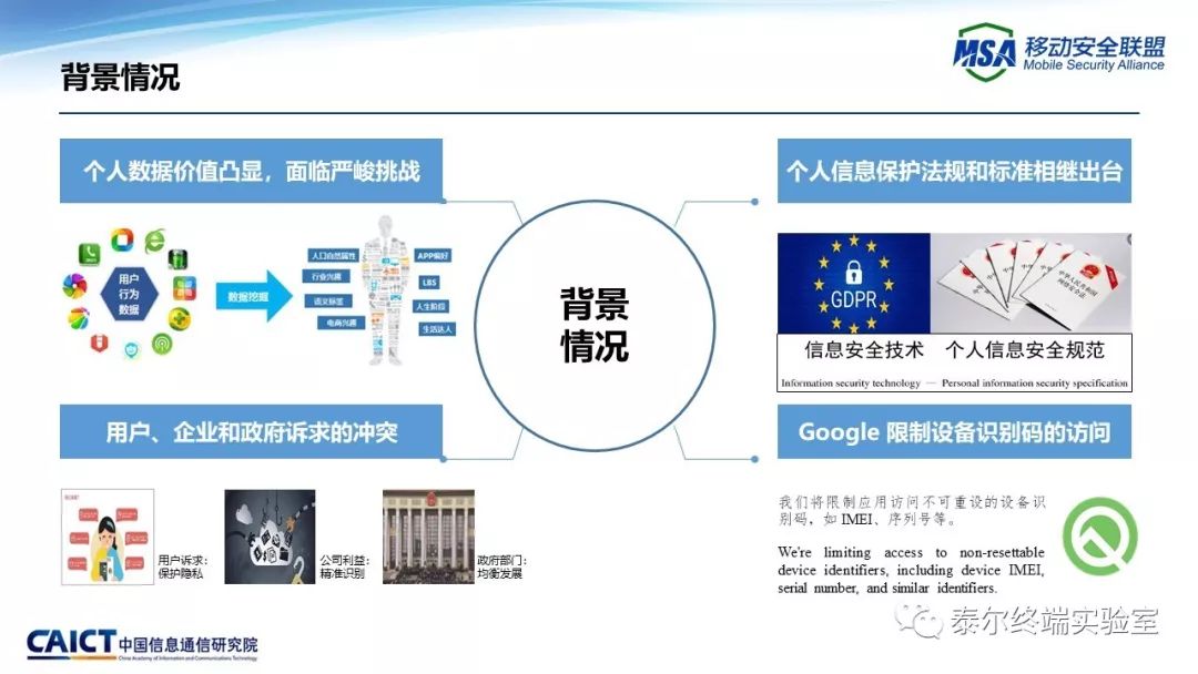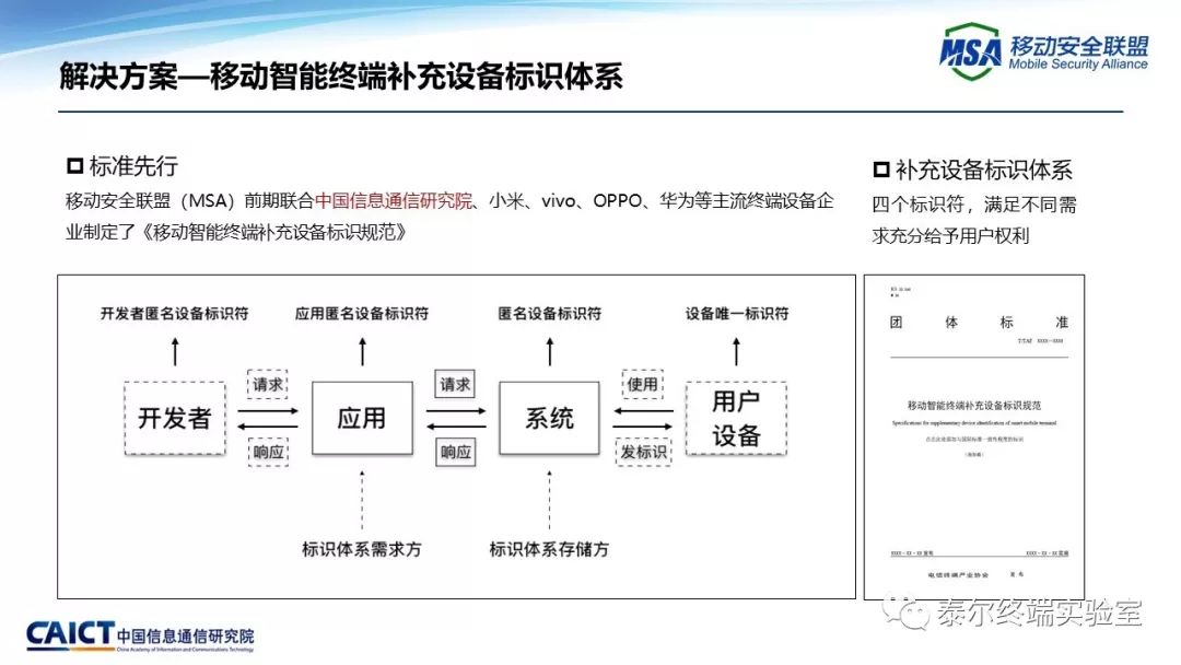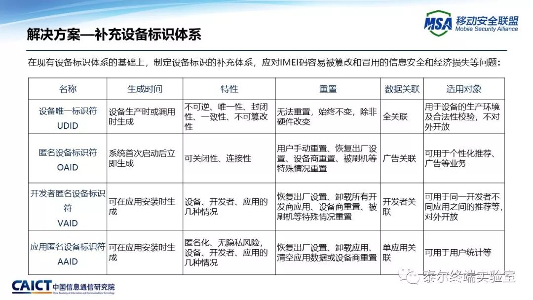移动安全联盟(MSA)联合国内设备企业共同推出移动智能终端补充设备标识体系,解决了现行标识体系的不足,在商业价值和隐私保护合规中找到了平衡 。