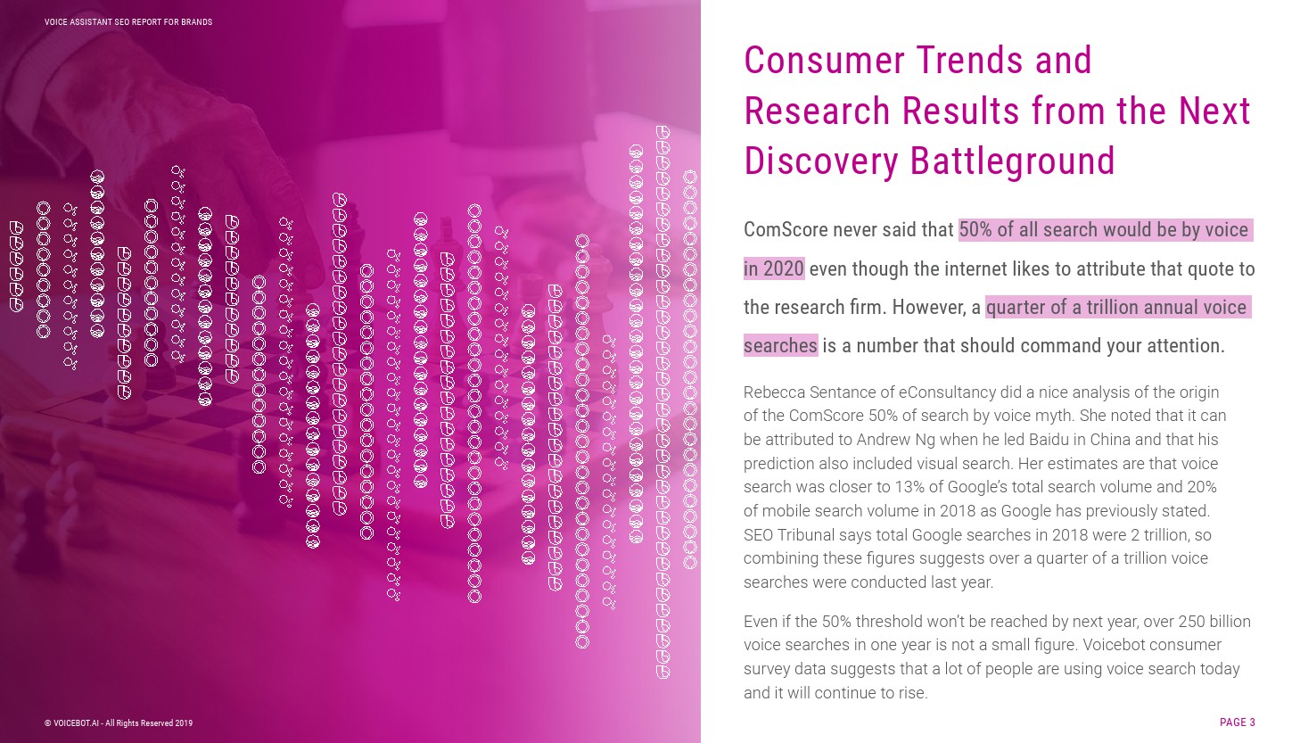 尽管ComScore从未发布到2020年所有搜索的50%将通过语音进行的预测,互联网喜欢将这句话归因于这家研究公司。但是,这个数字仍然值得引起重视。