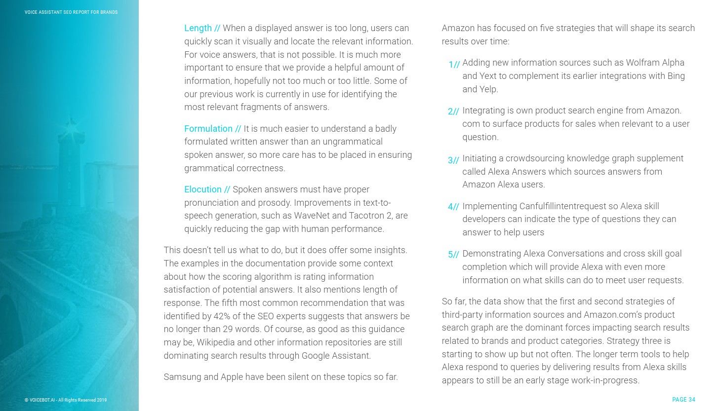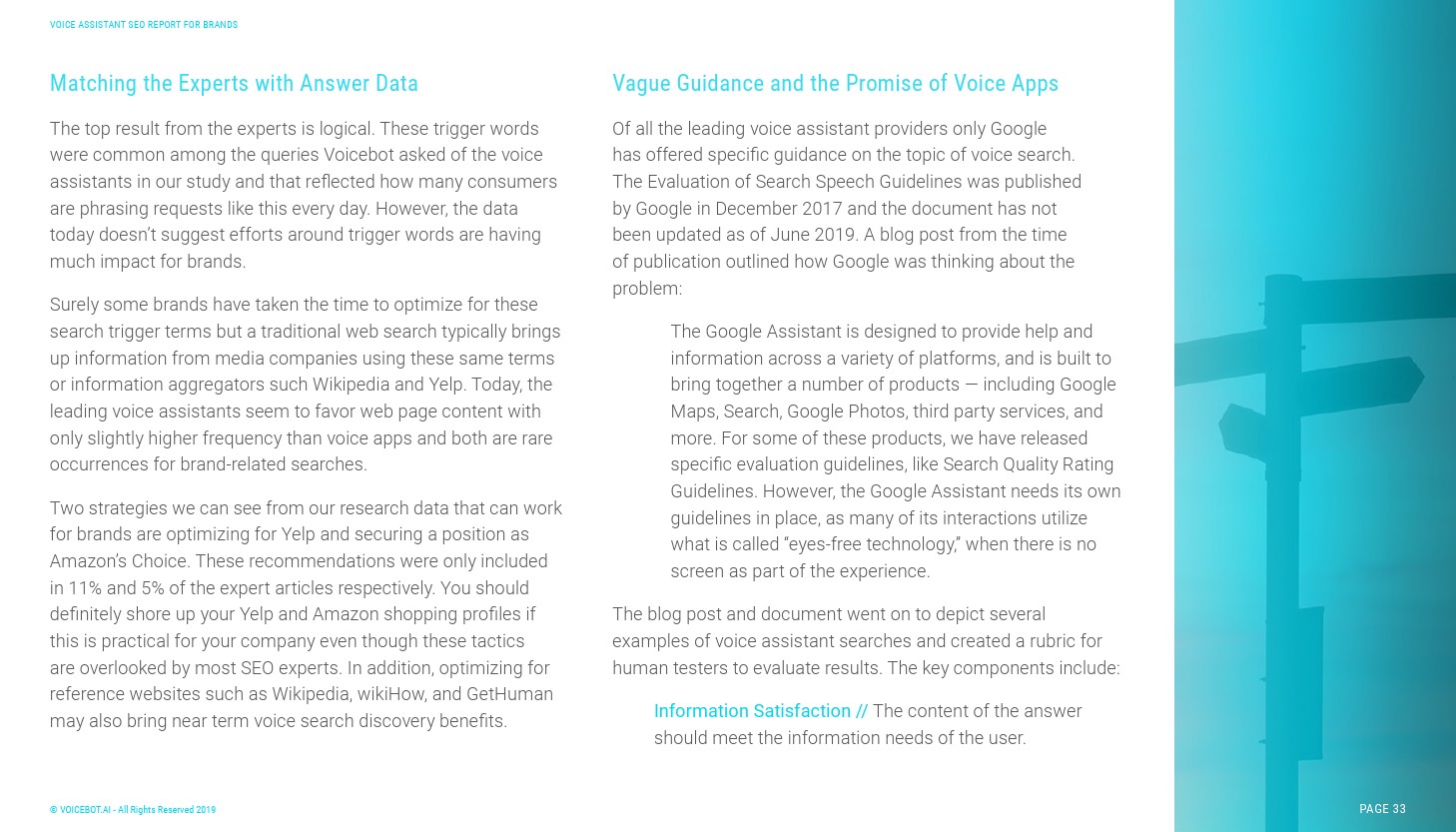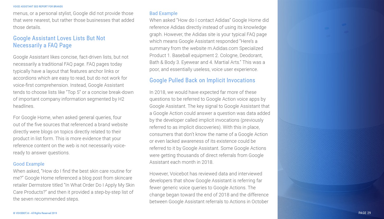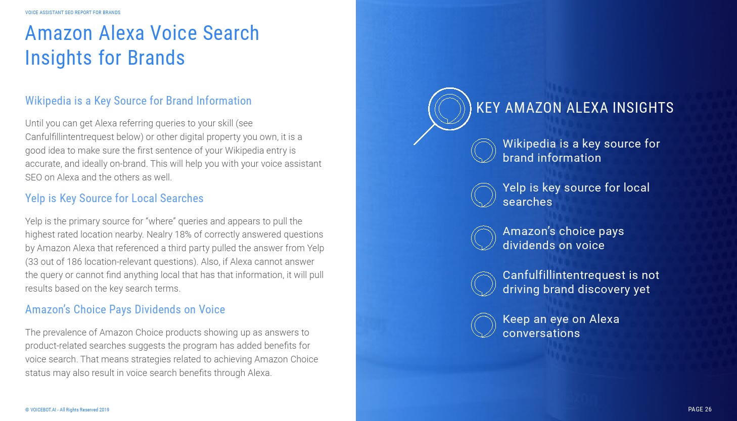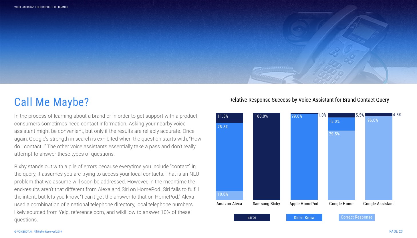当你向语音助理询问超过4000个关于品牌和产品的问题时会发生什么?你会听到很多维基百科的条目。如果问题有位置角度,Yelp就是一个流行的数据源。然后是您的标准知识图响应,大部分来自Google,通常是特色片段,Google my Business information,或本地产品库存提要。如果你问苹果智能音箱问题,你最有可能听到的是,“对不起,我无法在HomePod上找到答案。”