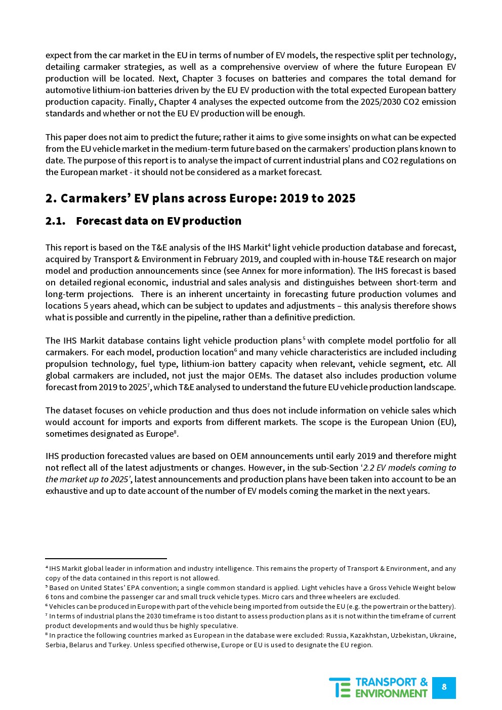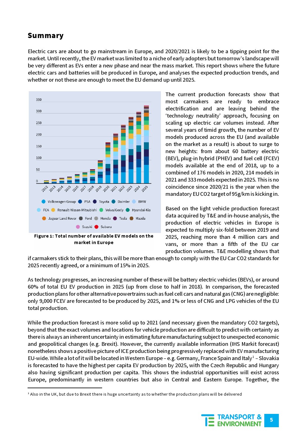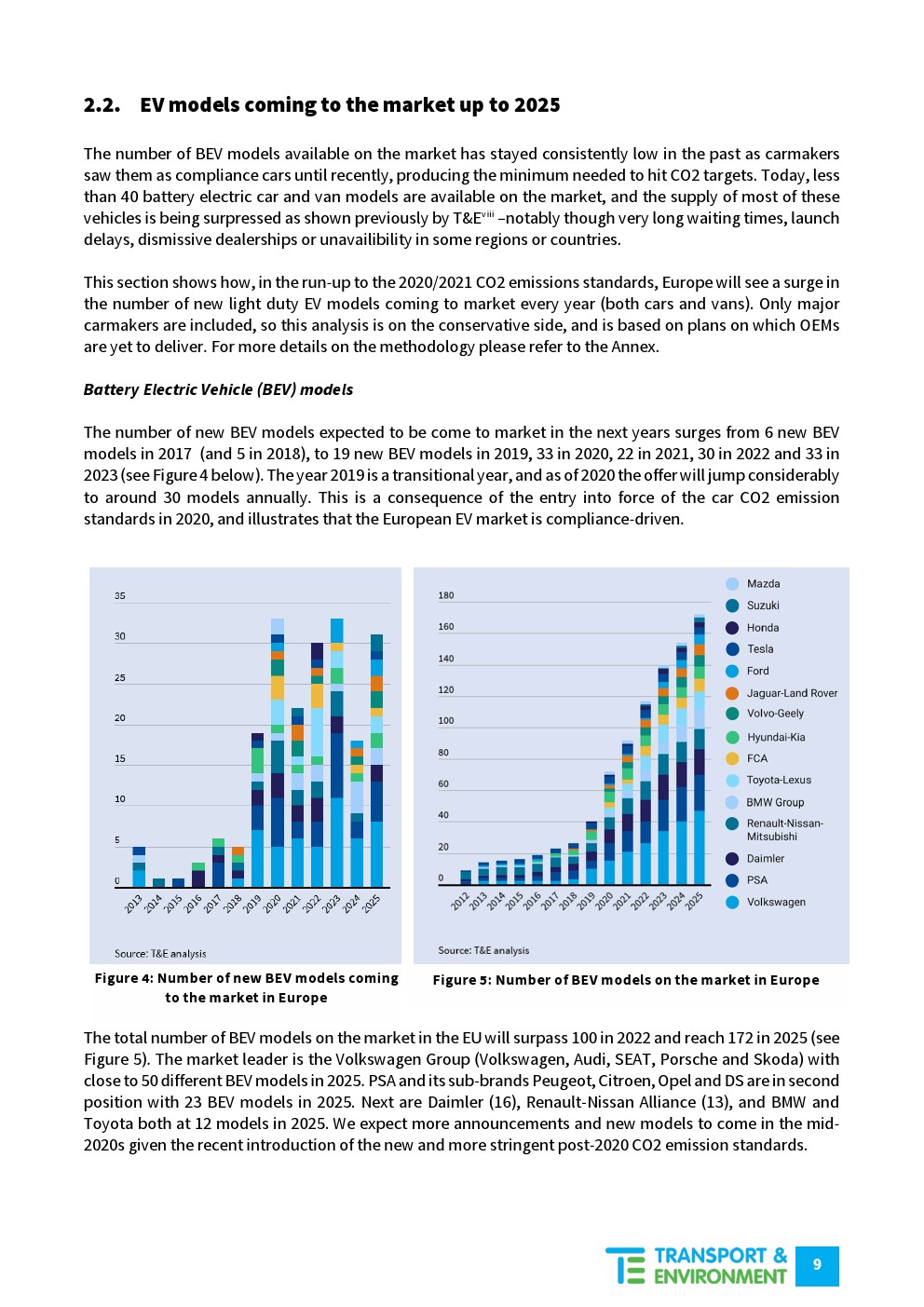 欧盟运输与环境联合会发布了新报告“欧洲电动汽车2019-2025”。电动汽车即将成为欧洲的主流,2020/2021年可能是市场的转折点。