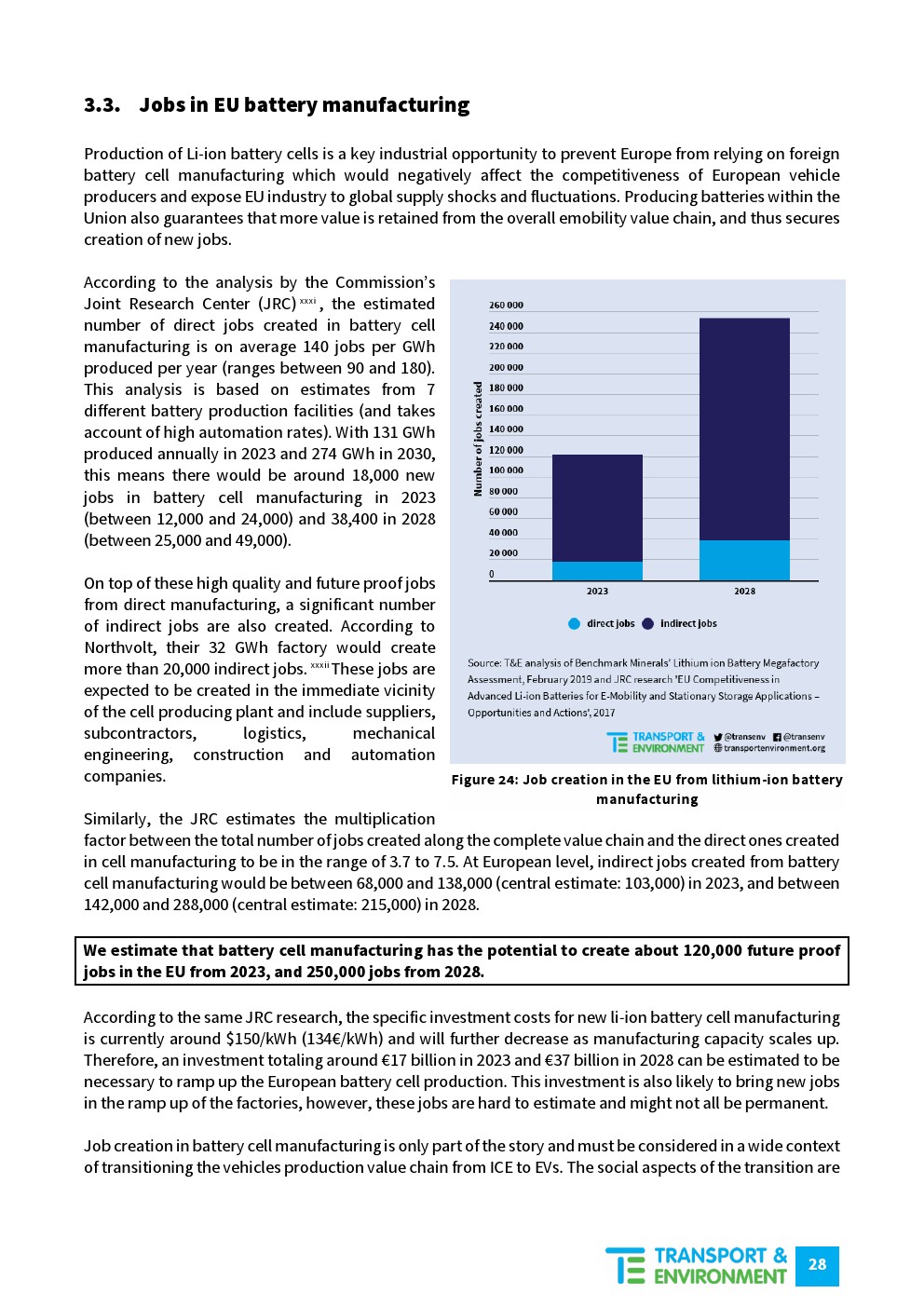 基于现有数据,预计电池制造将在2023年直接和间接创造约12万个就业机会,到2028年将创造25万个就业机会。