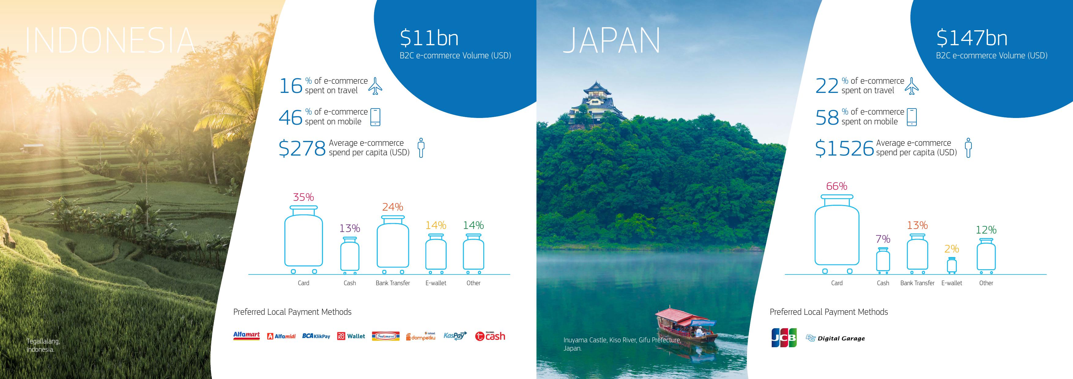 根据PPRO和Amadeus最近的旅游支付研究报告,在全球十大经济体中,有7个国家的电子钱包销售额至少占电子商务总销售额的五分之一。然而,全球第三大经济体日本的电子钱包仅占电子商务总量的2%。