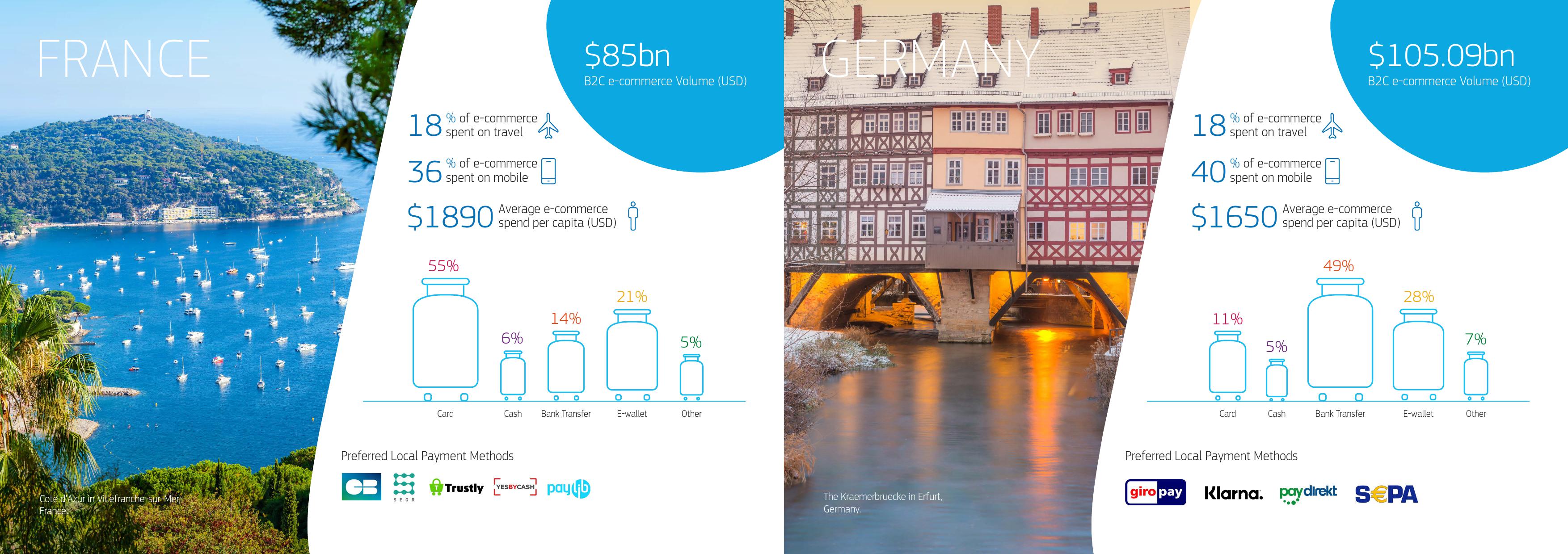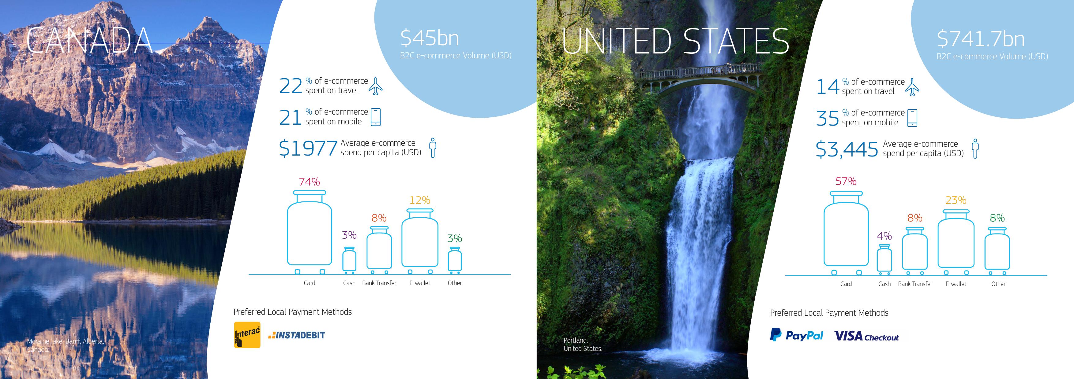 尽管许多国家采用了其他支付方式,信用卡和借记卡在网上购物方面仍然保持着强大的地位。根据PPRO和Amadeus的研究,加拿大人和韩国人近四分之三的网上购物都使用支付卡。