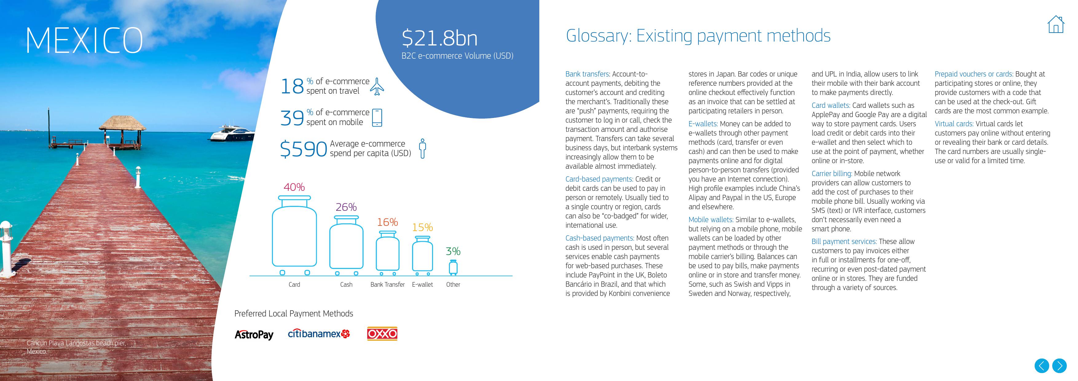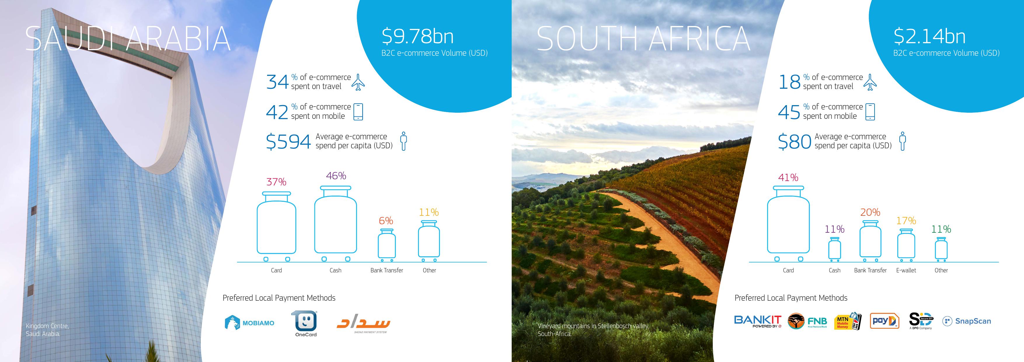 在一些国家,网上购物通常需要去便利店、汇款代理机构、邮局或银行存钱来完成交易。根据PPRO和Amadeus的研究,在菲律宾和沙特阿拉伯等国家,近一半的电商采购是用现金完成的。