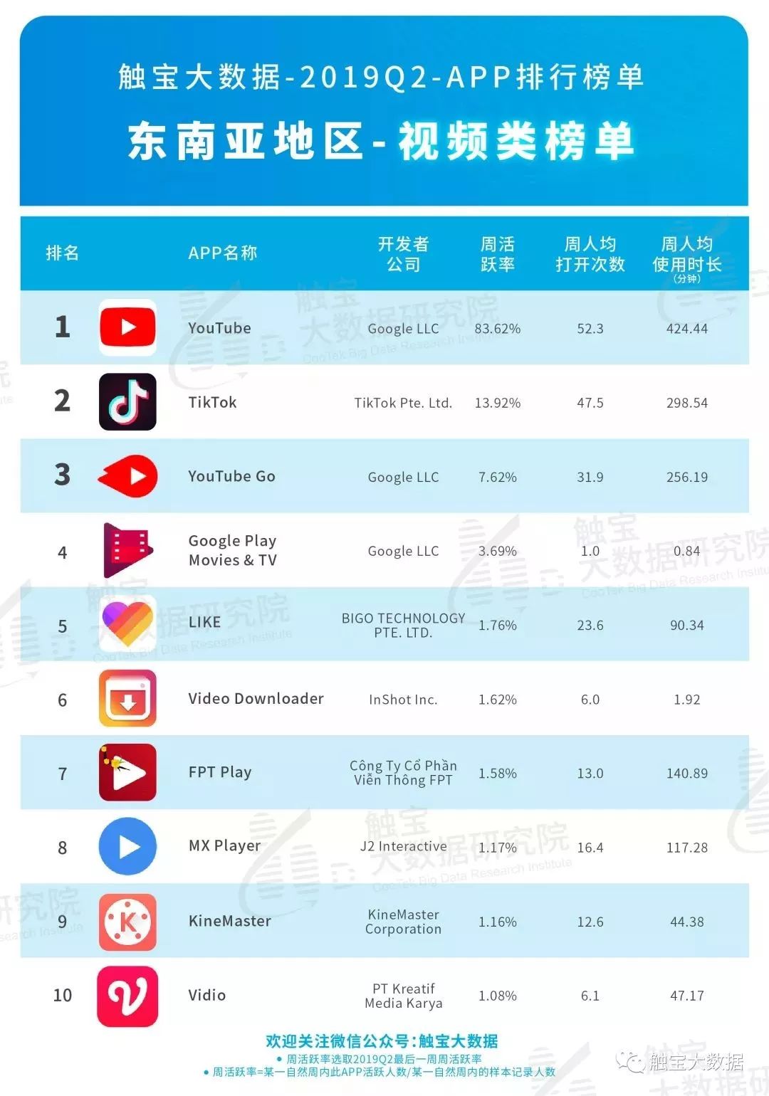 本季度出海视频应用在东南亚地区依然强势。改名后的 Likee 及巧影(Kinemaster)在榜单上的排名都有大幅度的提升。中国的短视频玩法,迎合了当地占据大部分用户的青年人口的喜好。而 Likee 的视频社区与众多“网红”入驻,也让它们不再是简单的视频编辑应用。工具加入社交元素有利于提升用户粘性,延长产品生命周期。