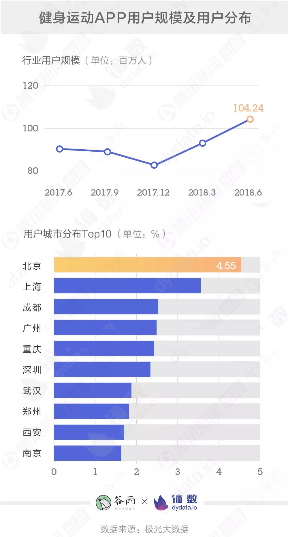 除了去健身房,在家配合健身APP健身也相当流行。对相关APP的统计数据显示,2018年6月,健身运动APP的用户规模已经超过1亿人,这些用户同样集中在一线城市。