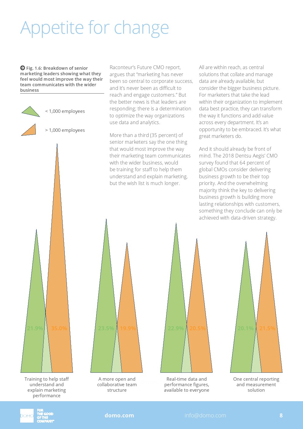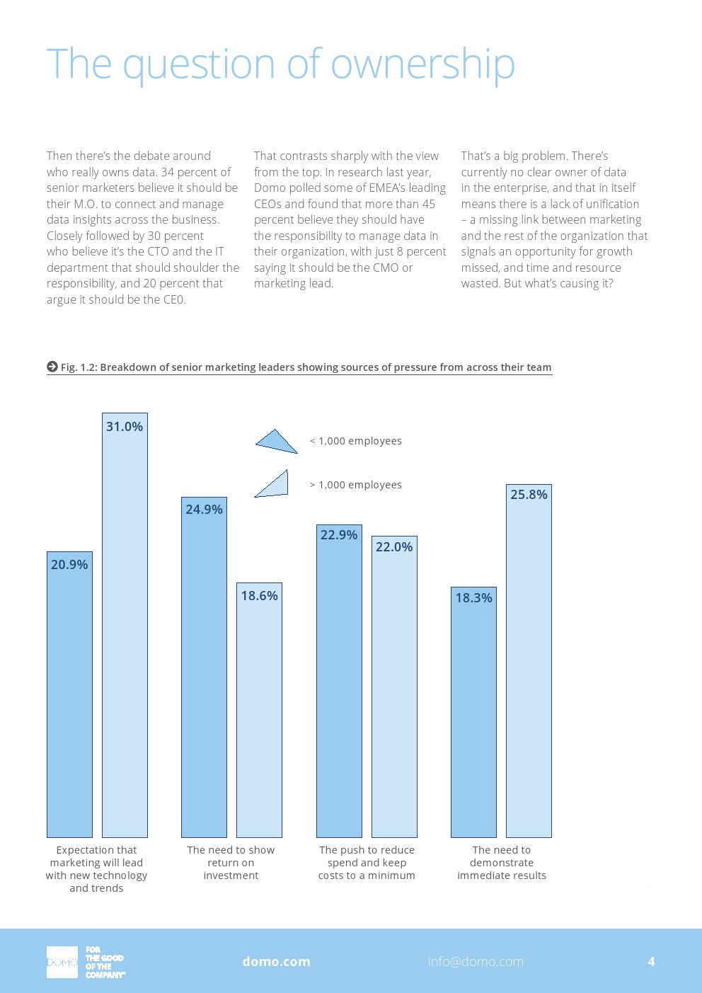Domo的一份新报告发现,规模较小(不到1000名员工)和规模较大(超过1000名员工)的企业的营销高管的压力来源略有不同。