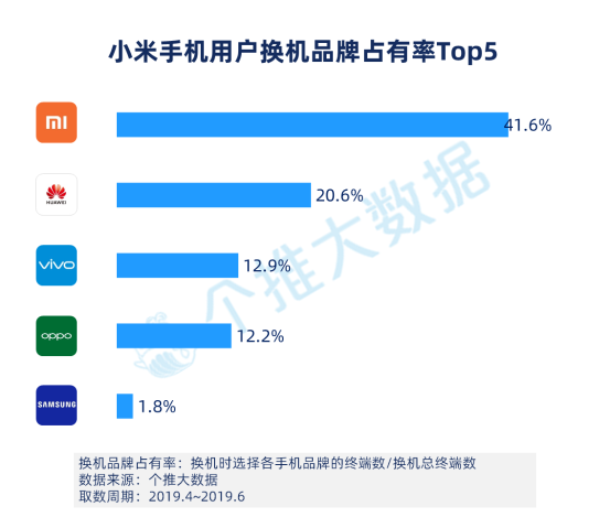 - 小米9、VIVO X27、华为P30等2019年新上市手机,已成为各品牌手机用户换机时的机型首选;