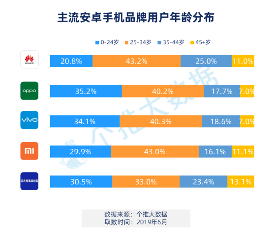 各品牌手机用户年龄分布大不同,OV深受年轻一族喜爱