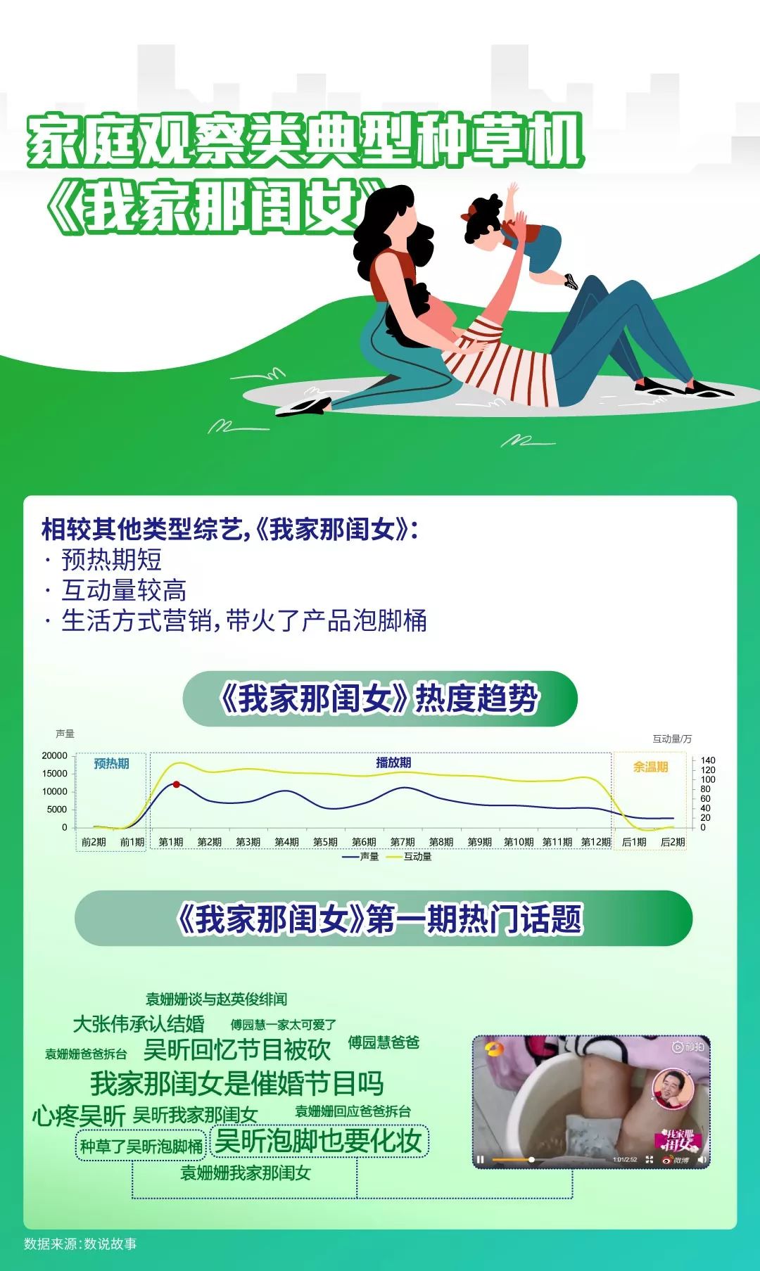 - 女性话题引发共情的家庭观察节目,自带热搜话题,养生/家居/生活/美妆品牌通过软植入能带来强种草。