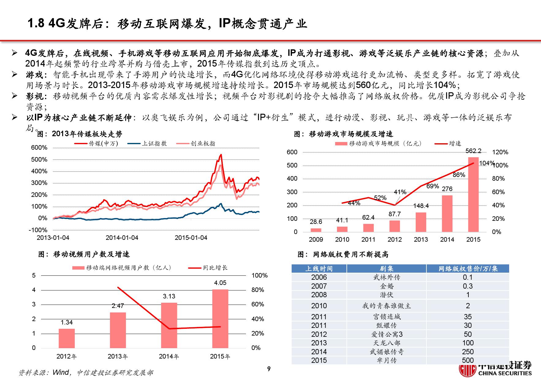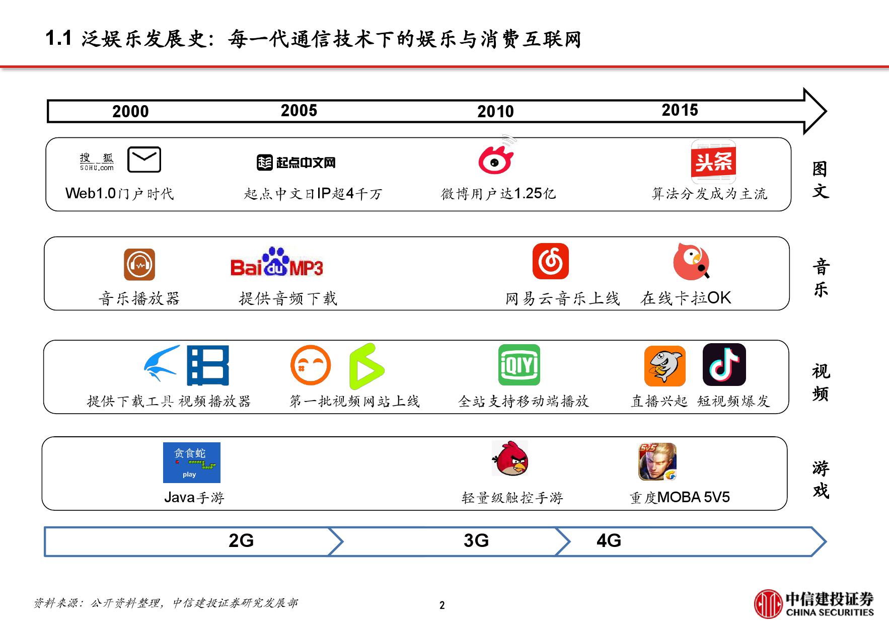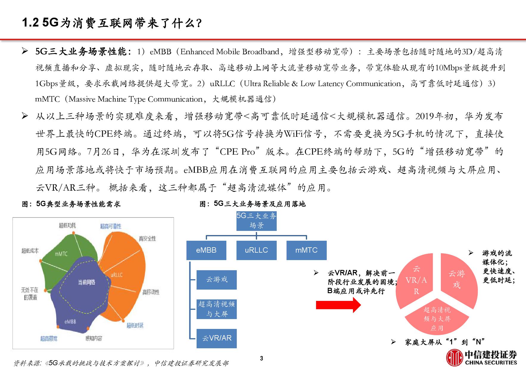 需求端,消费者持续追求更加丰富的文娱内容形态。通信和软硬件技术往往成为短期制约内容供给的瓶颈,因此每一波的技术升级也通常会带来需求的显著释放。随着移动通信技术的发展,5G所提供的速度更快、带宽更宽、延迟更低的通信能力,必将释放内容产业更大的发展潜力,实现对消费者文娱内容消费的更优满足。